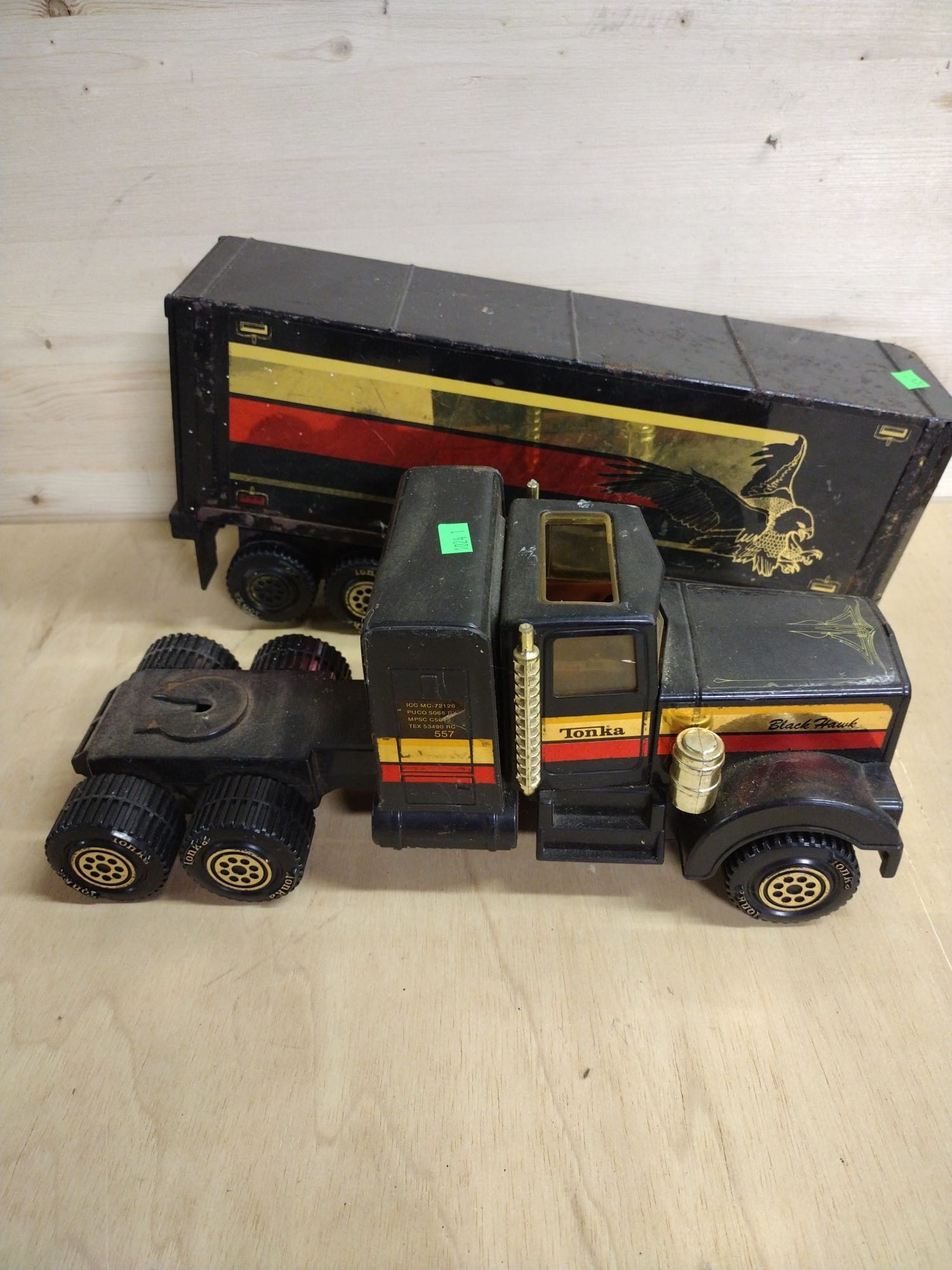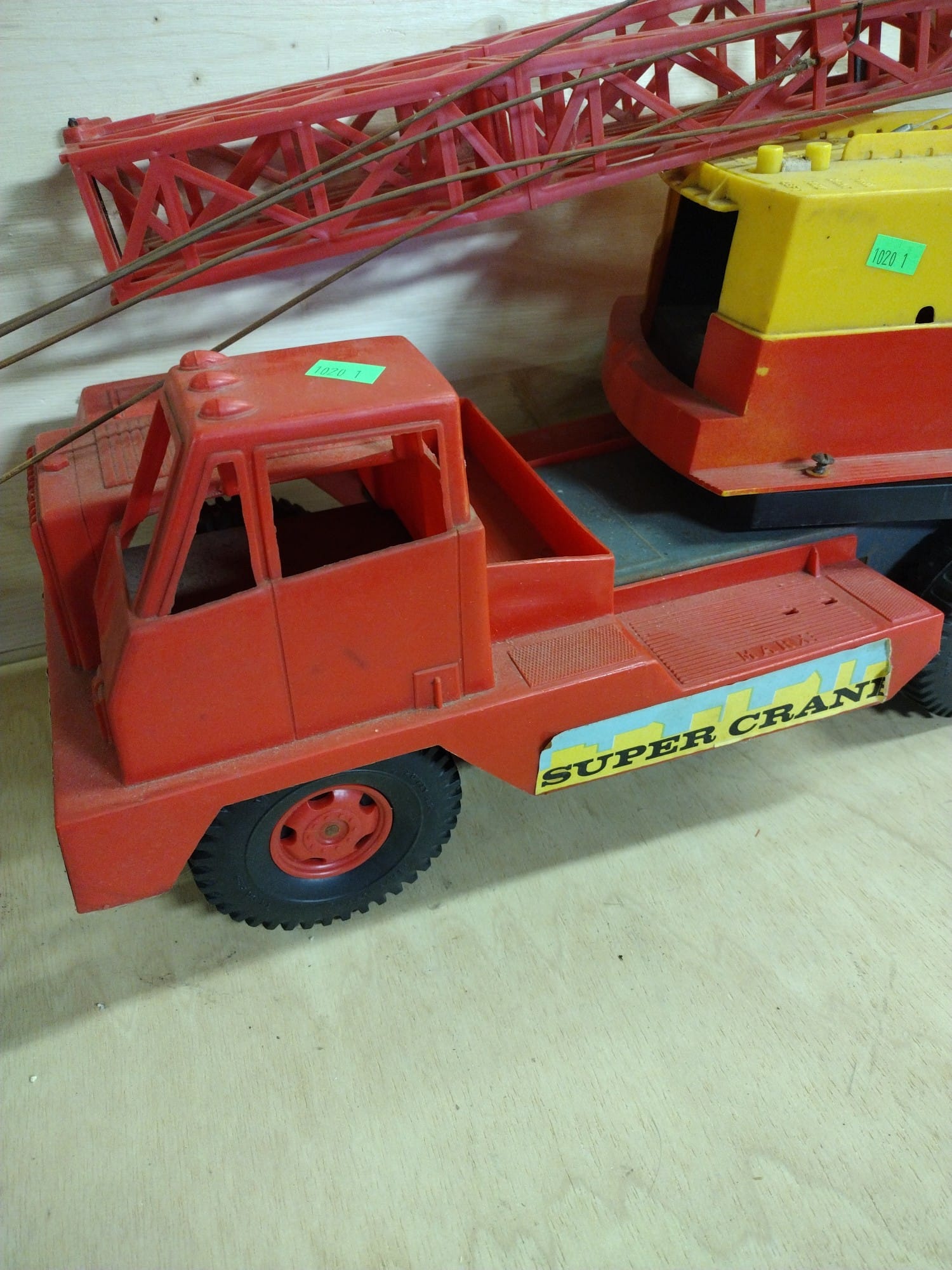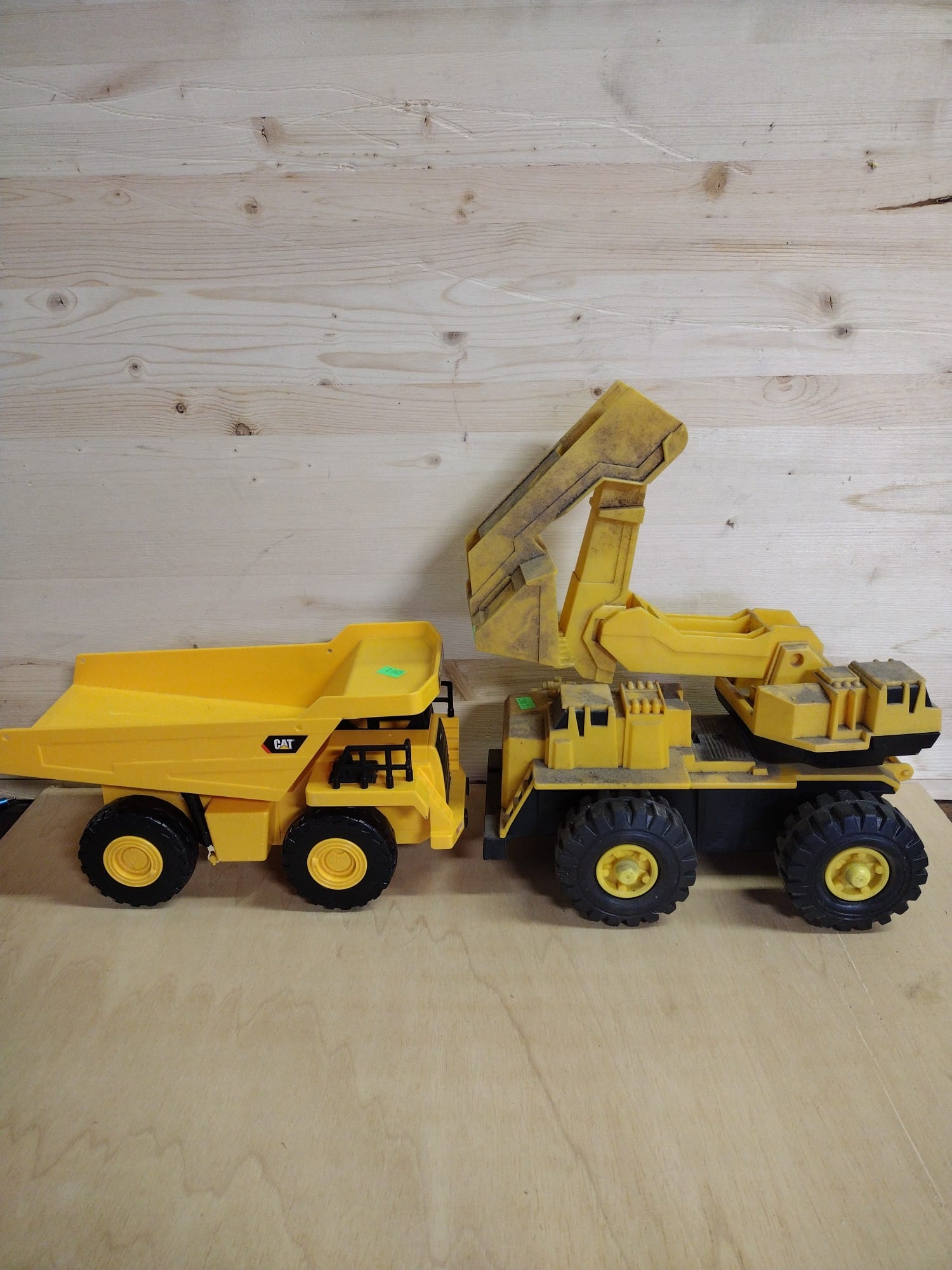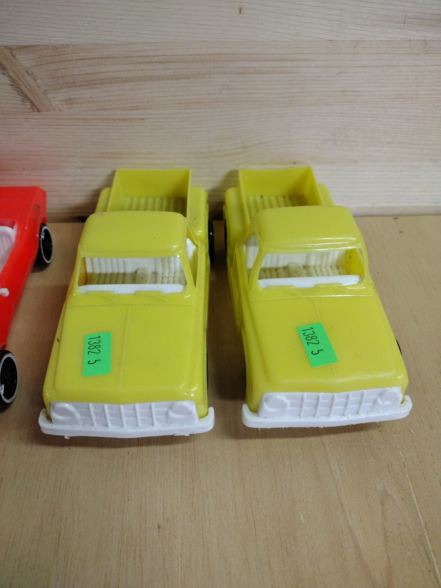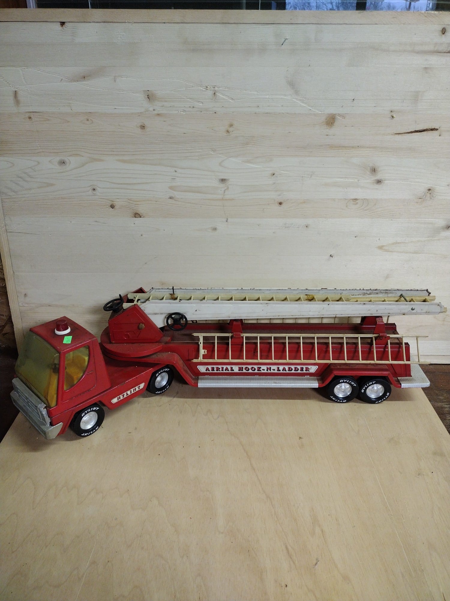 1435 Buddy L toy semis, yellow is plastic red is metal