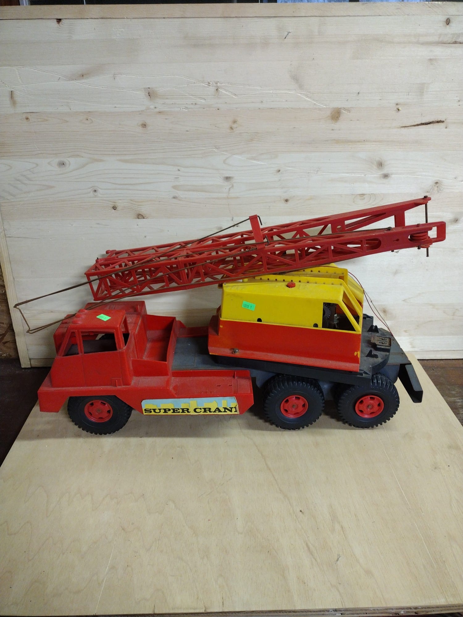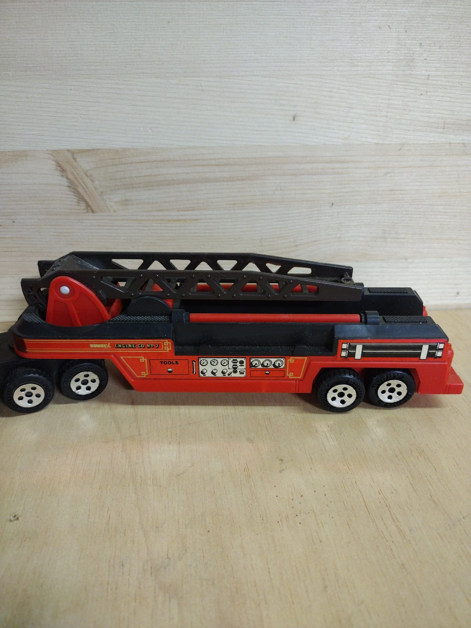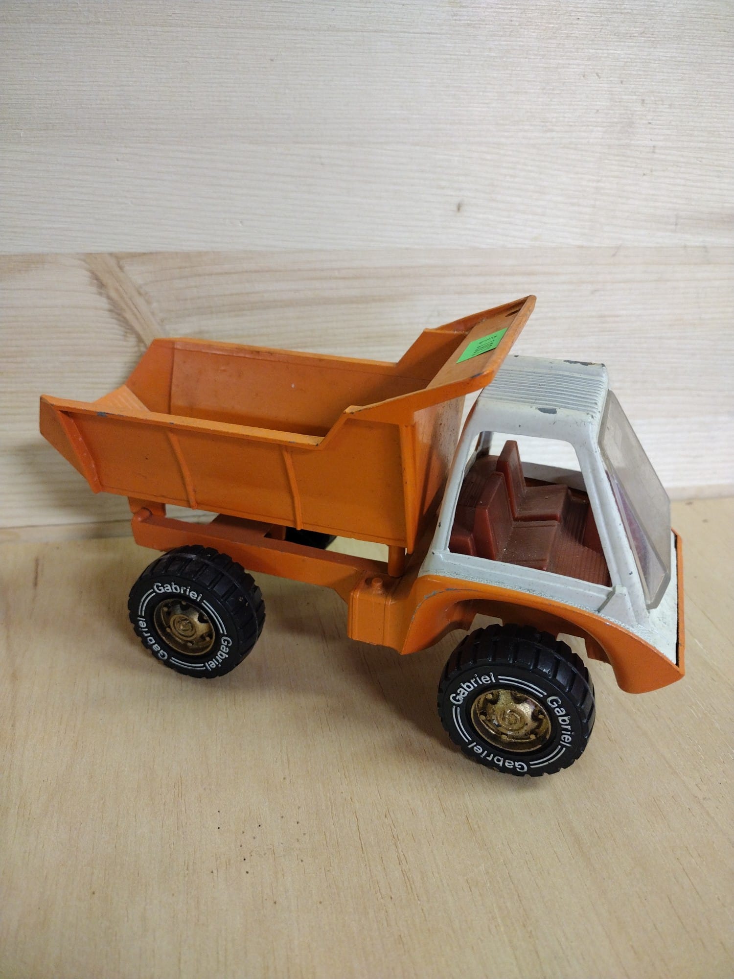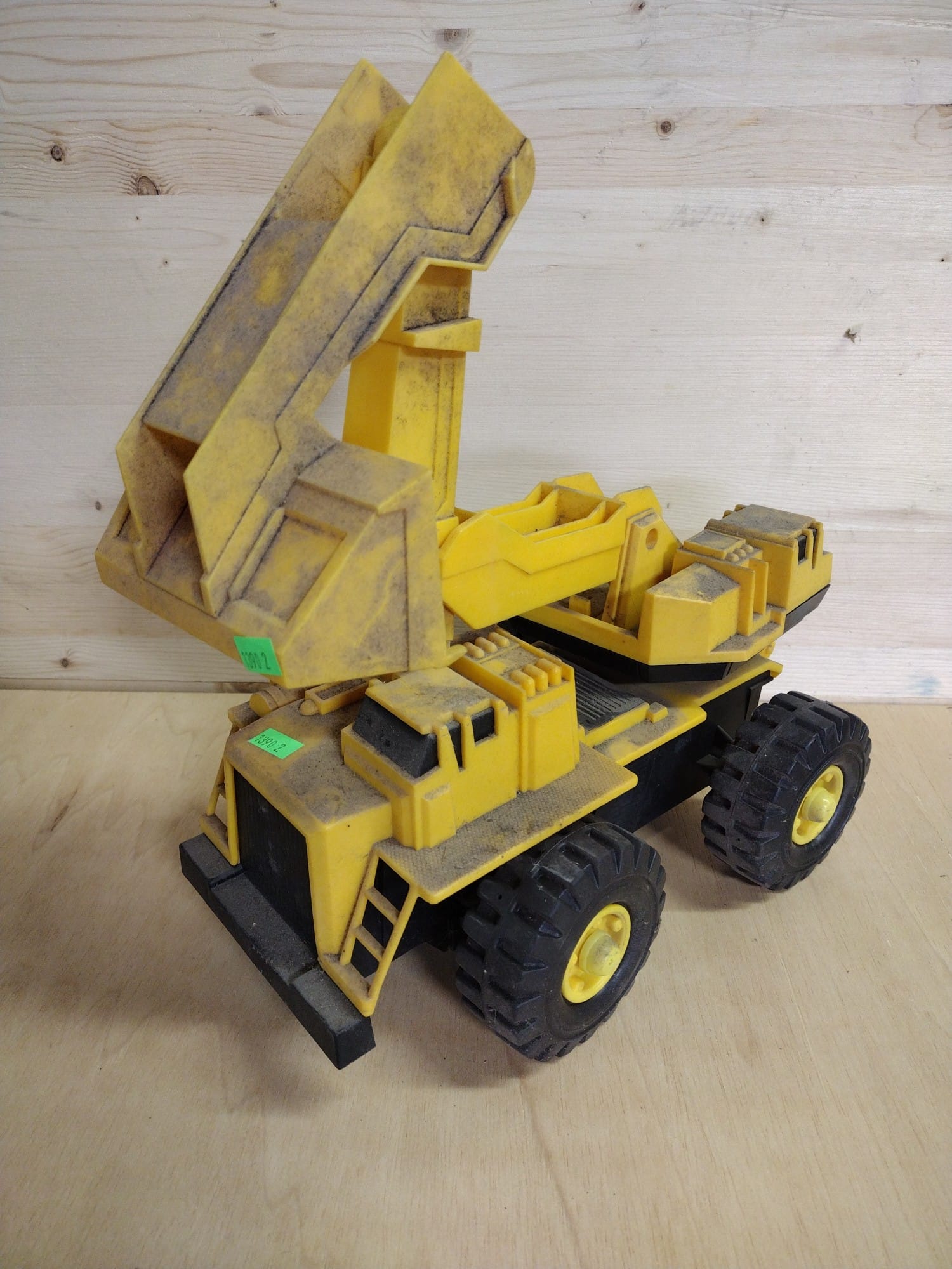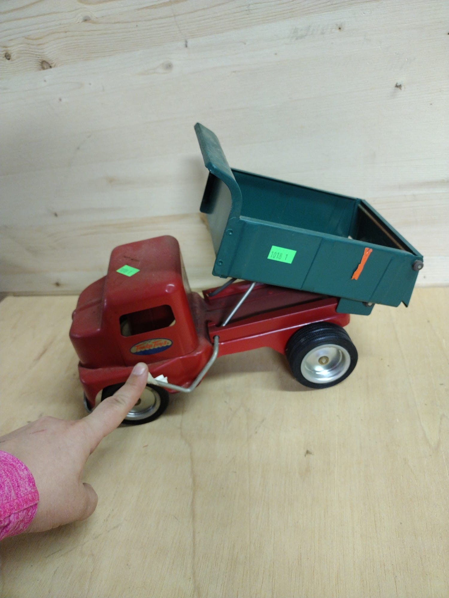 1435 Buddy L toy semis, yellow is plastic red is metal