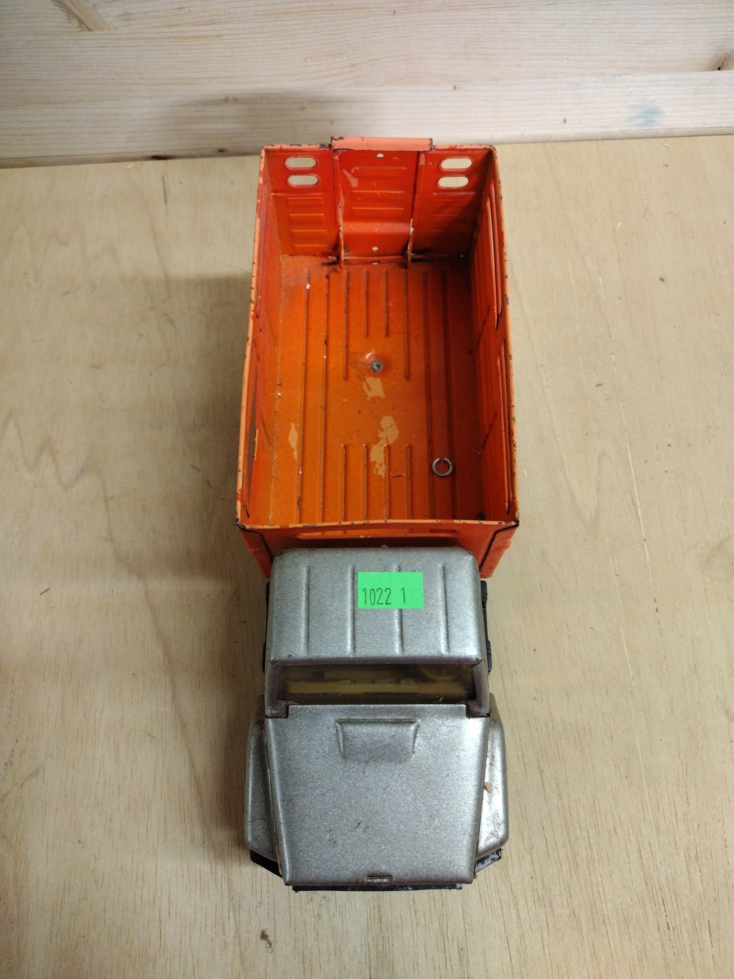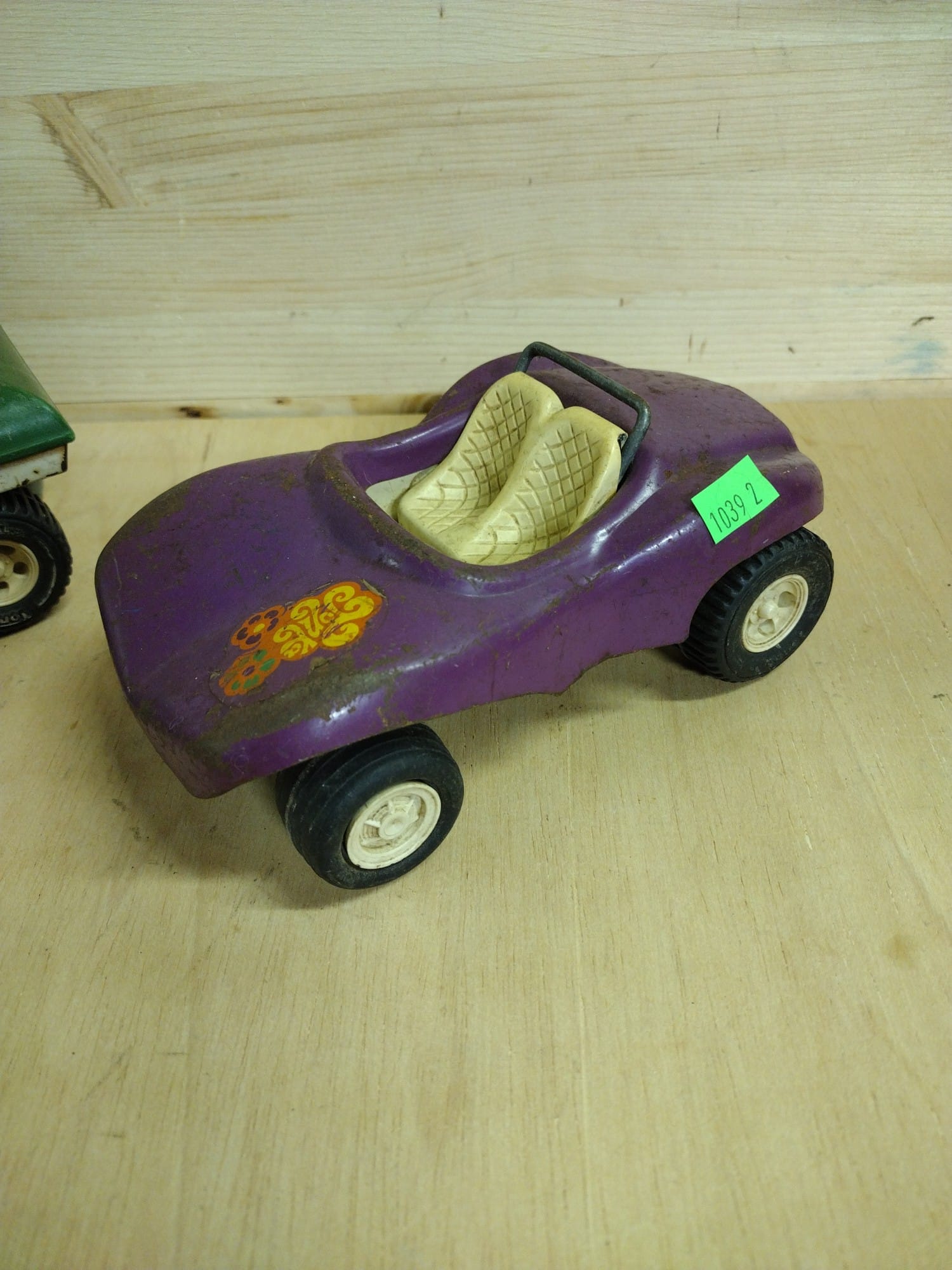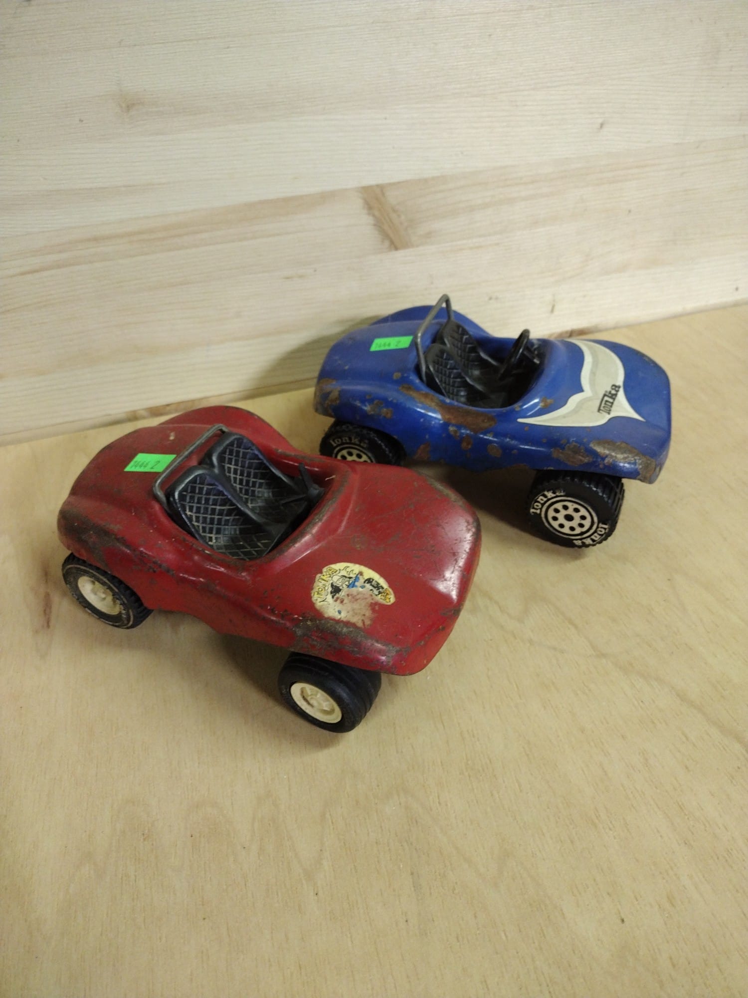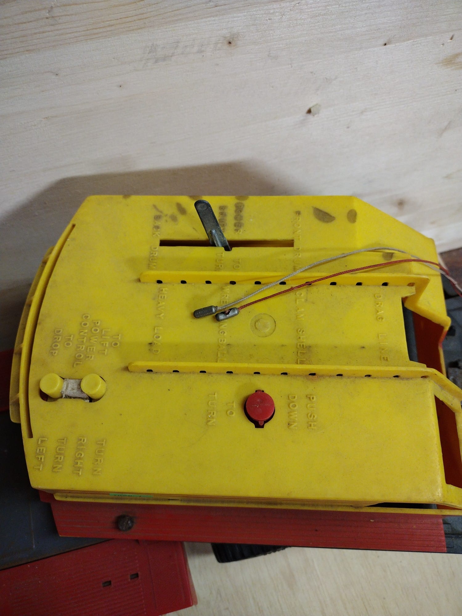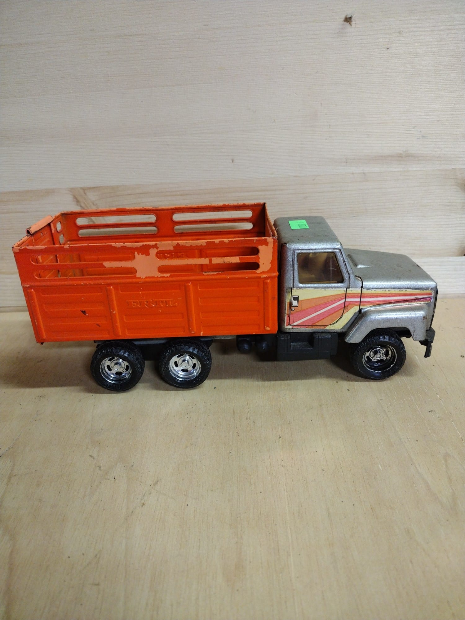 1435 Buddy L toy semis, yellow is plastic red is metal