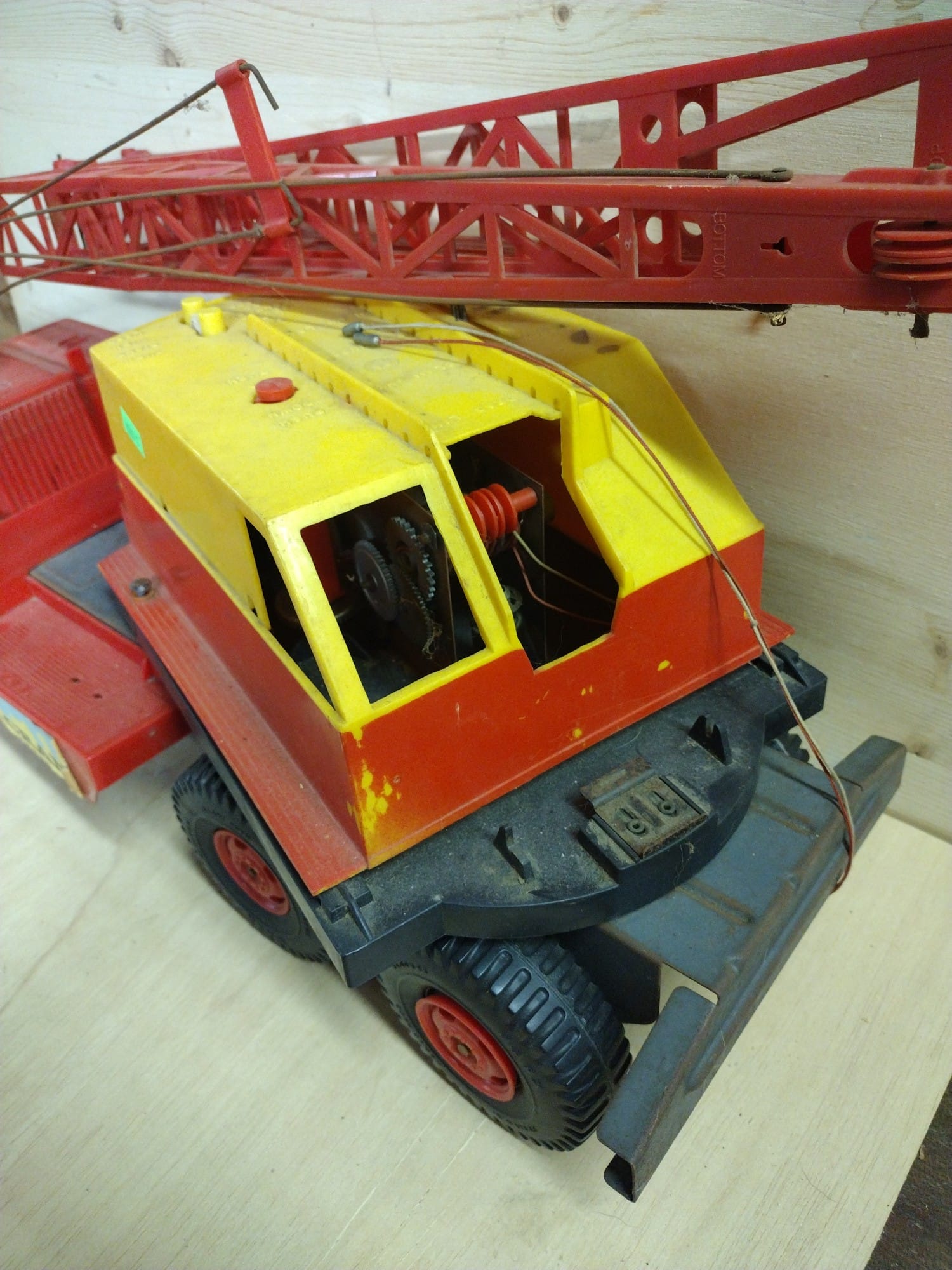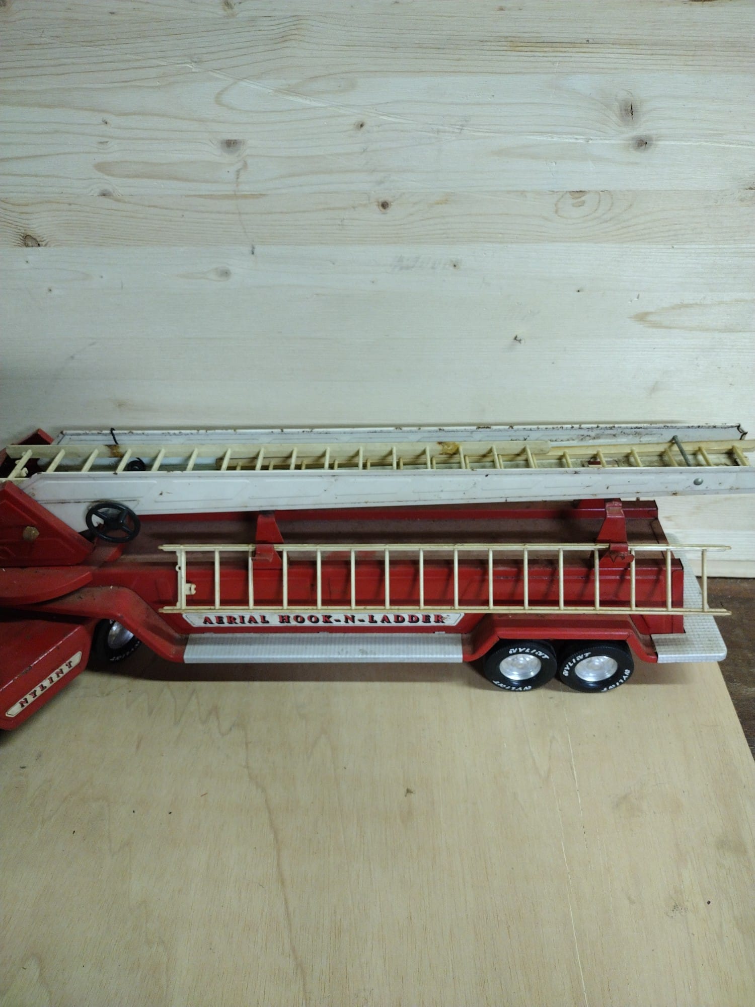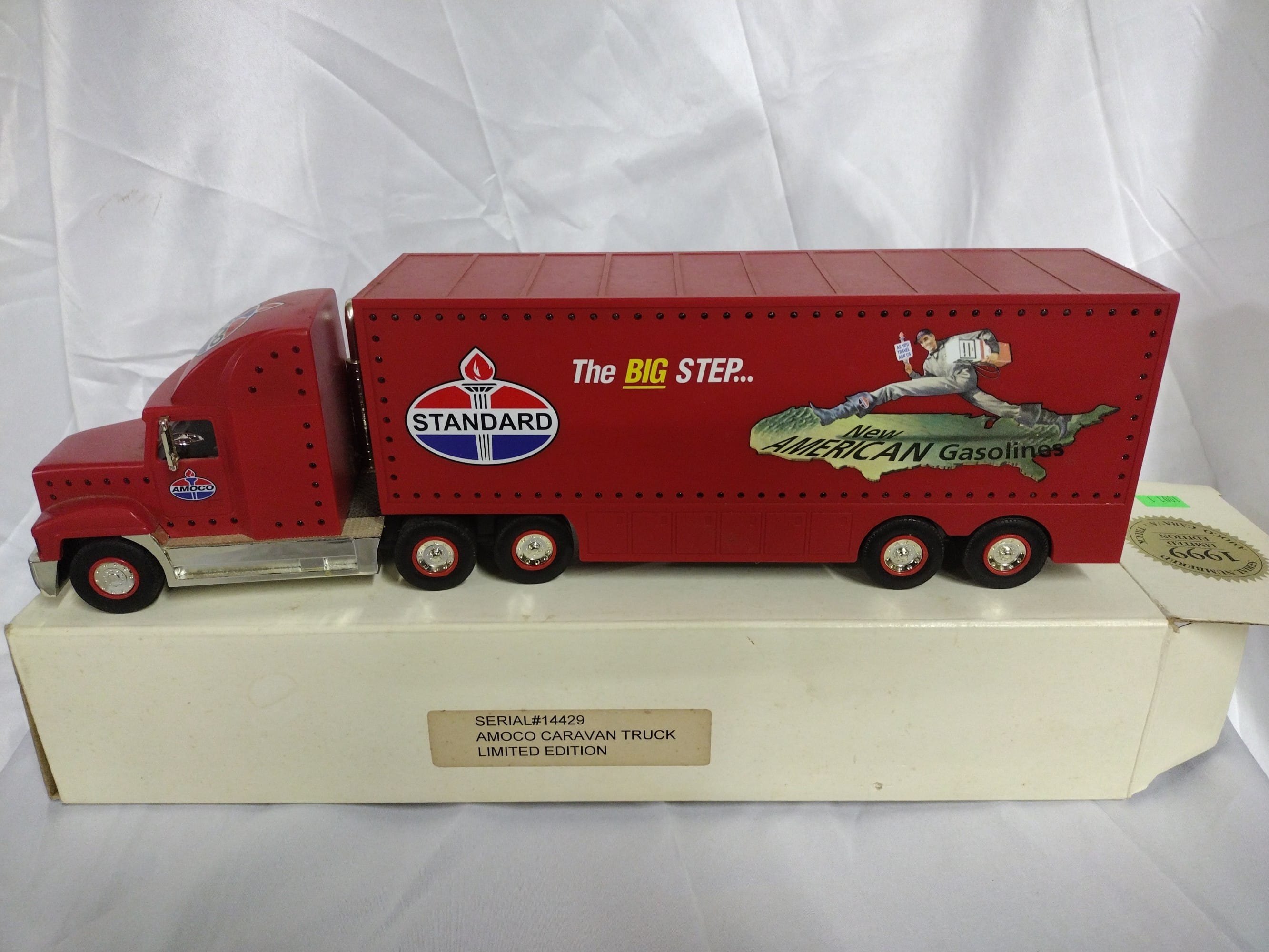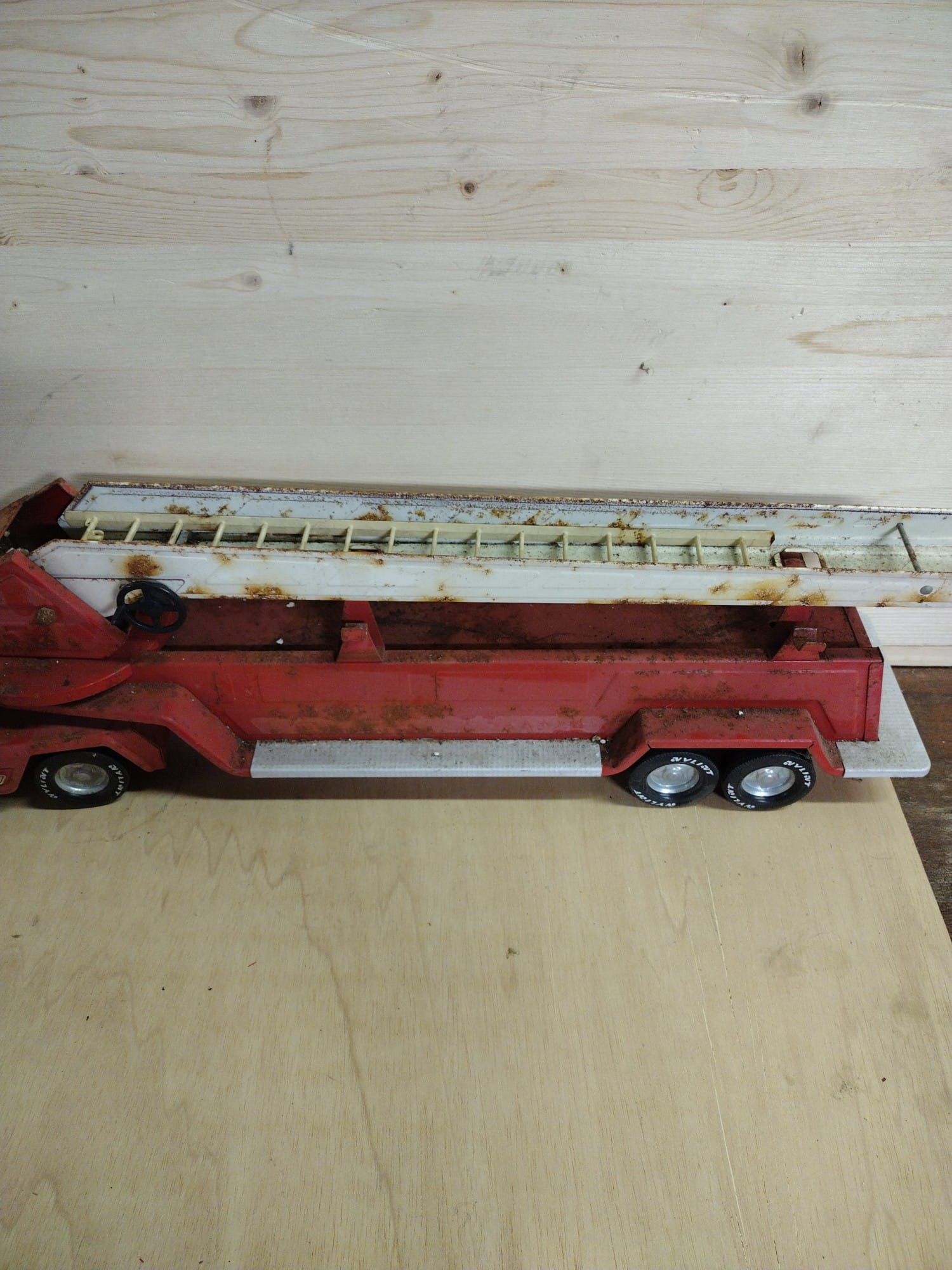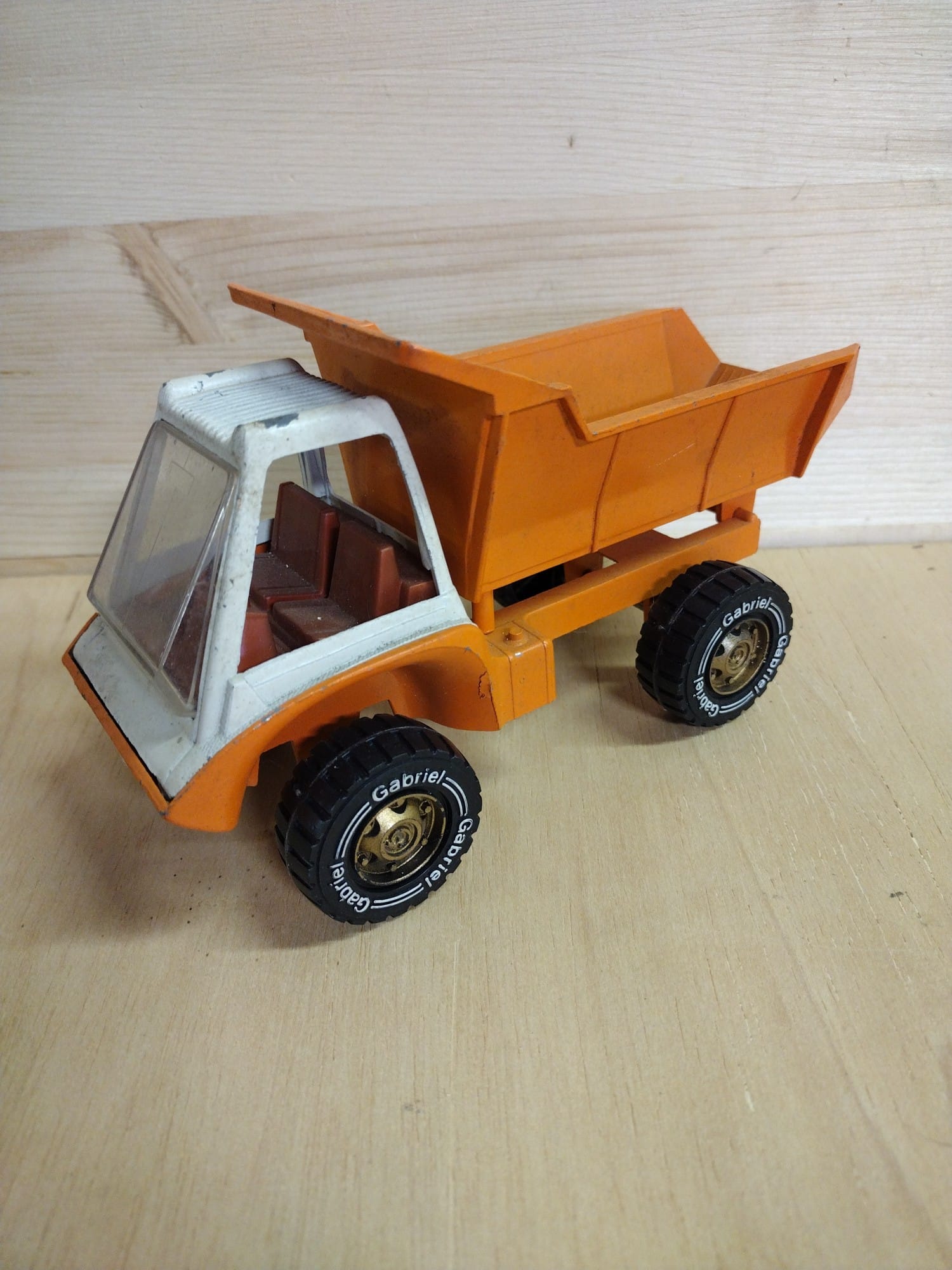 1435 Buddy L toy semis, yellow is plastic red is metal