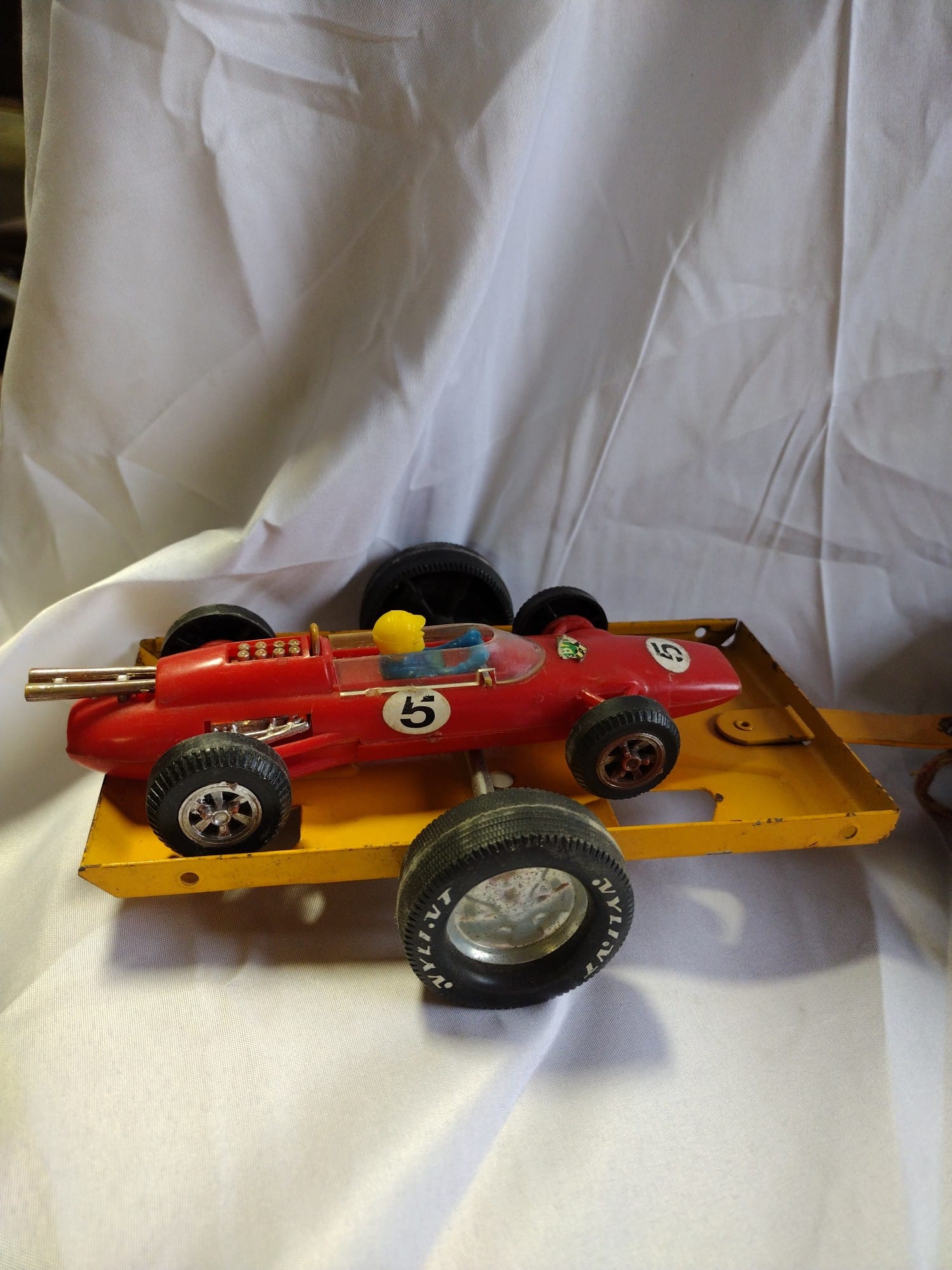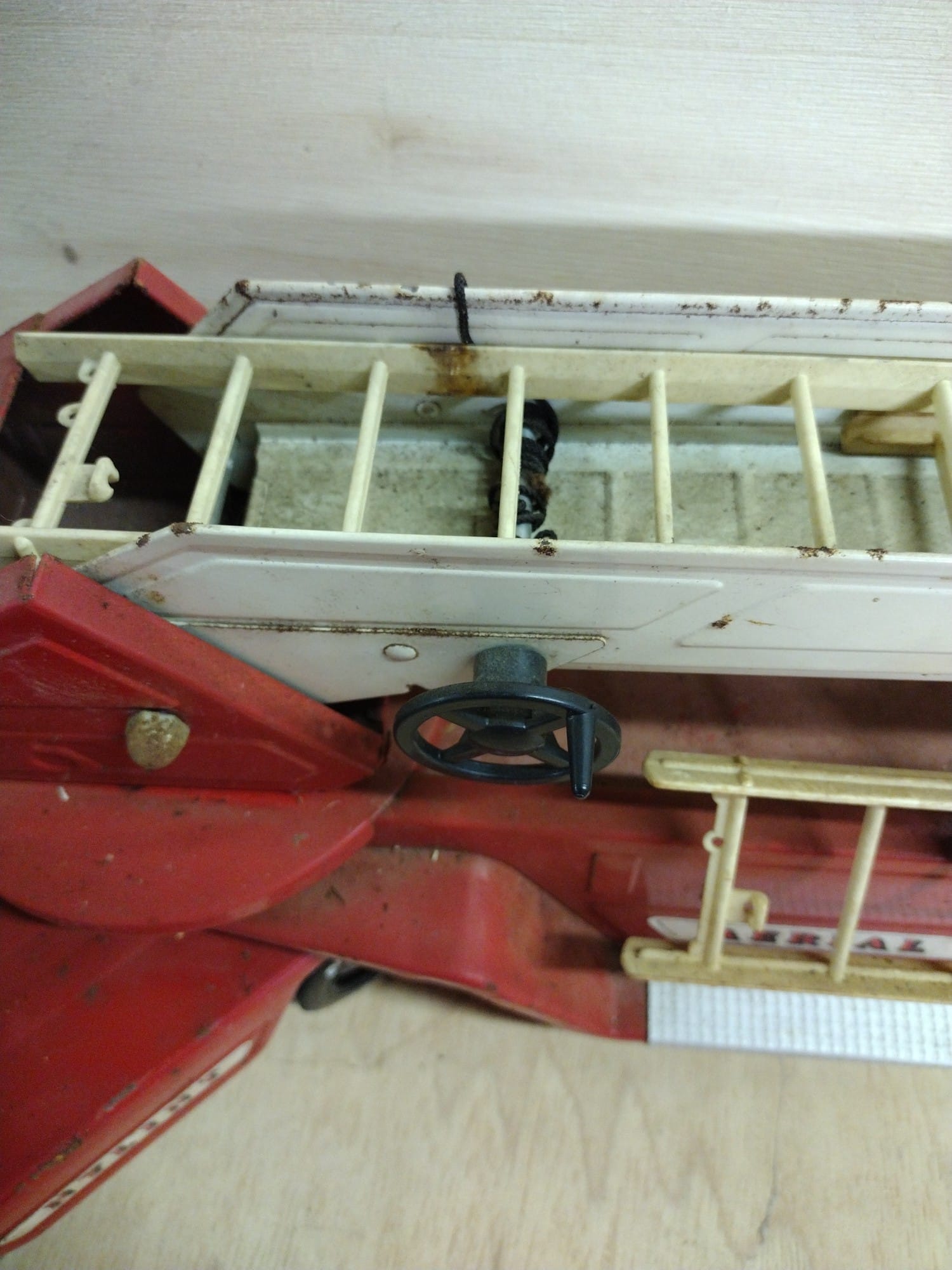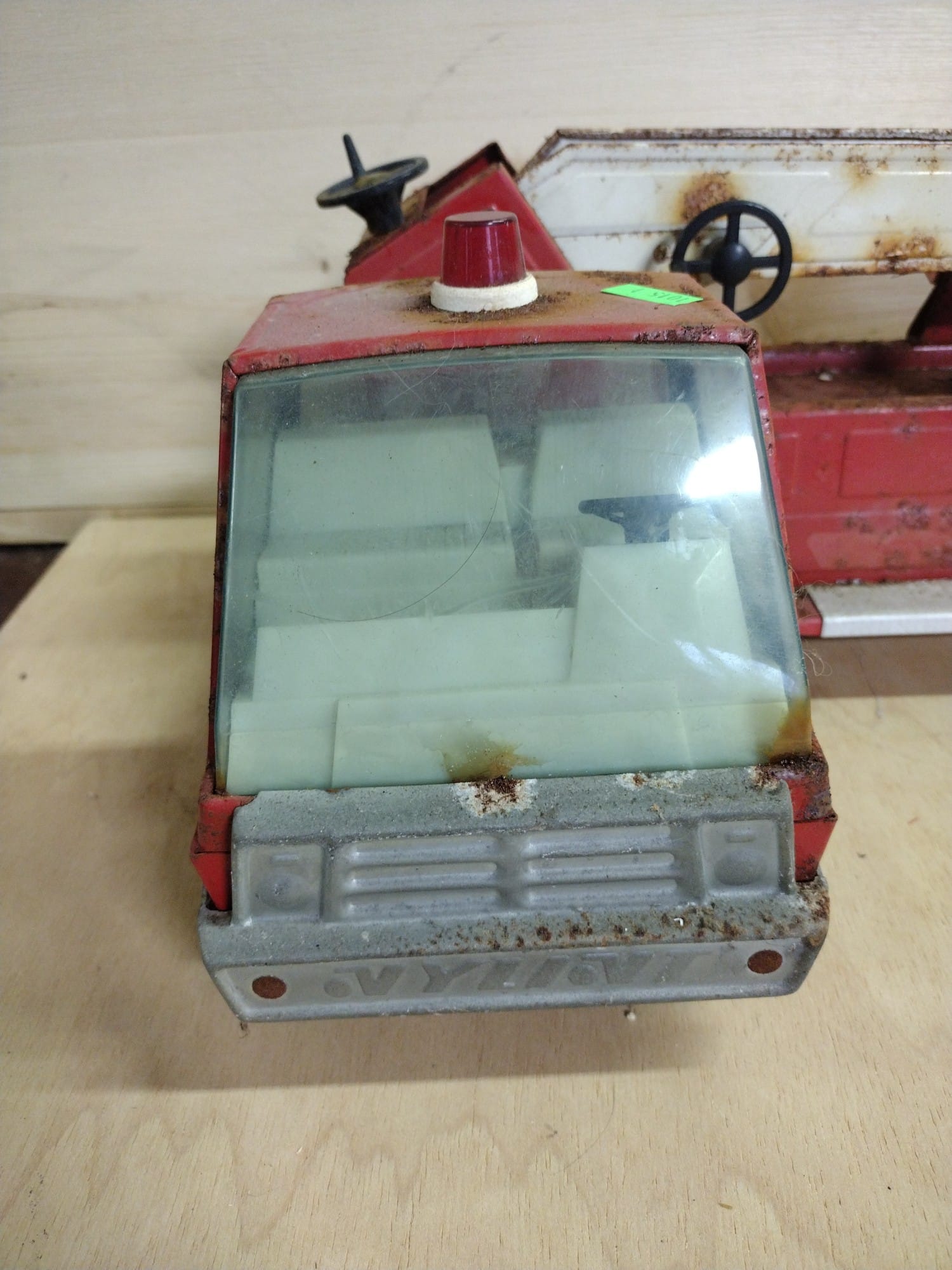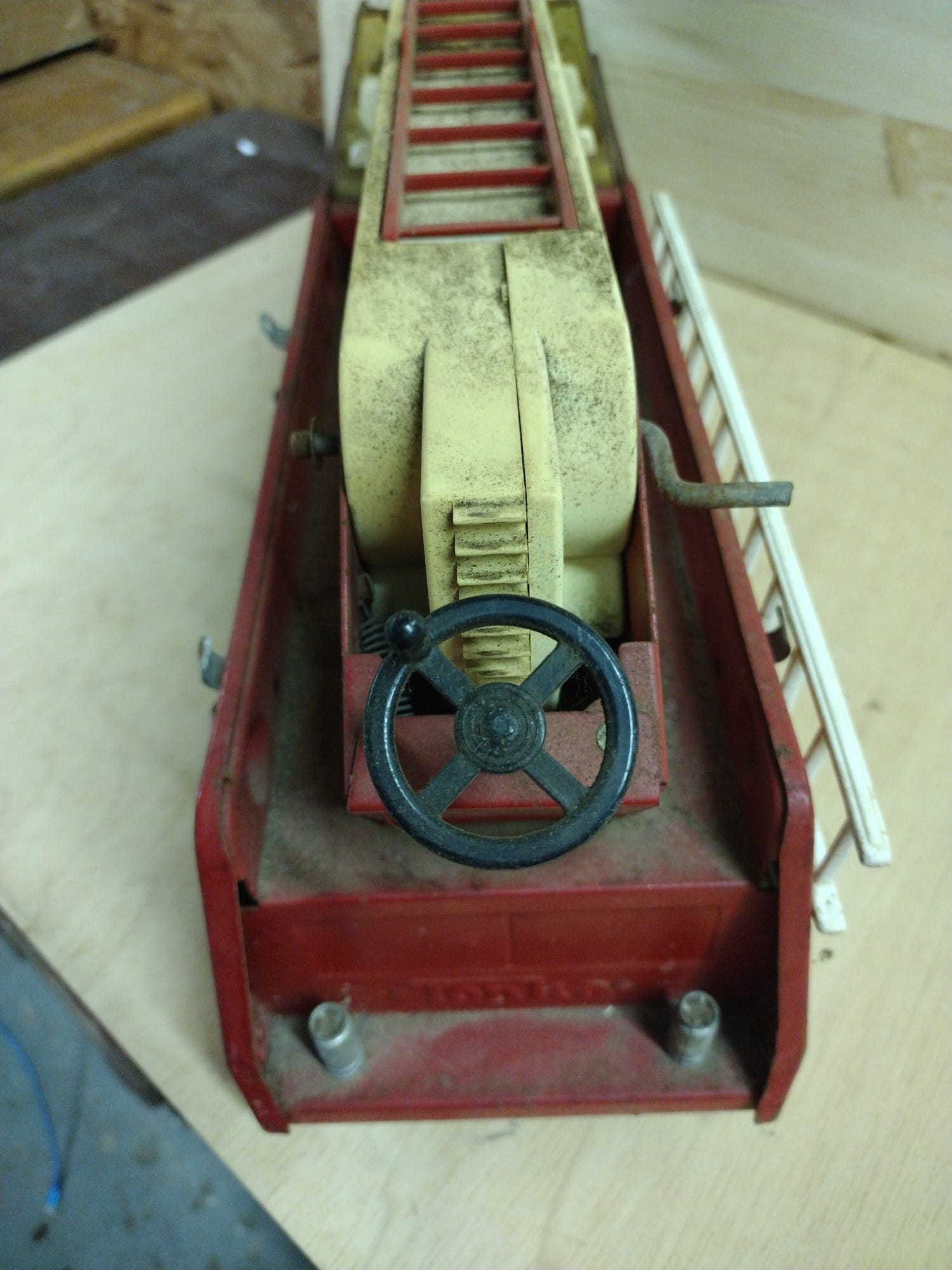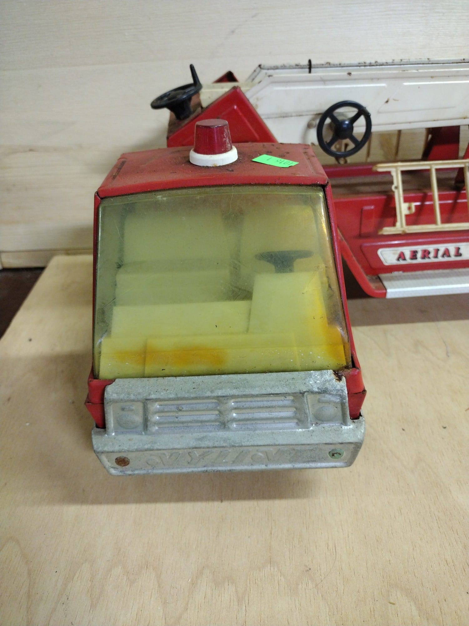 1435 Buddy L toy semis, yellow is plastic red is metal