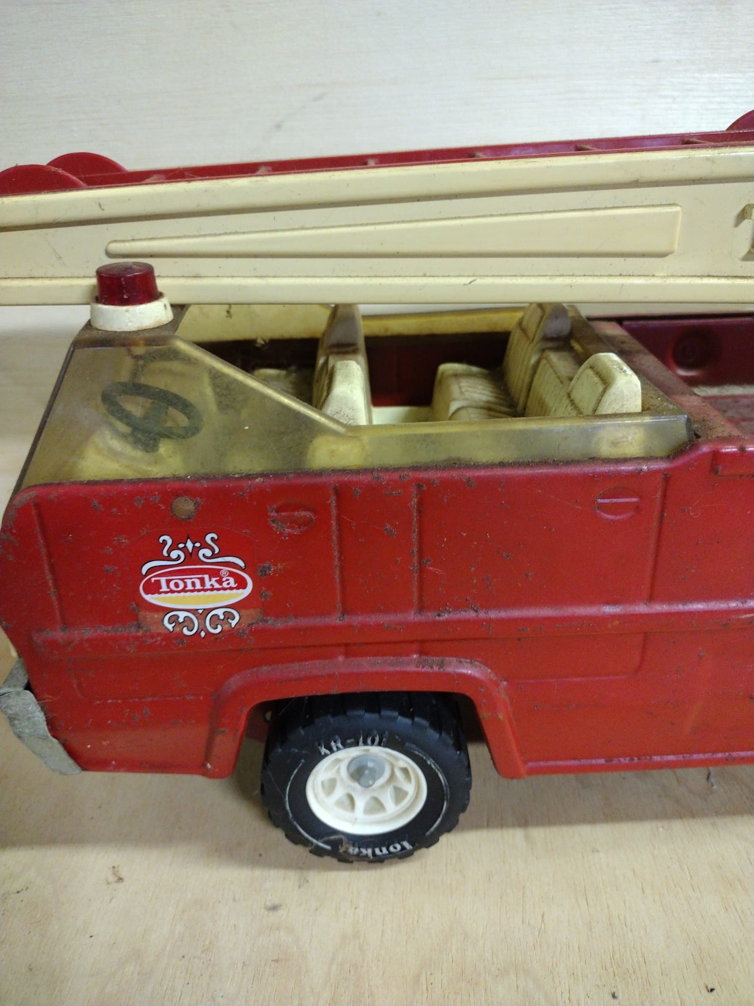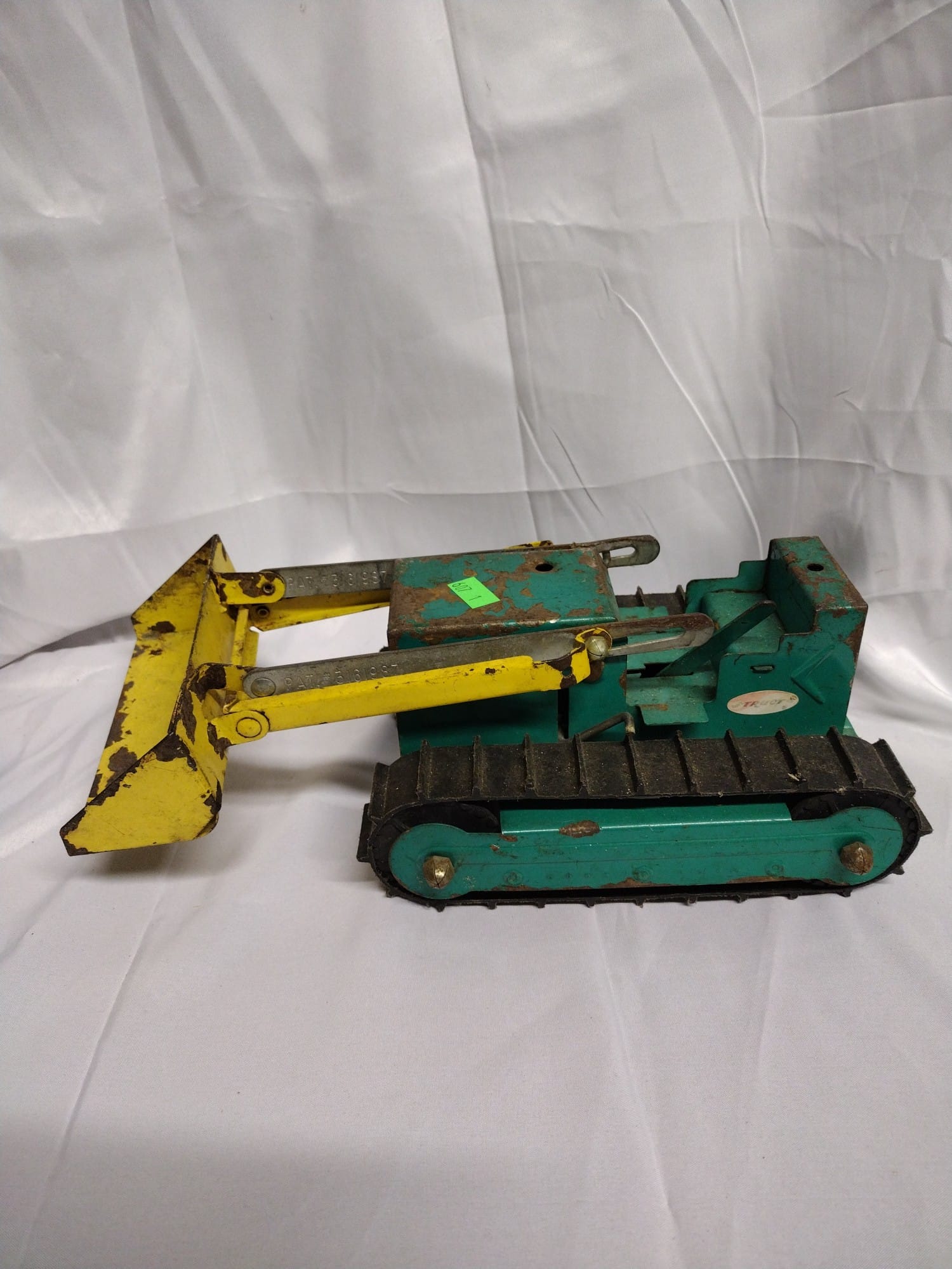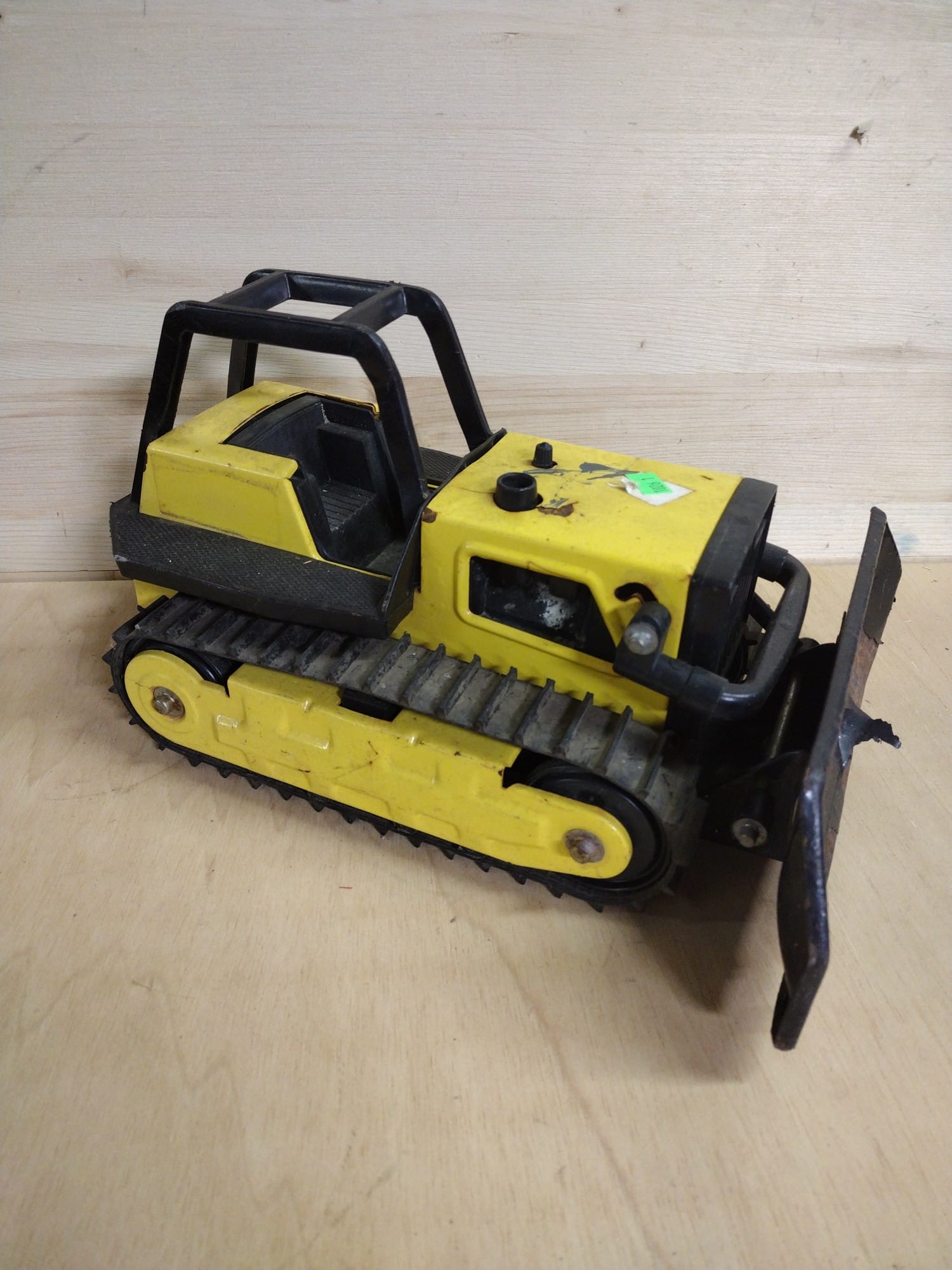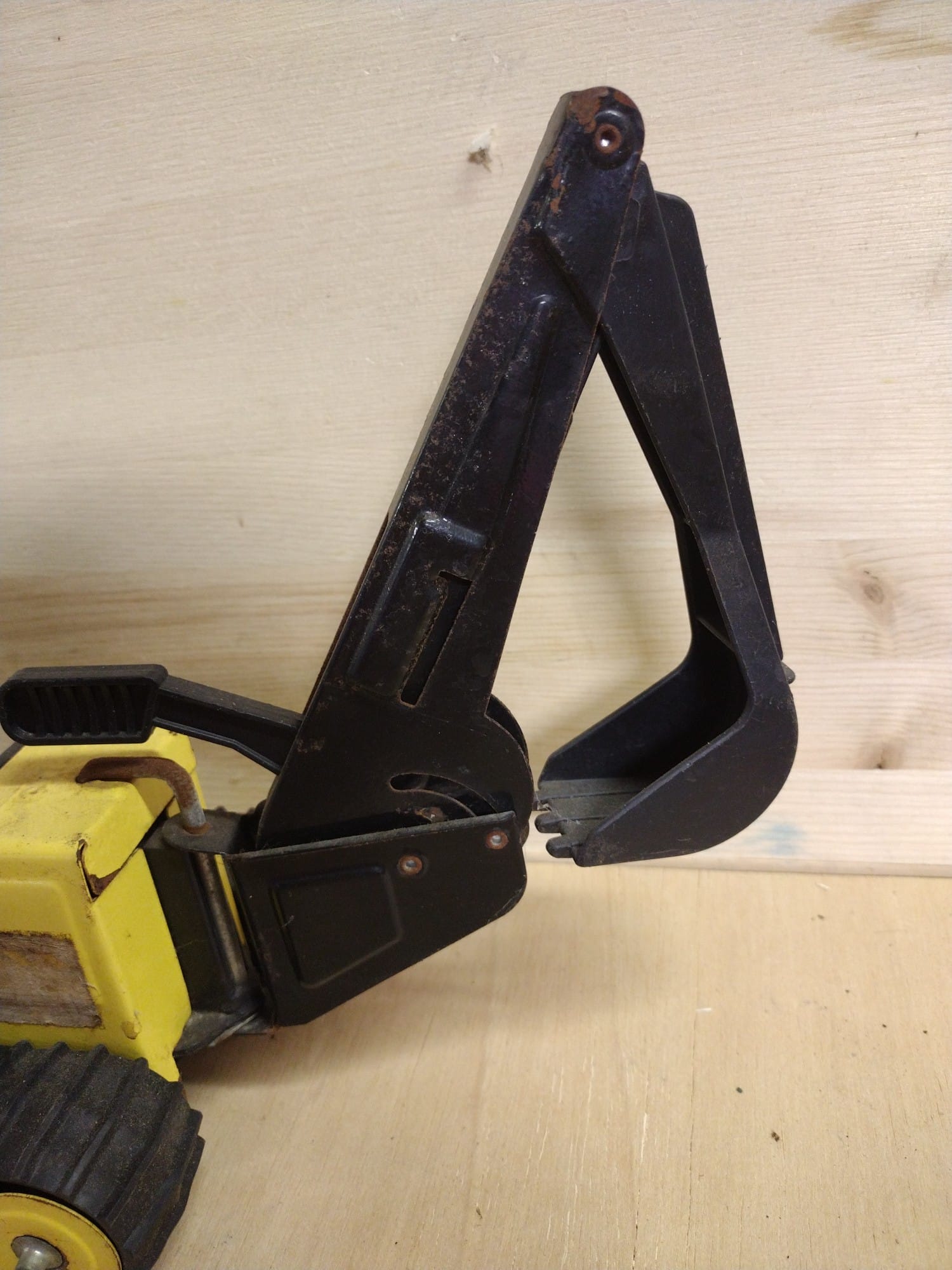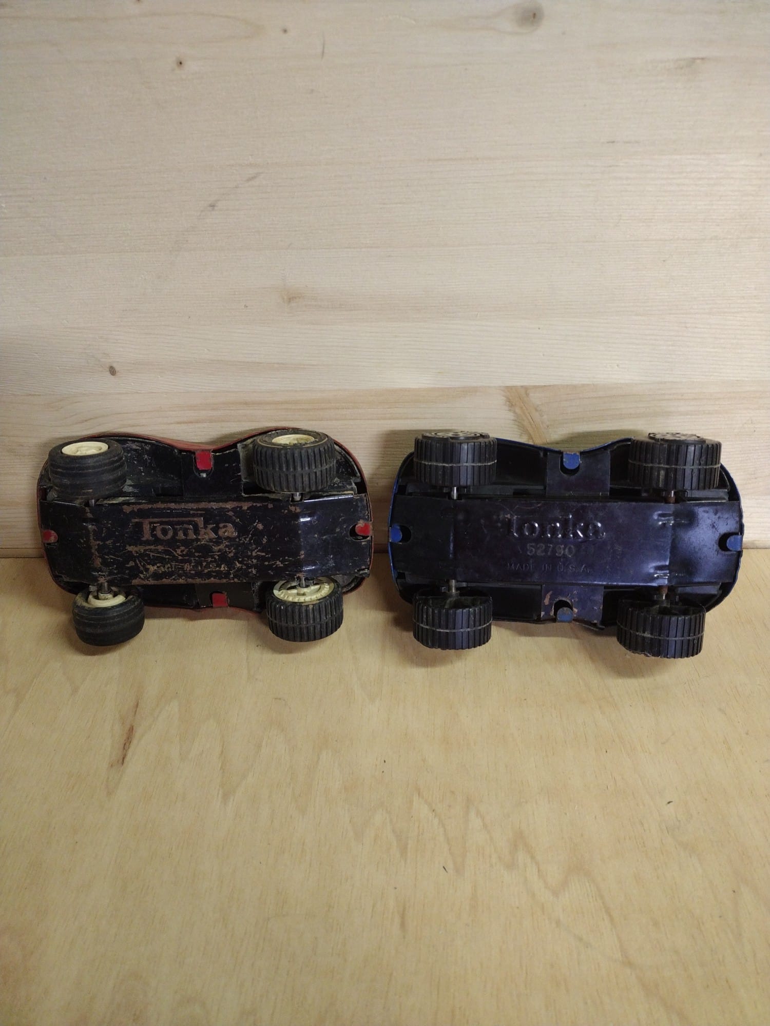 1435 Buddy L toy semis, yellow is plastic red is metal