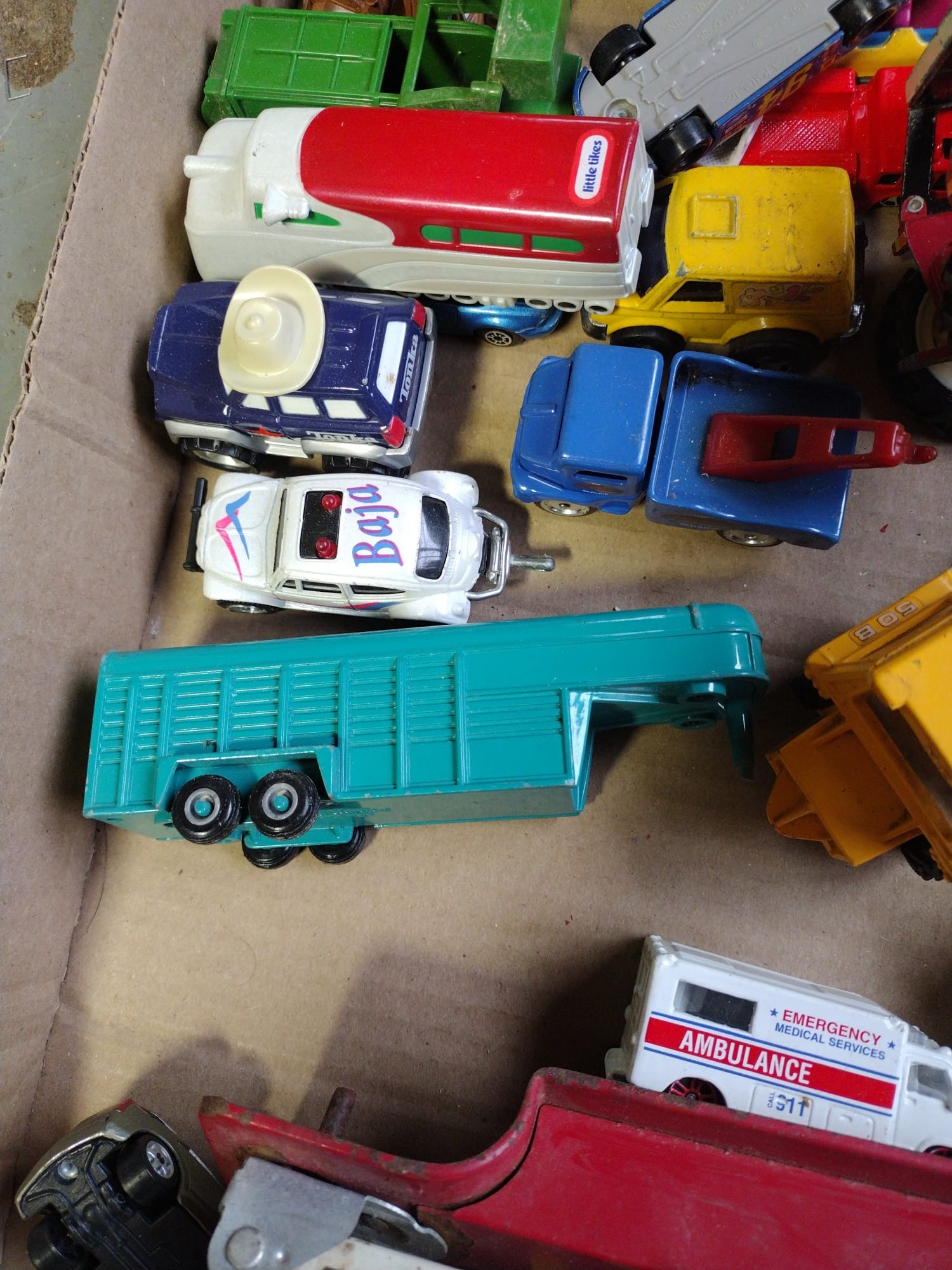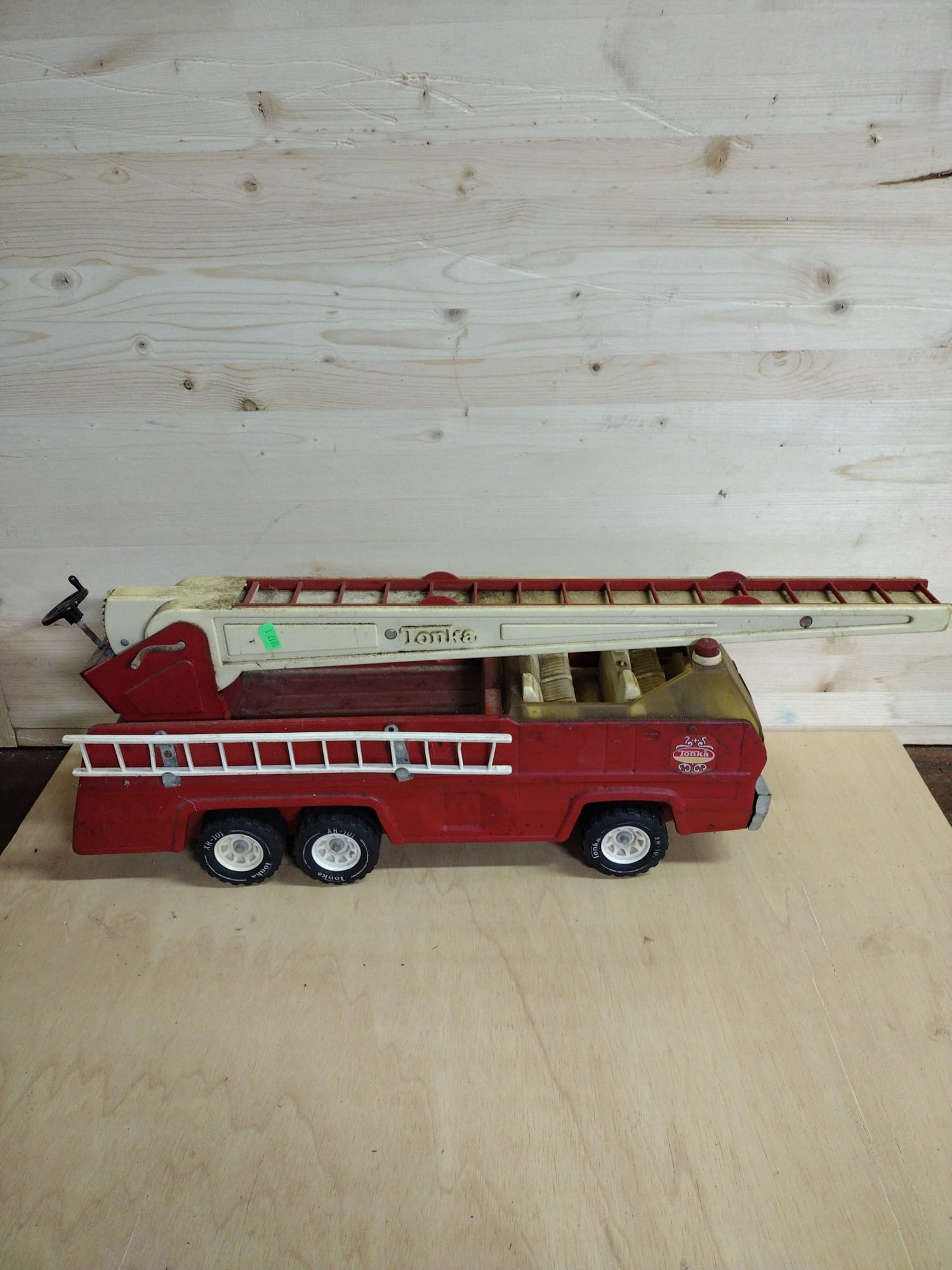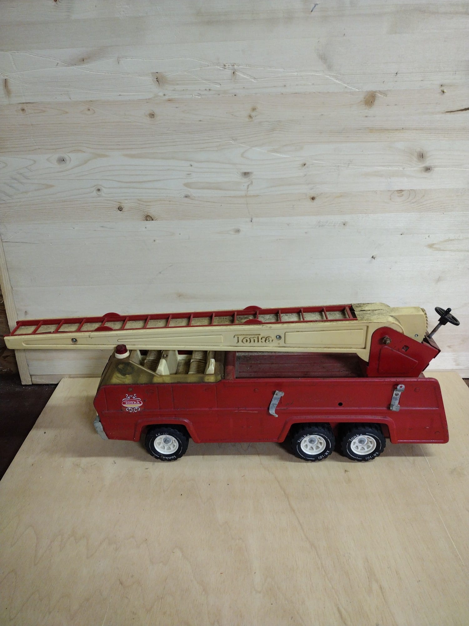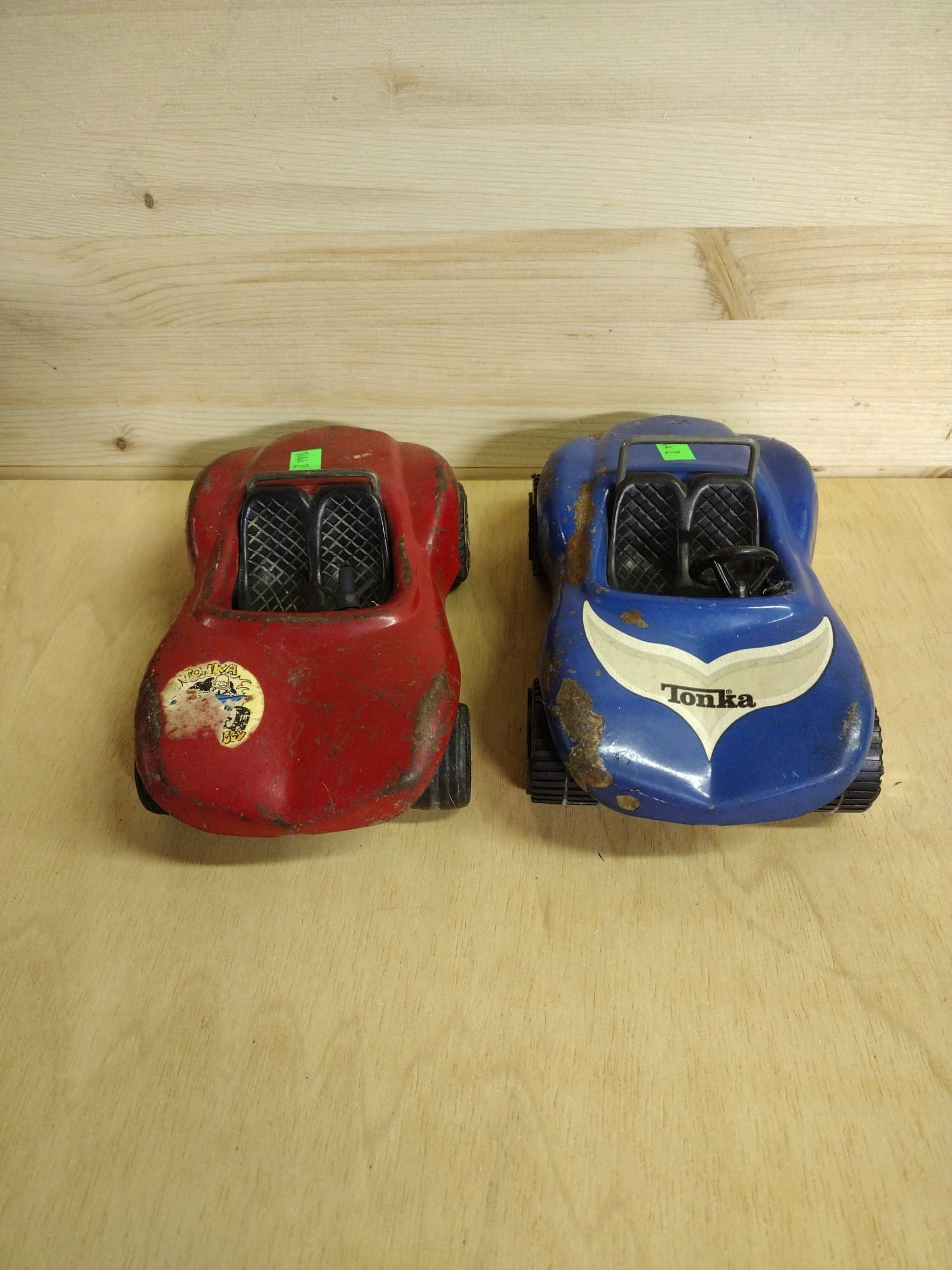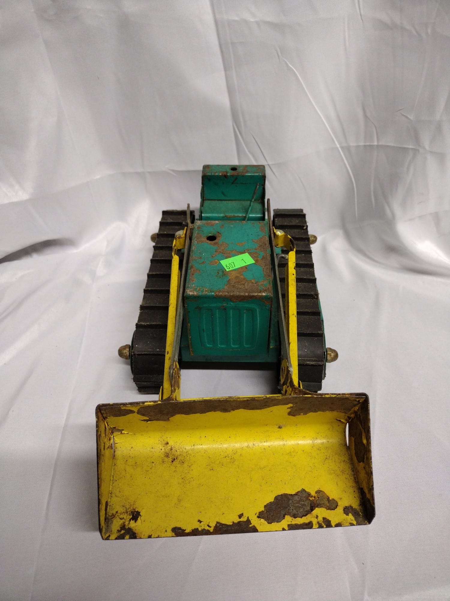 1435 Buddy L toy semis, yellow is plastic red is metal