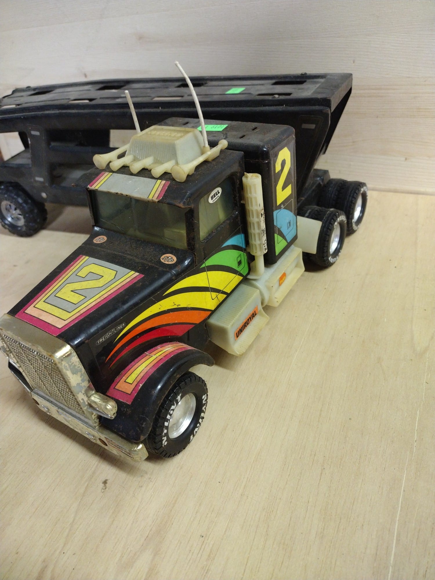 1432 Nylint metal GMC Astro 95 semi with car hauler