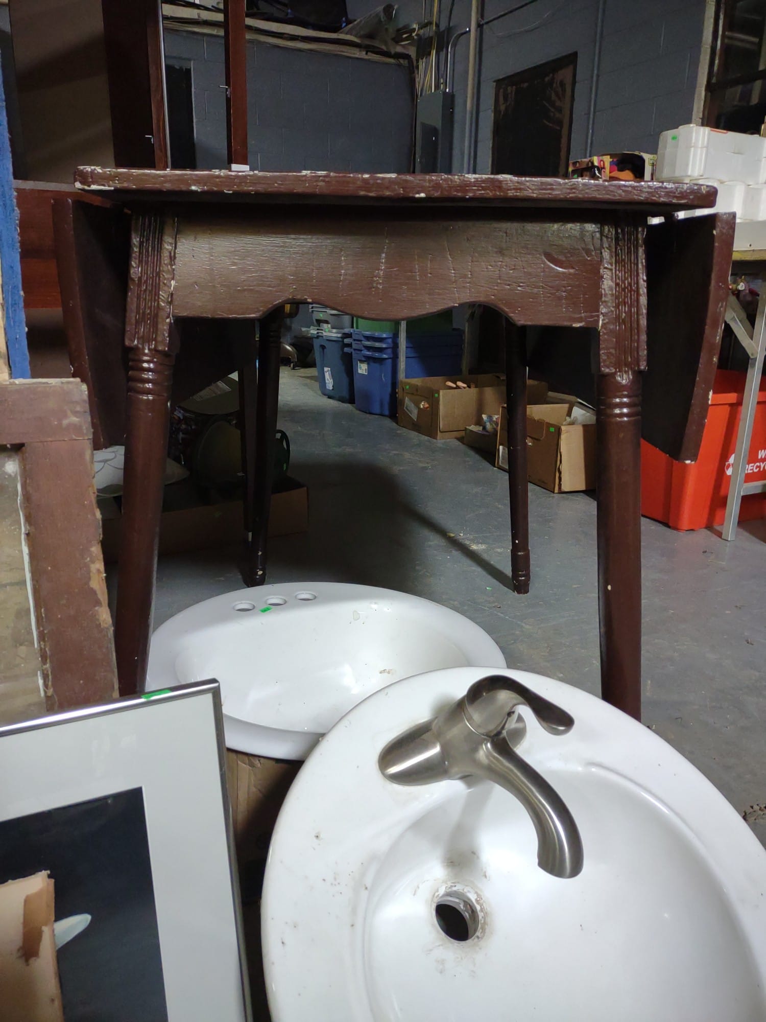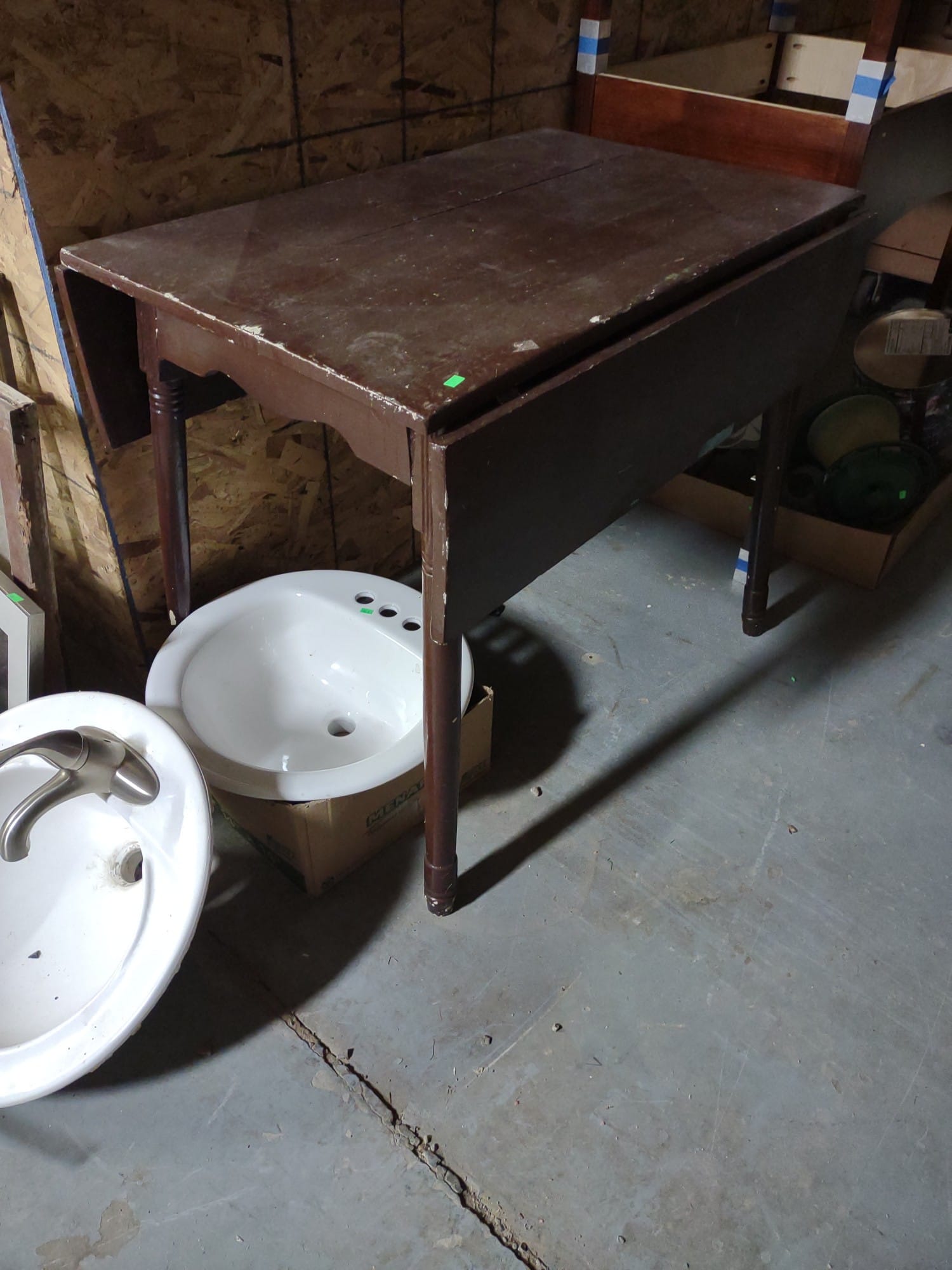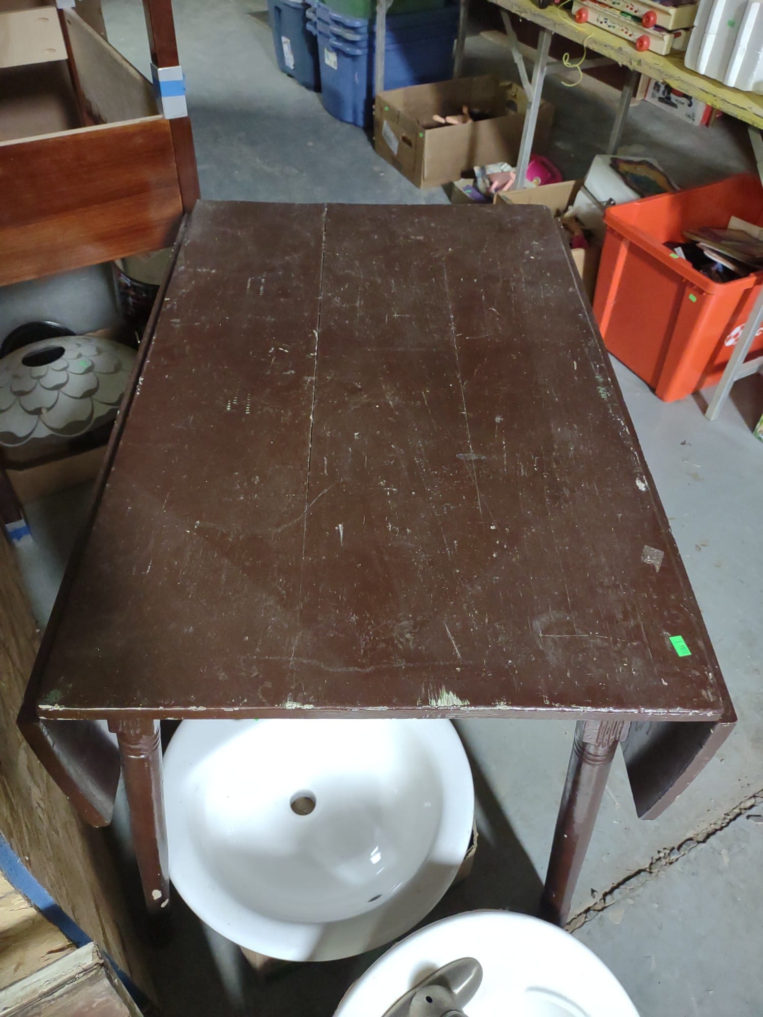 1504 Drop leaf table with wear 36 x 25 x 30 inches