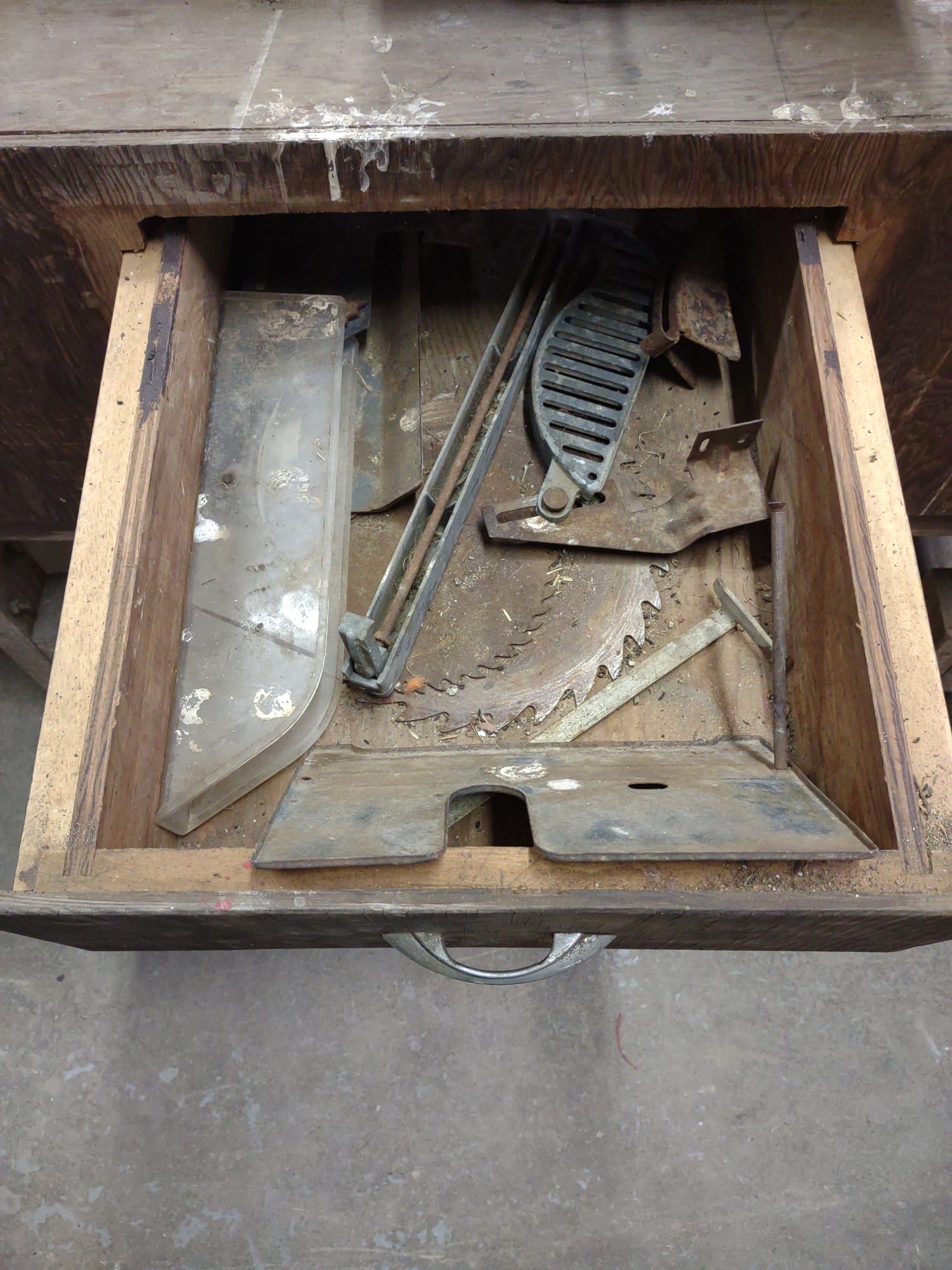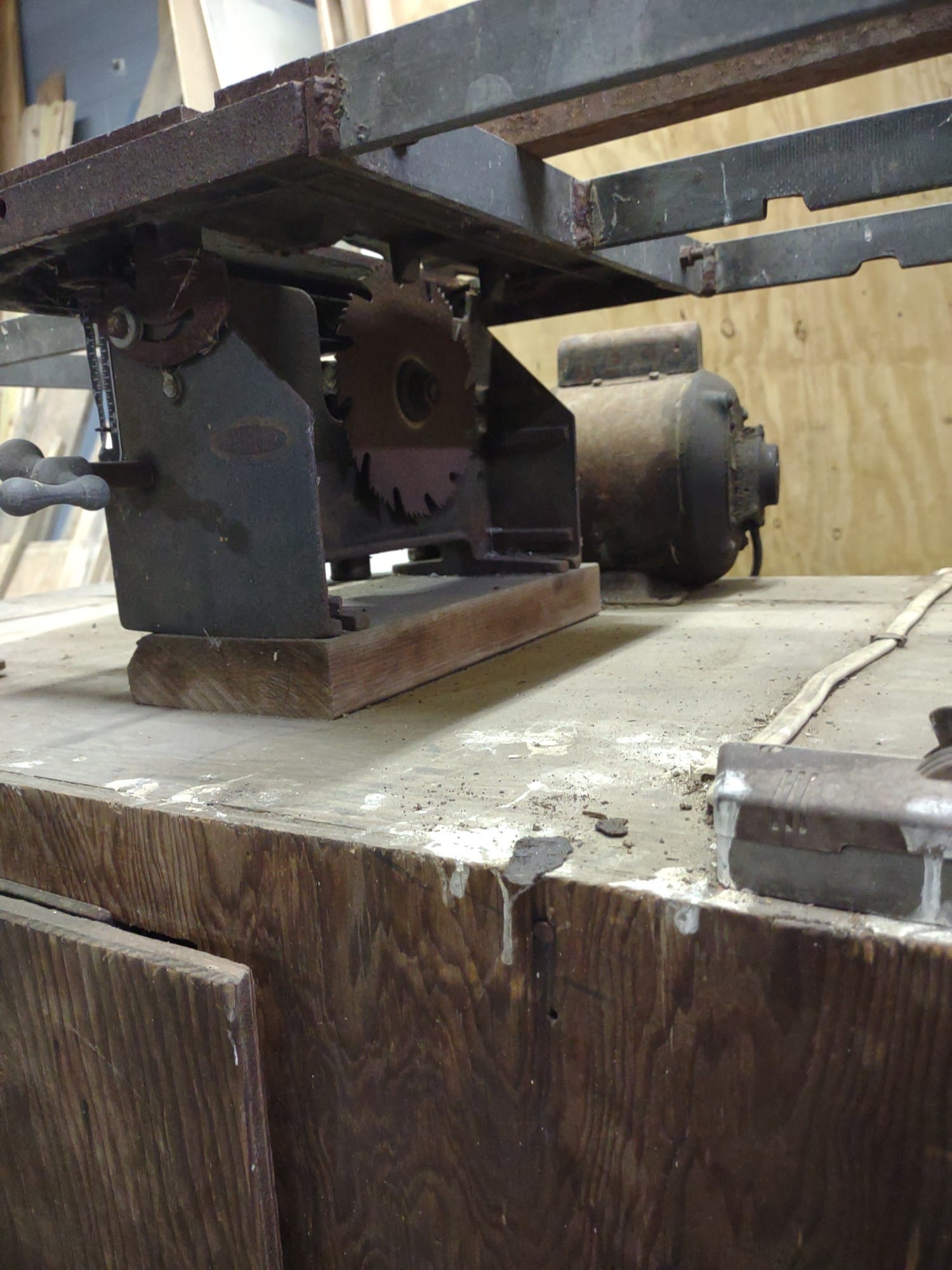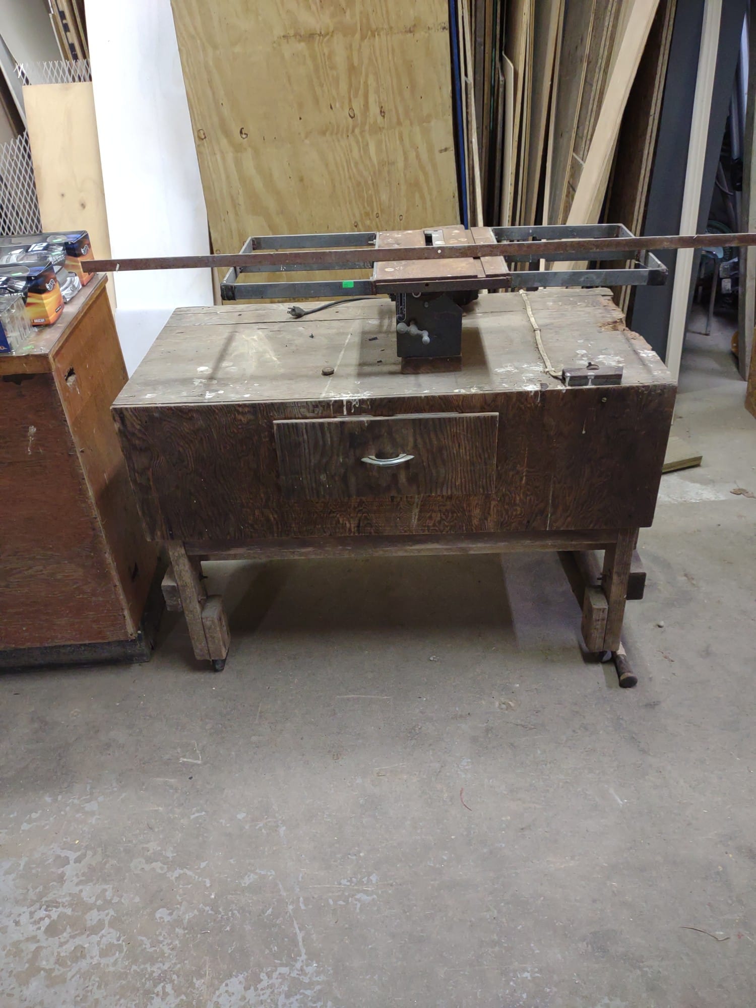 1522 Dunlap table saw mounted on cart 48 x 27 x 44 inches