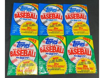 127 (6) Topps baseball bubble gum card packs- 1987 & 1989