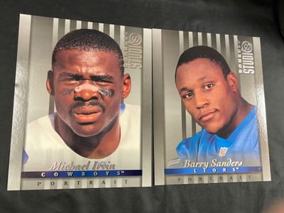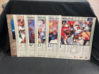 866 (6) Jumbo football cards 8”x10”- Jeff Blake, Emmitt Smith, Dan Marino, Barry Sanders, Michael Irvin, Troy Aikman
