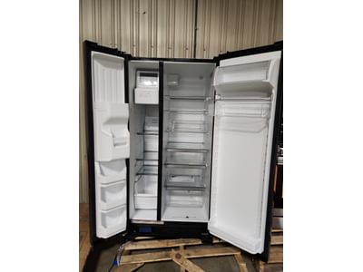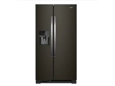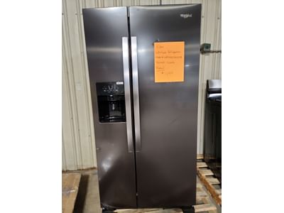 6 NEW Whirlpool 25 cu. ft. Side by Side Refrigerator in Fingerprint Resistant Black Stainless Model # WRS321SDHV08 minor scratches and dent