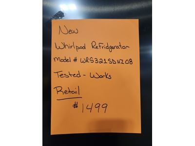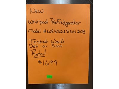 29 NEW Whirlpool 21.4 cu. ft. Side by Side Refrigerator in Fingerprint Resistant Stainless Steel,model#WRS321SDHZ08,dent on front freezer side,long scratch on right panel