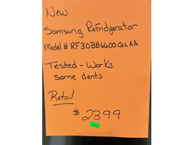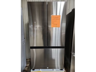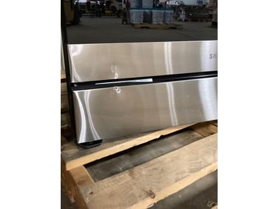 25 NEW Samsung Bespoke 30 Cu. Ft. Stainless Steel 3-Door French Door Refrigerator with Beverage Center™,model #RD30BB6600QLAA,dents on front left door,bottom top left side & lower of freezer drawer and top right side of frig