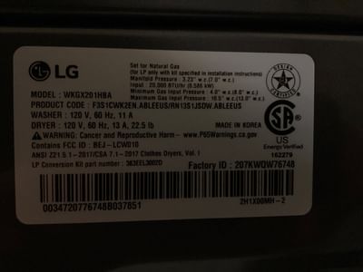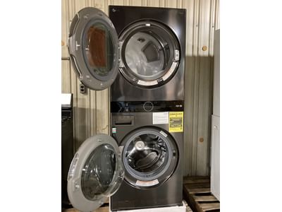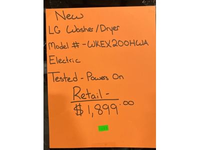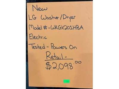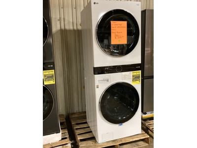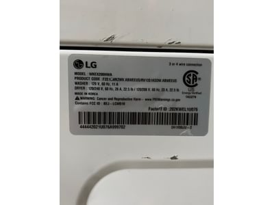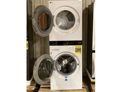 9 NEW LG Washer/Dryer 27 in. WashTower Laundry Center with 4.5 cu. ft. Front Load Washer and 7.4 cu. ft. Electric Dryer with Steam in White,model #WKEX200HWA,small dent on lower right side of dryer and small scratches,small scratches on left top side of washer