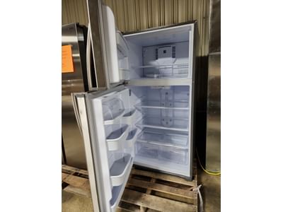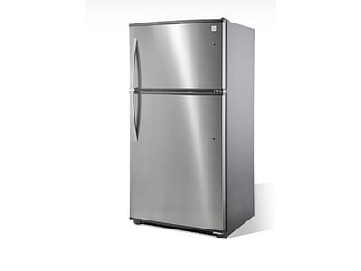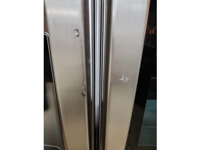 24 Kenmore 61215 21 cu. ft. Energy Star Top-Freezer Fridge - Fingerprint-Resistant Stainless Steel Model # 111.61205715 has dents on front door