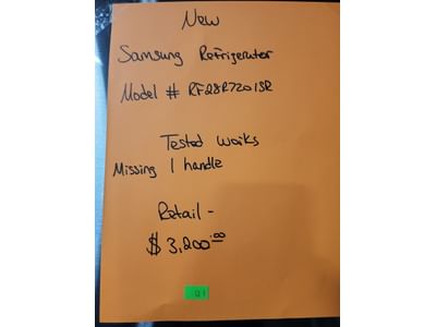 13 NEW Samsung 28 cu. ft. 4-Door French Door Smart Refrigerator in Fingerprint Resistant Stainless Steel, Standard Depth Missing 1 handle model # RF28R7201SR