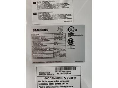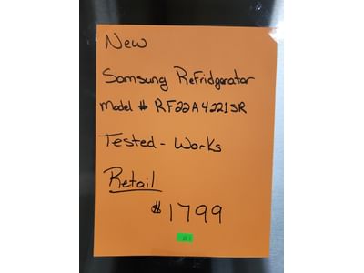 20 NEW Samsung 22 cu. ft. 3-Door French Door Smart Refrigerator with Water Dispenser in Fingerprint Resistant Stainless Steel Model # RF22A4221SR/AA