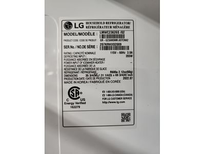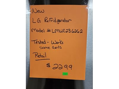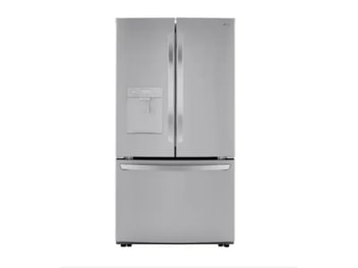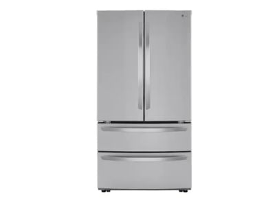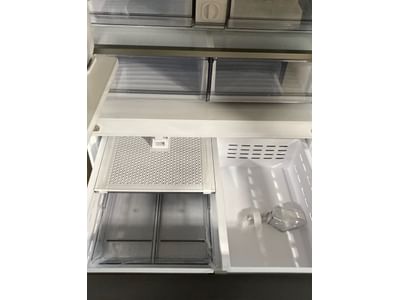 21 NEW LG Electronics 23 cu. ft. 4-Door French Door Refrigerator with Internal Water Dispenser in PrintProof Stainless Steel, Counter Depth Model # LMWC23626S MISSING GLASS SHELF has small dents on front