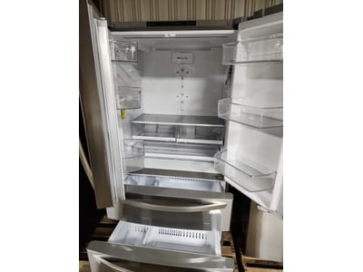 12 NEW Frigidaire 17.6 cu. ft. French Door Refrigerator in Brushed Steel, Counter-Depth Model # GRFN2853AFO