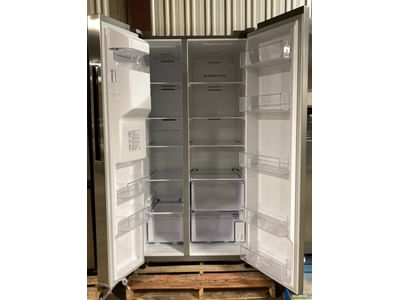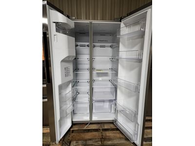 23 NEW Samsung 36 in. 27.4 cu. ft. Side by Side Refrigerator in Fingerprint-Resistant Stainless Steel, Standard Depth Model #RS27T5200SR has small dents