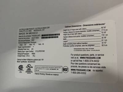 27 NEW Frigidaire 36 in. 25.6 cu. ft. Side by Side Refrigerator in Stainless Steel, Standard Depth,model #FRSS26L3AF5
