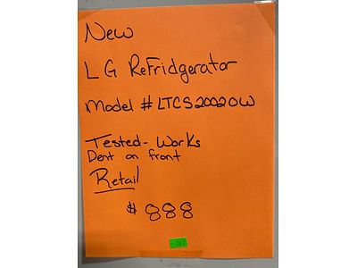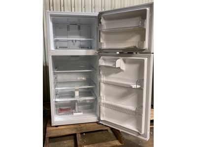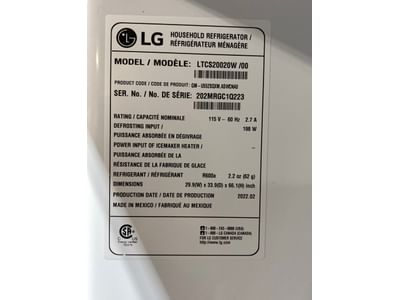 28 NEW LG 30 Inch Freestanding Top Freezer Refrigerator with 20.2 cu. ft. Total Capacity, 2 Glass Shelves, 5.5 cu. ft. Freezer Capacity, Right Hinge with Reversible Doors, Crisper Drawer, Automatic Defrost, Energy Star Certified, Adjustable Glass Shelves, SmartDiagnosis in Smooth White,model#LTCS20020W,dent on lower right front,back right side panel and lower left side panel and door