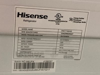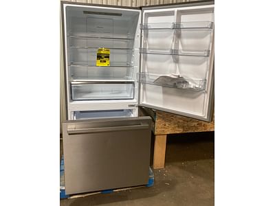 30 NEW Hisense 17.2-cu ft Counter-depth Bottom-Freezer Refrigerator (Fingerprint Resistant Stainless Steel) ENERGY STAR, model#HRB171N6ASE,dents on right top frig door corner & front of freezer door