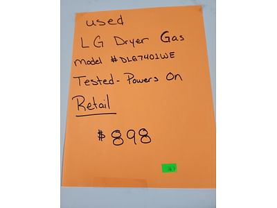 36 LG 7.3 Cu. Ft. Ultra Large Capacity Smart Wi-fi Enabled Rear Control Gas Dryer Model # DLG7401WE USED
