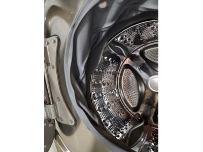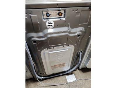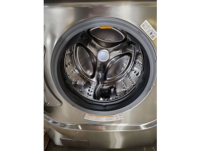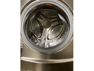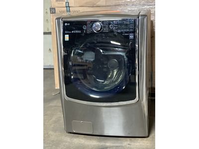 43 LG SIGNATURE 5.8 cu.Electric Front Load Washer,Black Stainless Steel,model#WM9000HVA,dents on right and left panels.