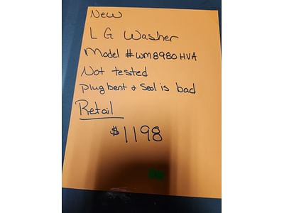 41 NEW LG Electronics 5.2 cu. ft. Large Capacity High Efficiency Stackable Smart Front Load Washer with TurboWash and Steam in Black Steel,model#WM8980HVA,plug bent,seal is bad