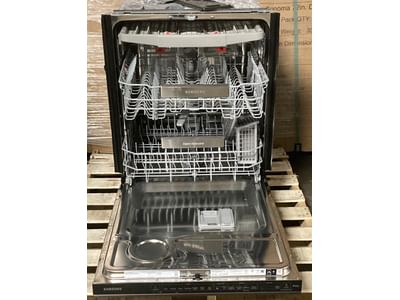 44 Samsung 24 in. Top Control Tall Tub ELECTRIC Dishwasher in Fingerprint Resistant Stainless Steel with AutoRelease, 3rd Rack DE80R995OUG,dent in front