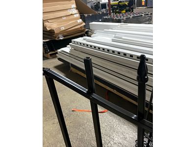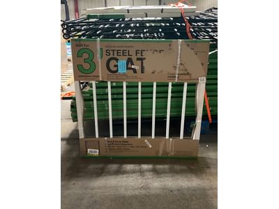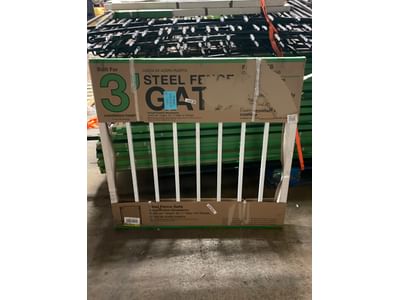 879 Vigoro Beaumont 40.4 in. H x 49.6 in. W (some damage) Black Steel 3-Rail Fence Panel