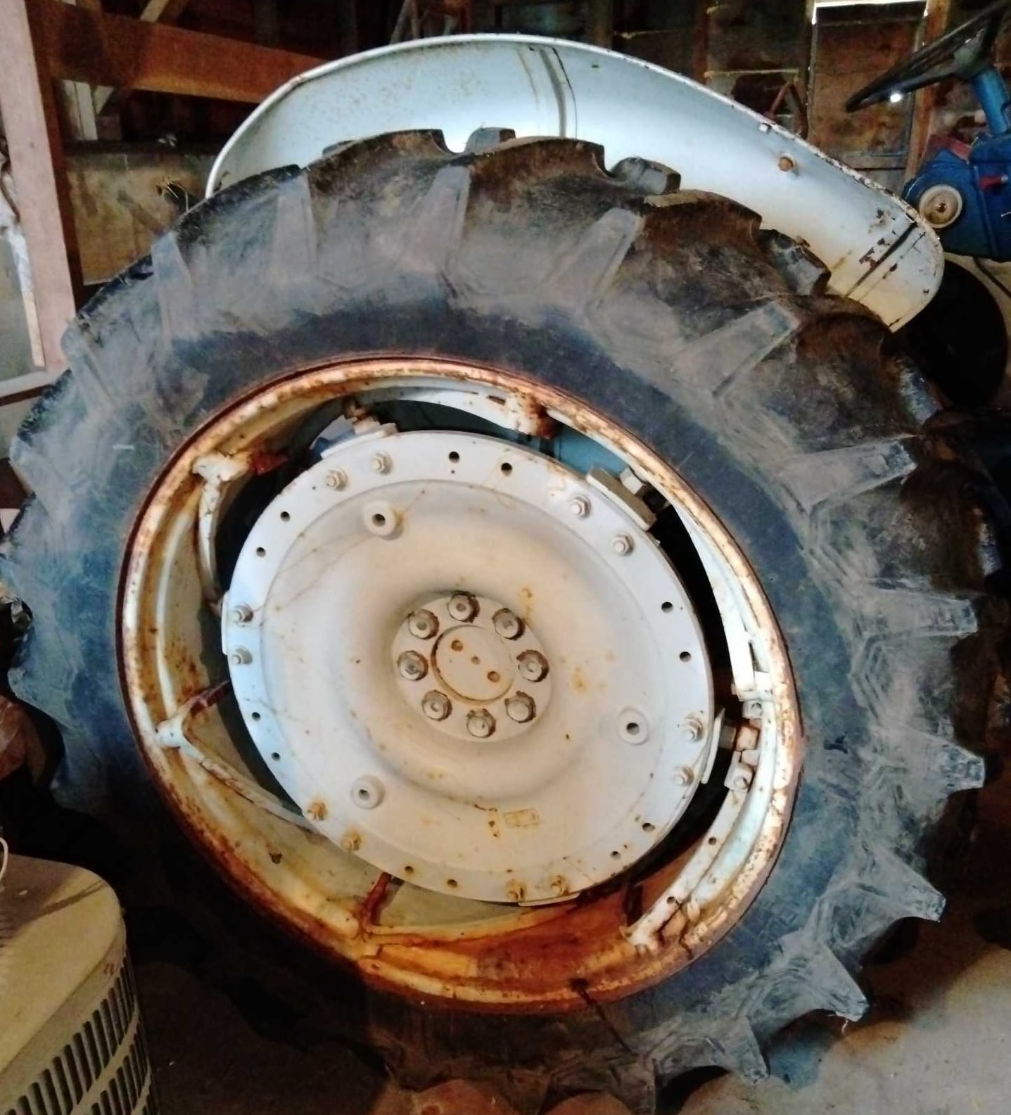 11 Ford 5000 diesel with John Deere 48 loader, 2390 hrs, select-o-speed, 15.5x38 spin out wheels, Runs