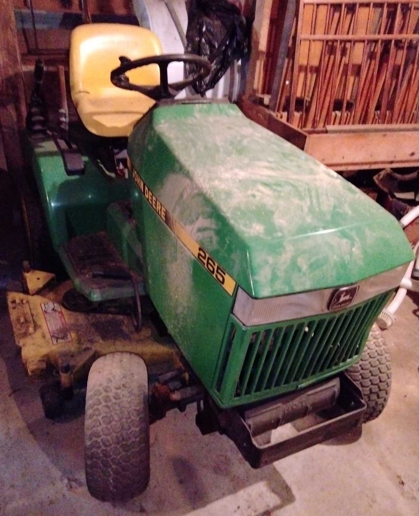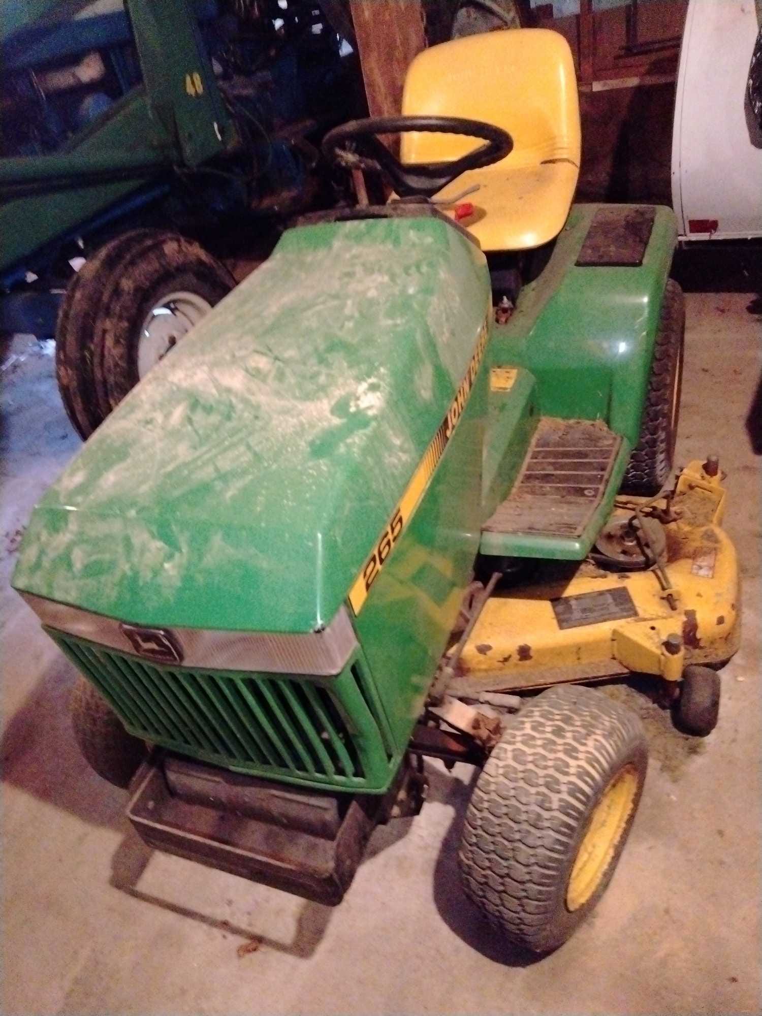 12 John Deere 265 garden tractor 17hp gas - unknown condition - engine is very tight, turned a little