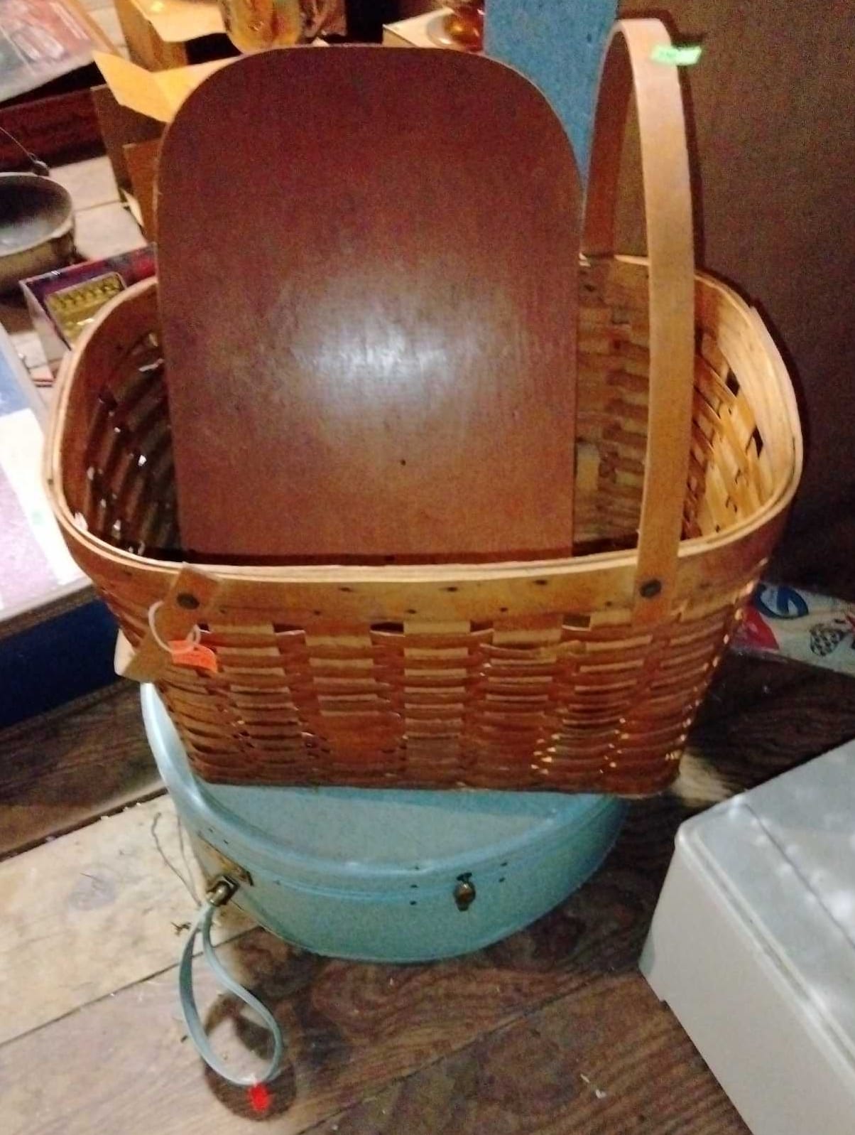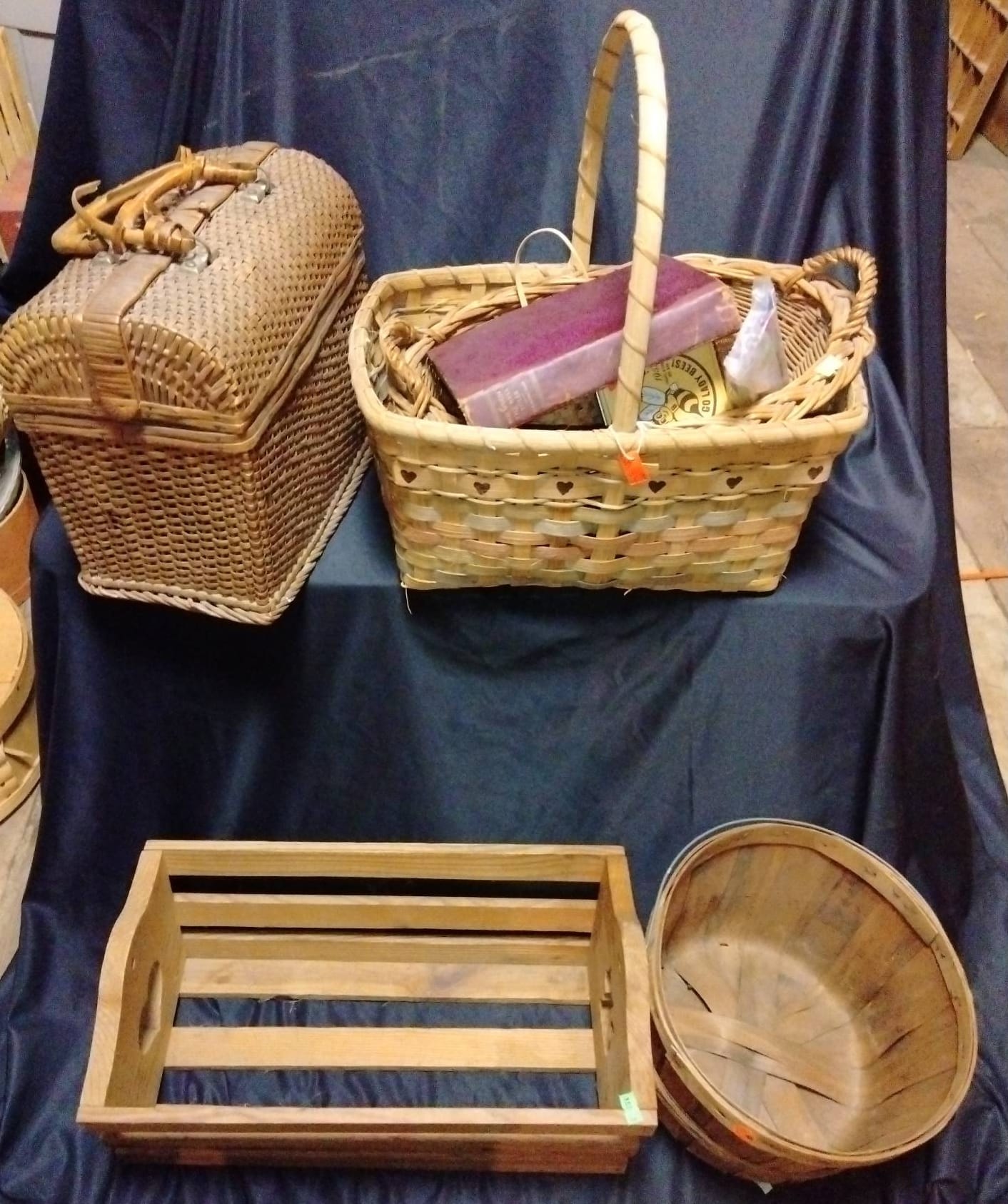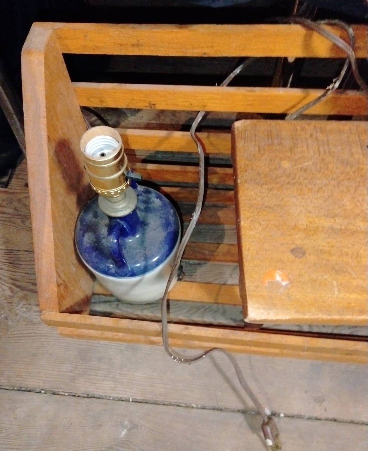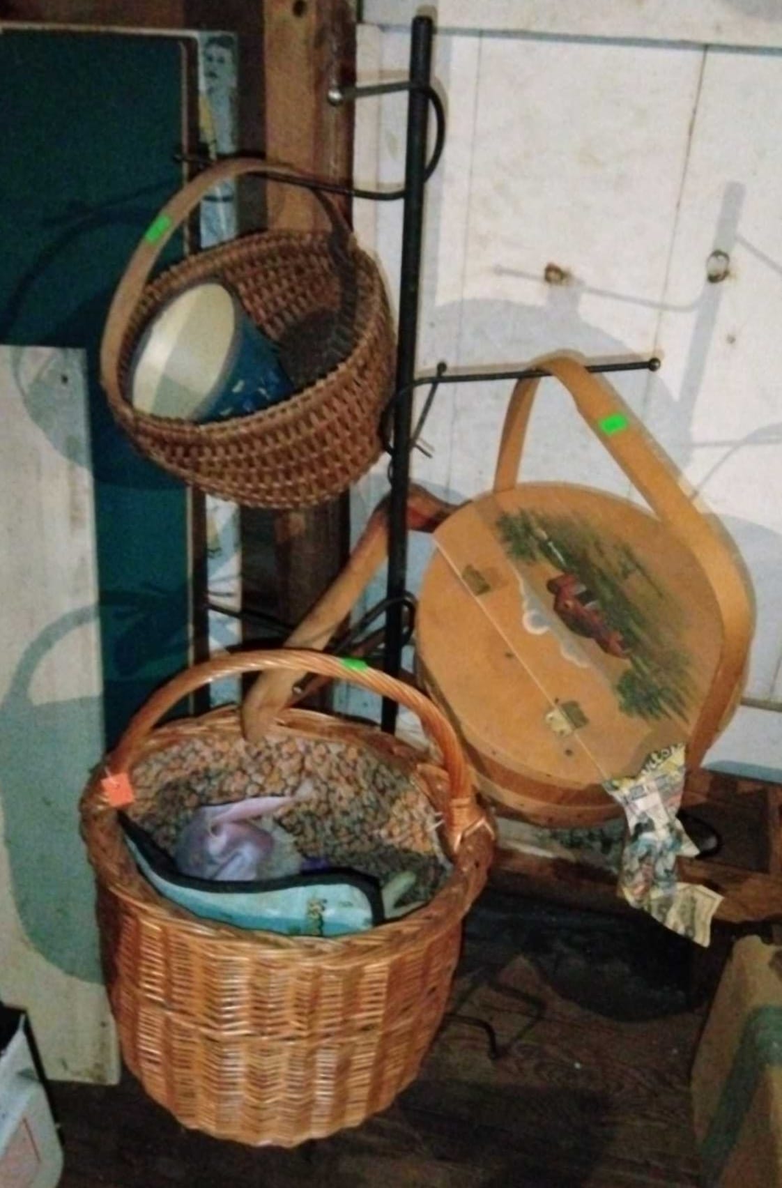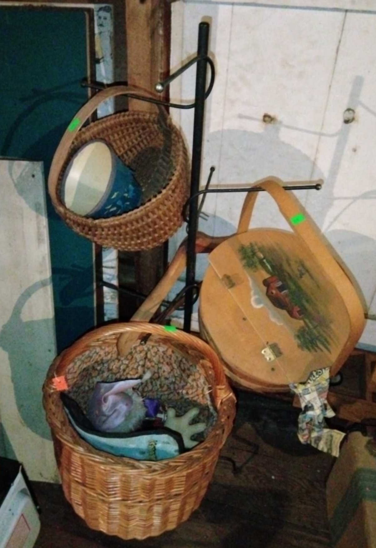 260 Wood tote, lunch box, basket, lamp, hat stand, miscellaneous