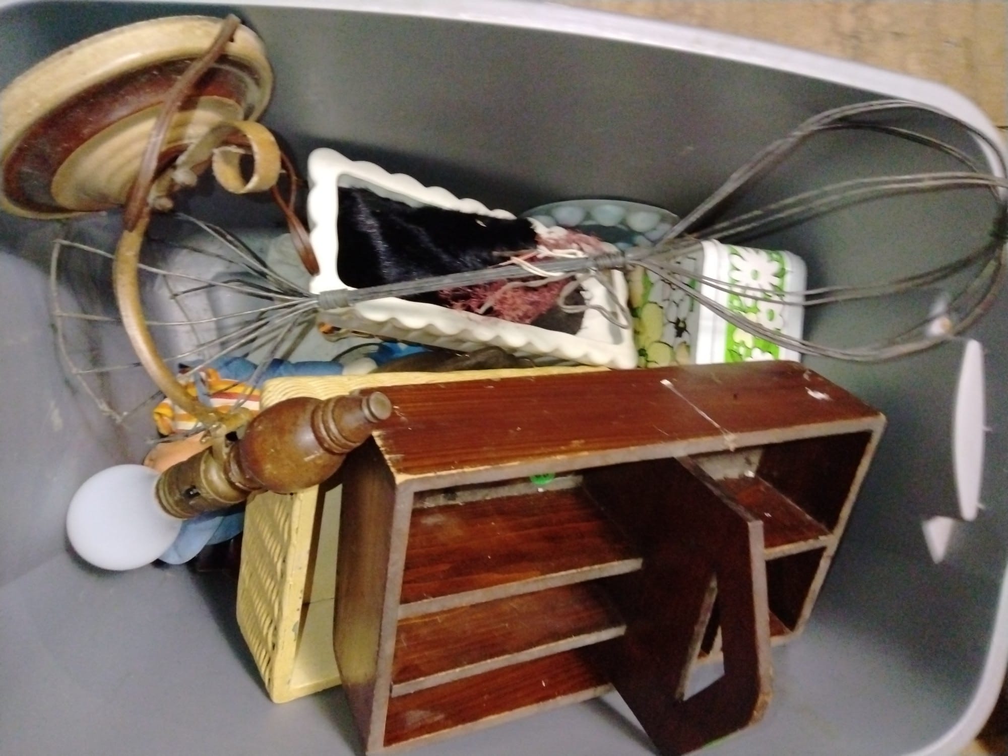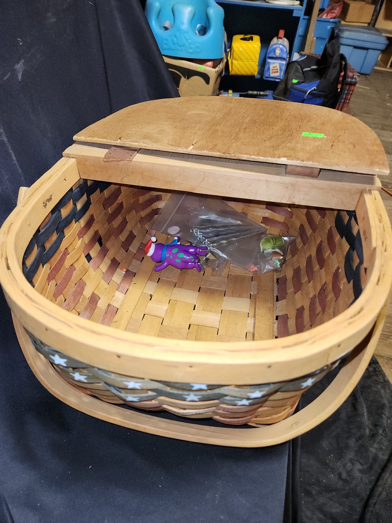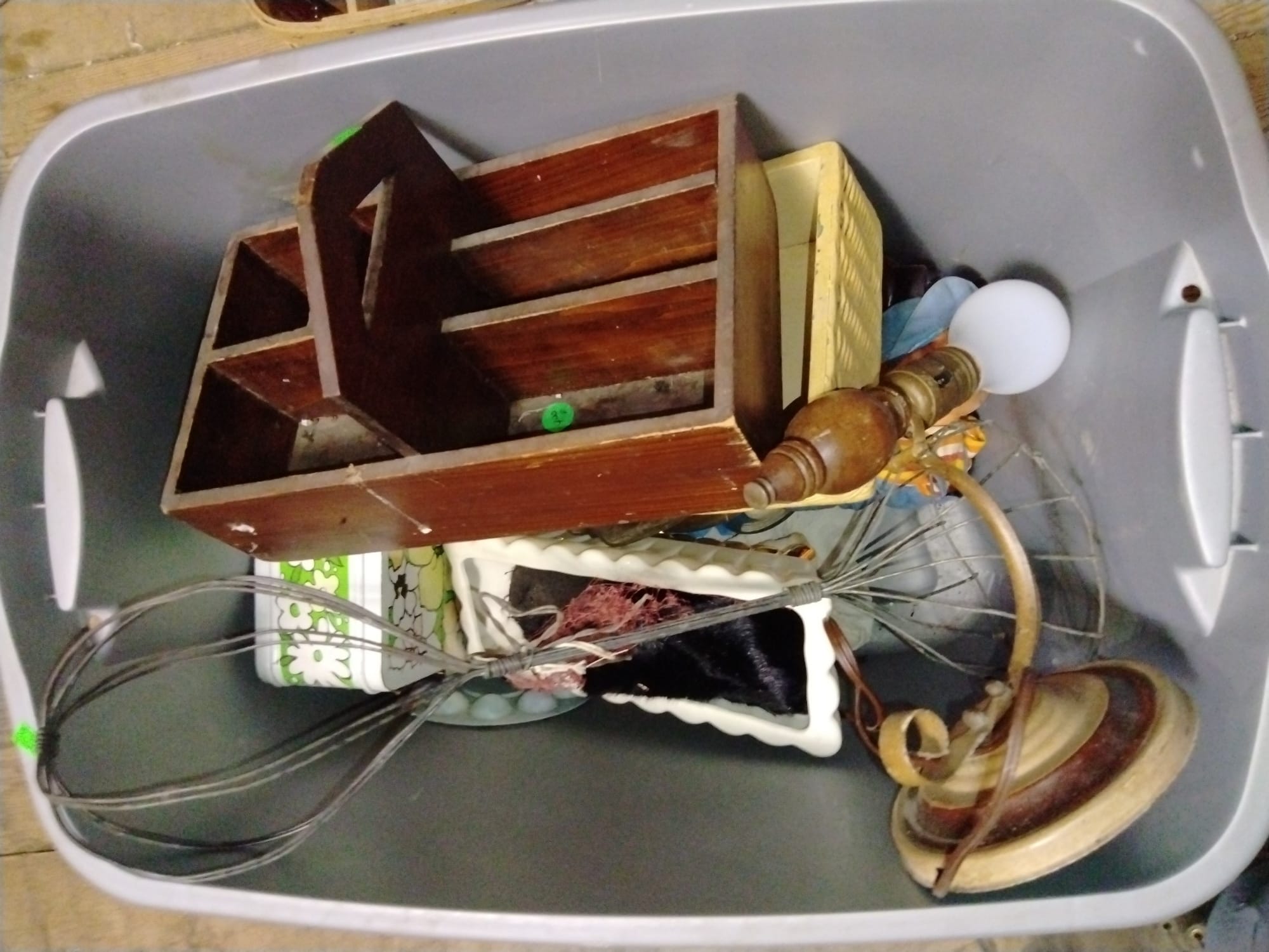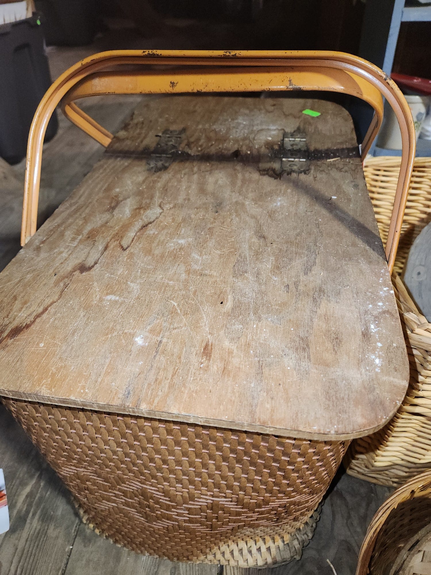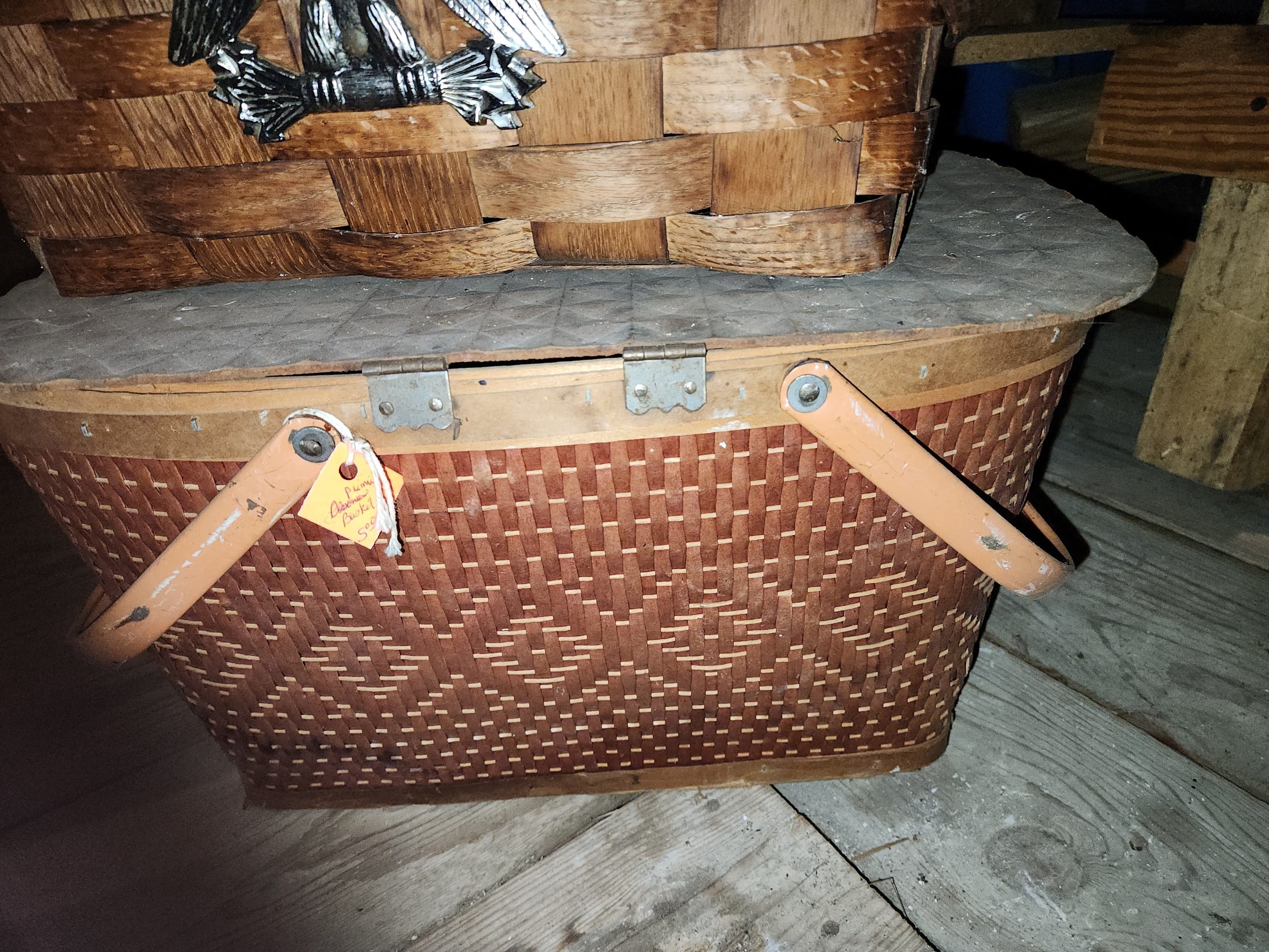 260 Wood tote, lunch box, basket, lamp, hat stand, miscellaneous