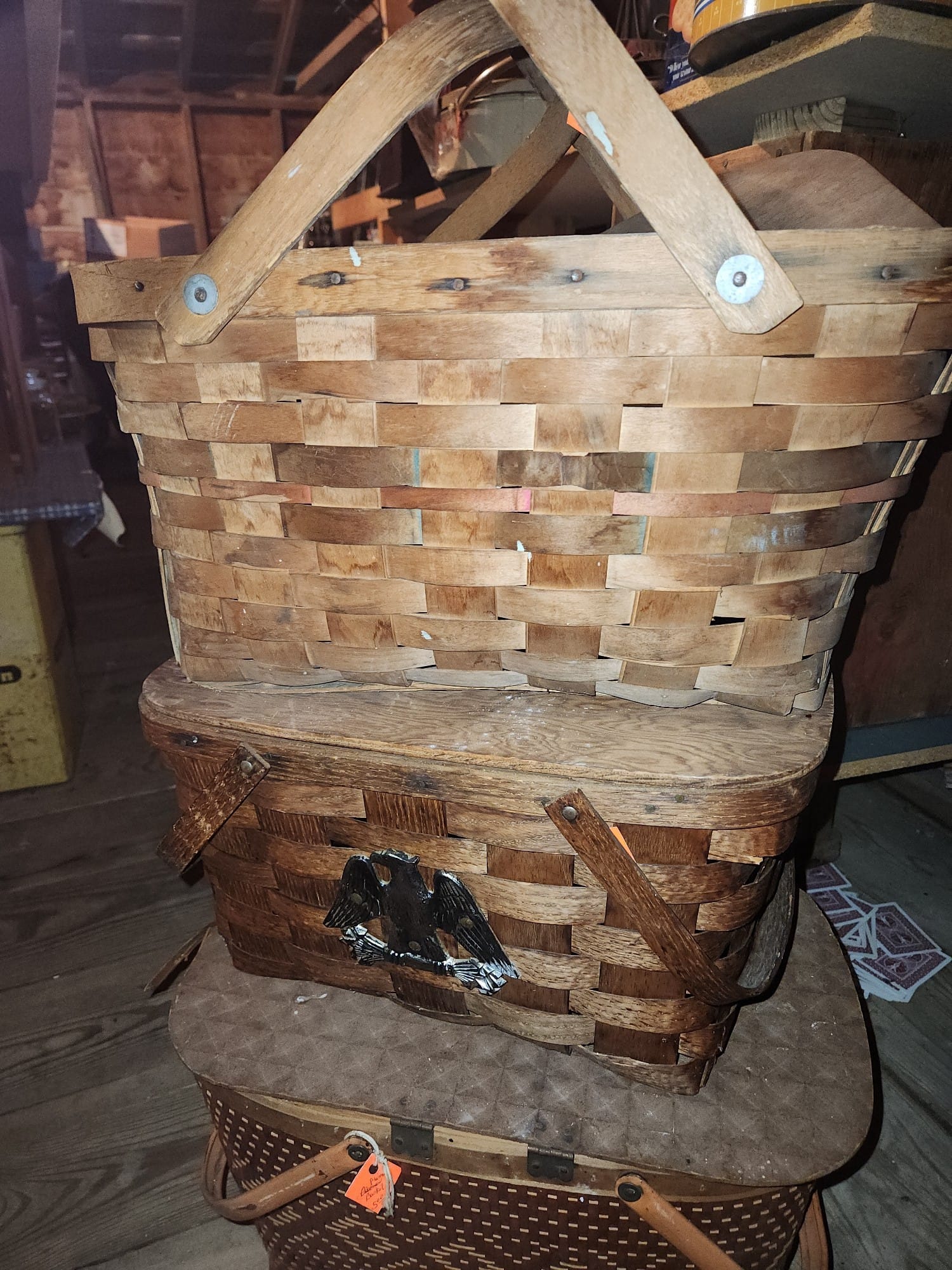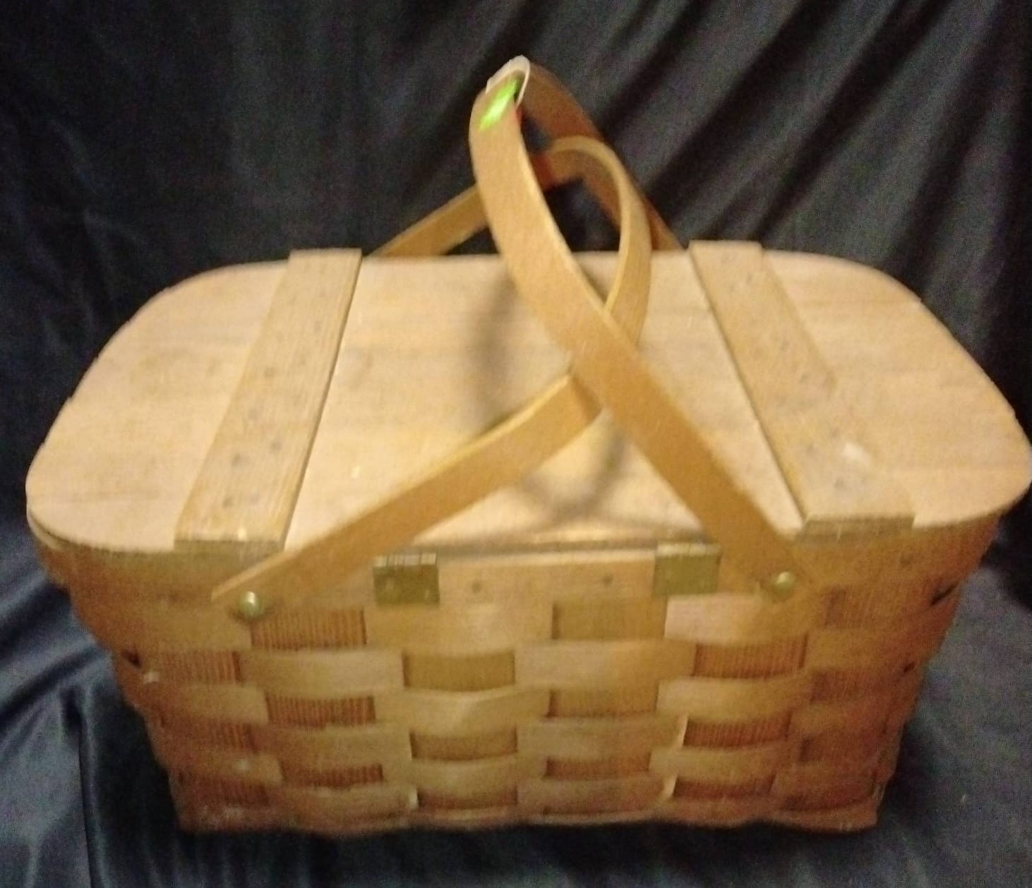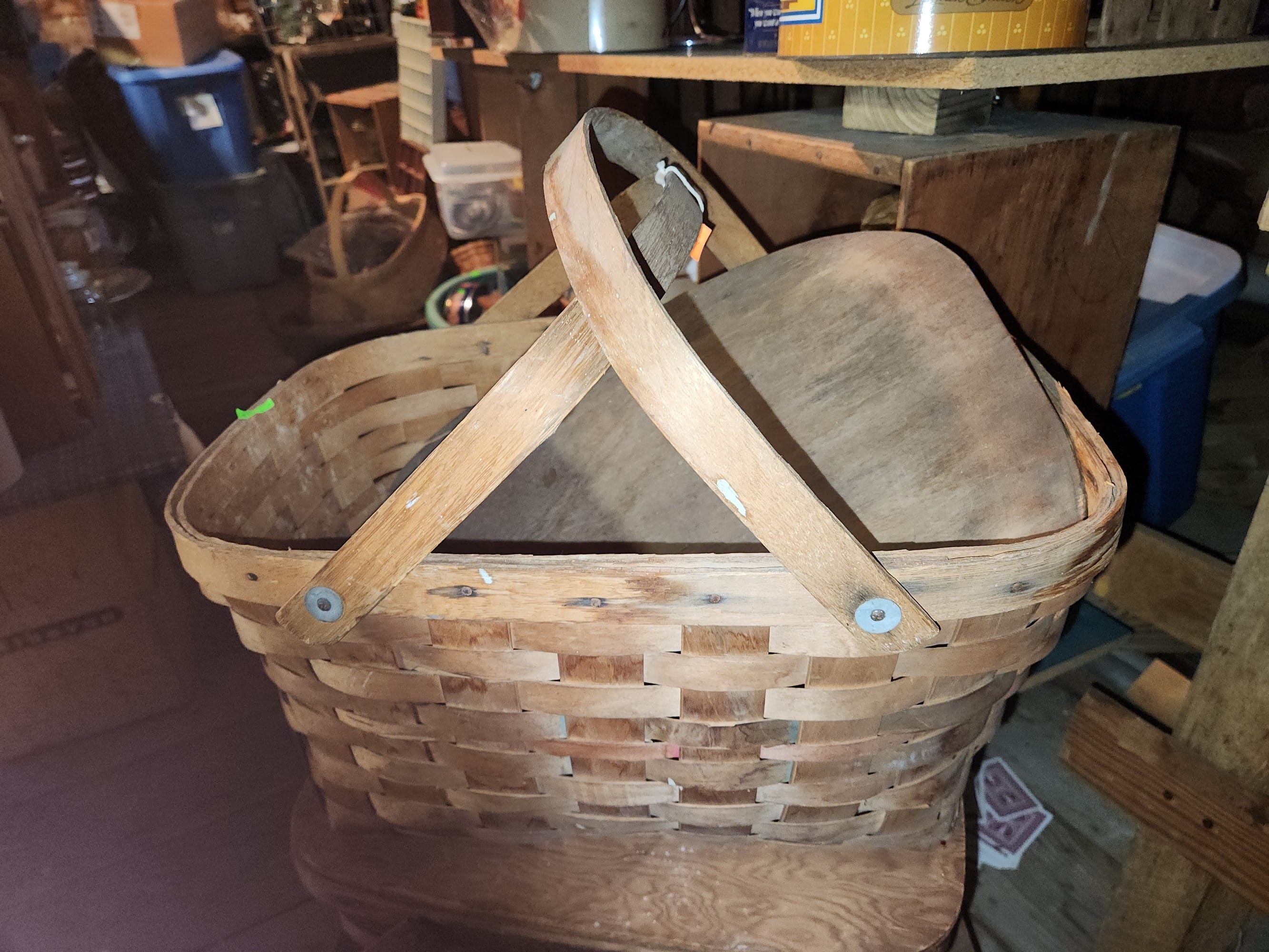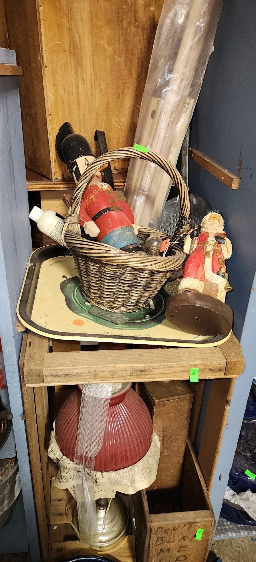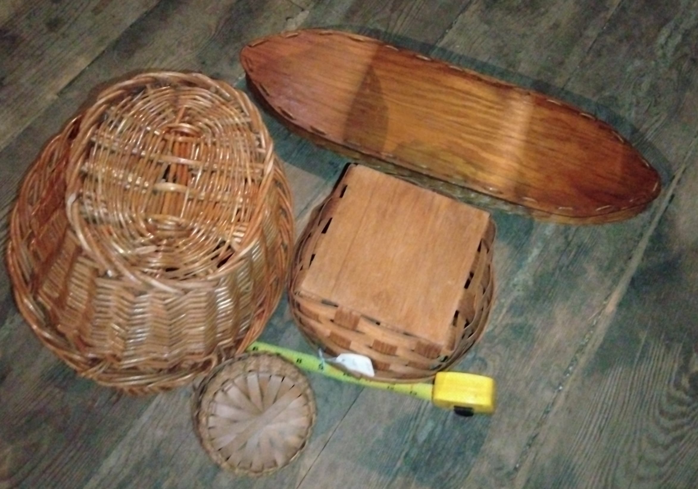 260 Wood tote, lunch box, basket, lamp, hat stand, miscellaneous