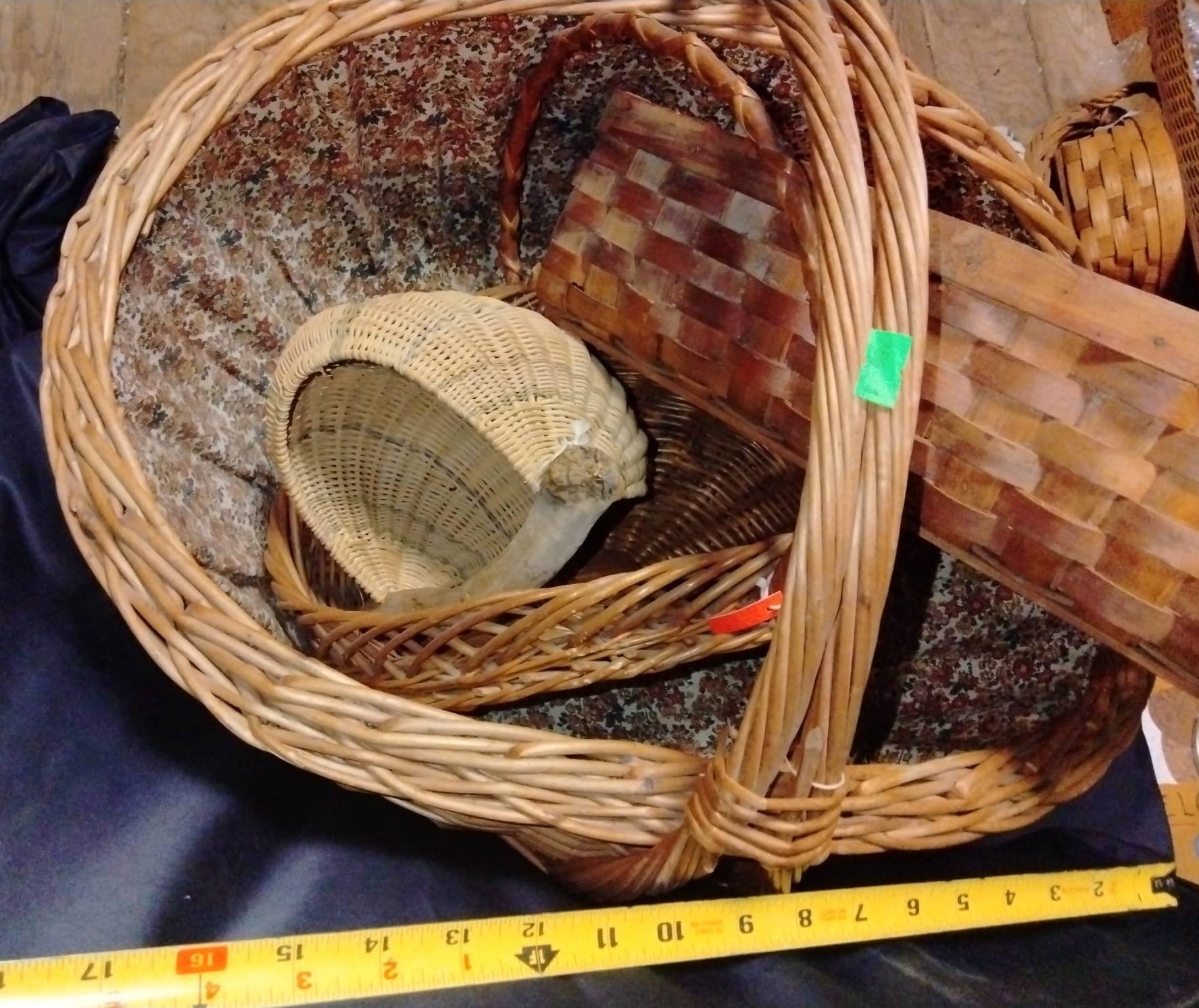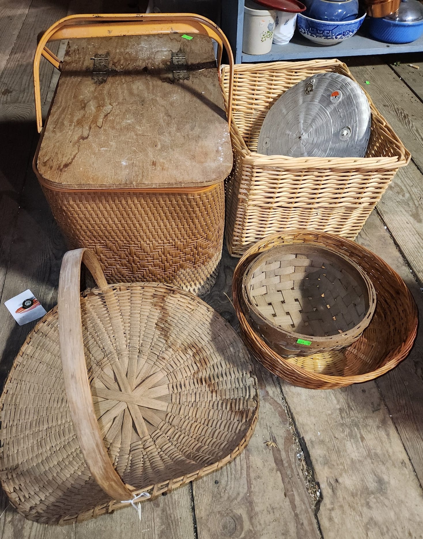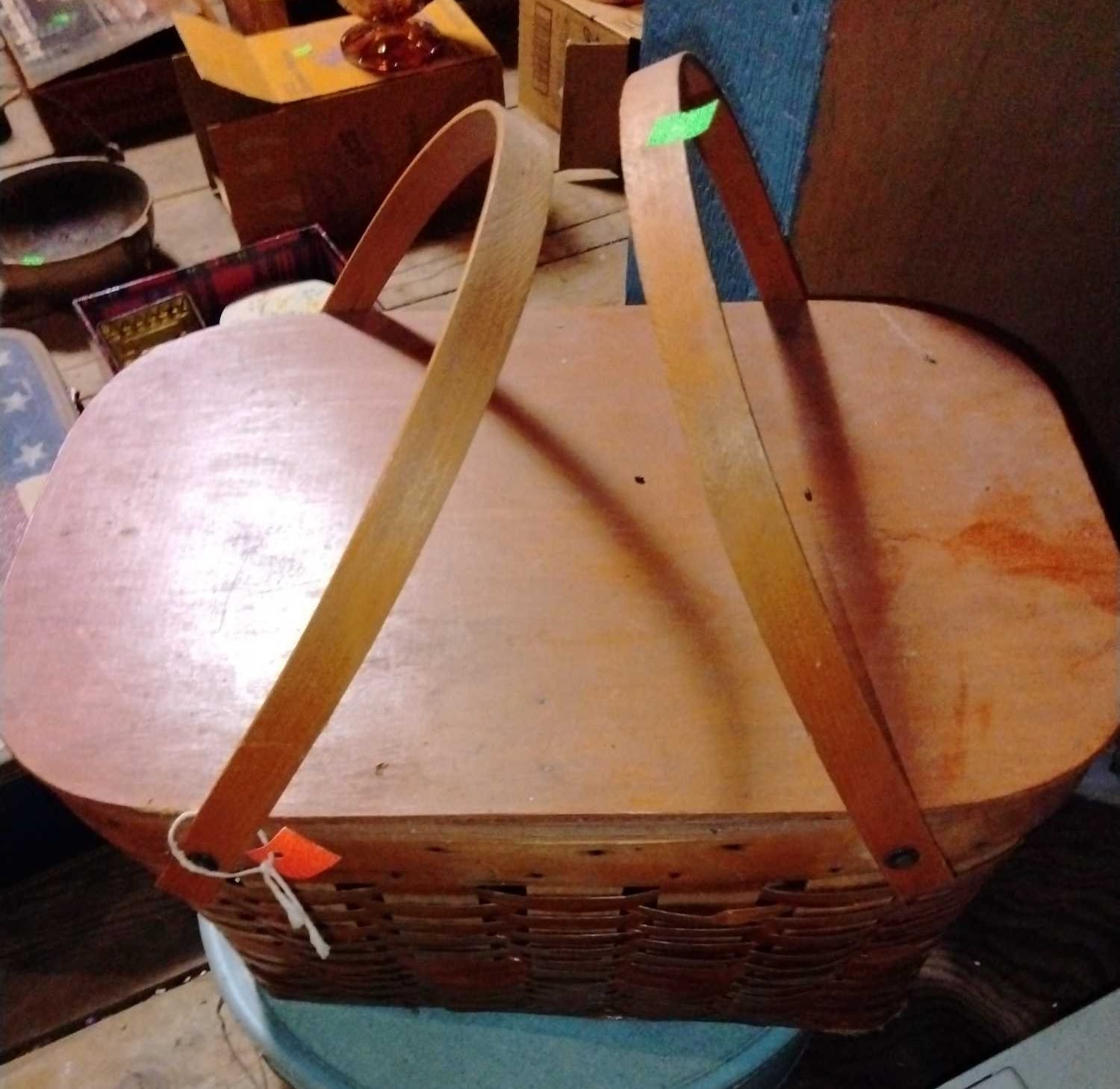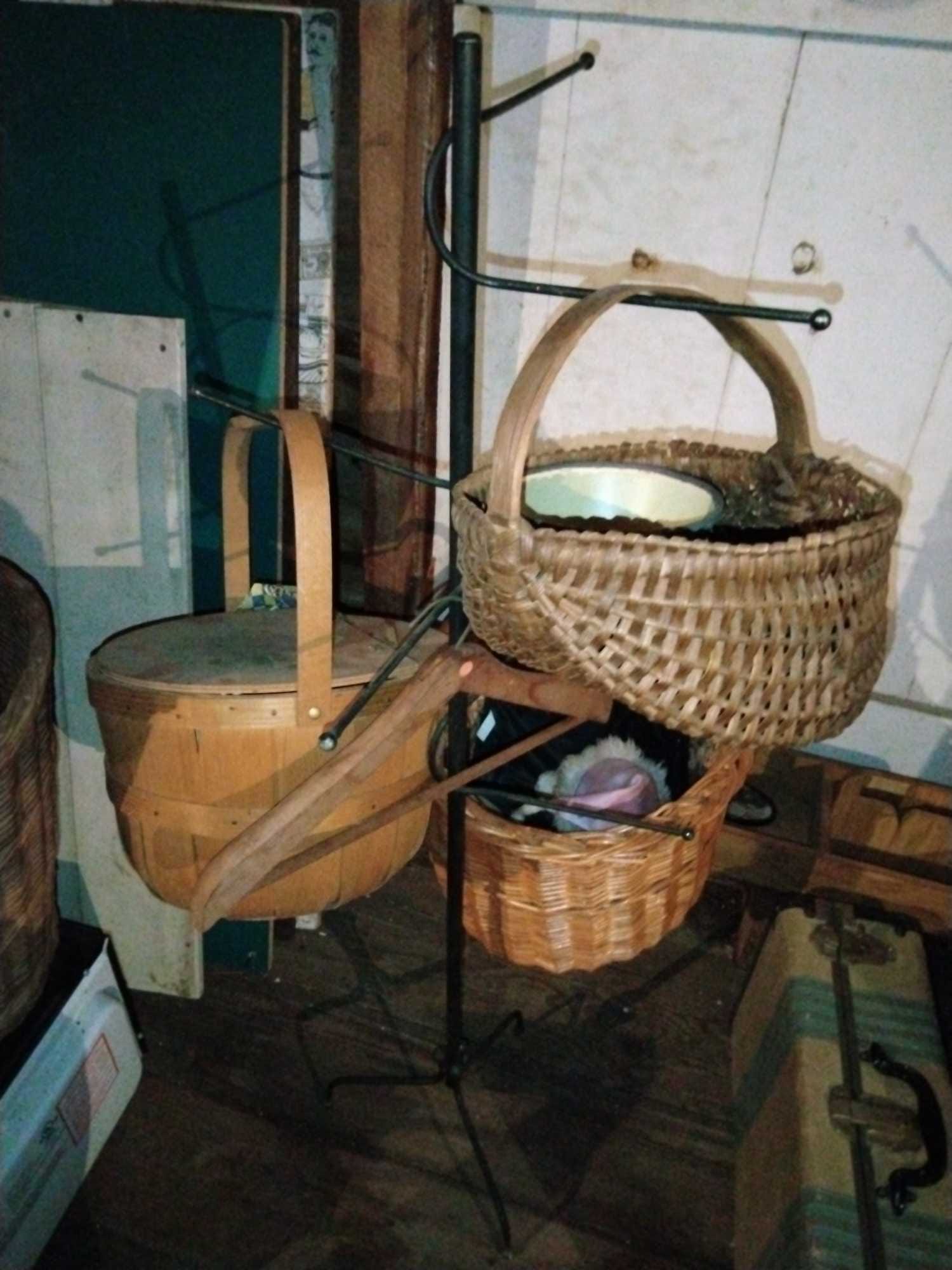 260 Wood tote, lunch box, basket, lamp, hat stand, miscellaneous