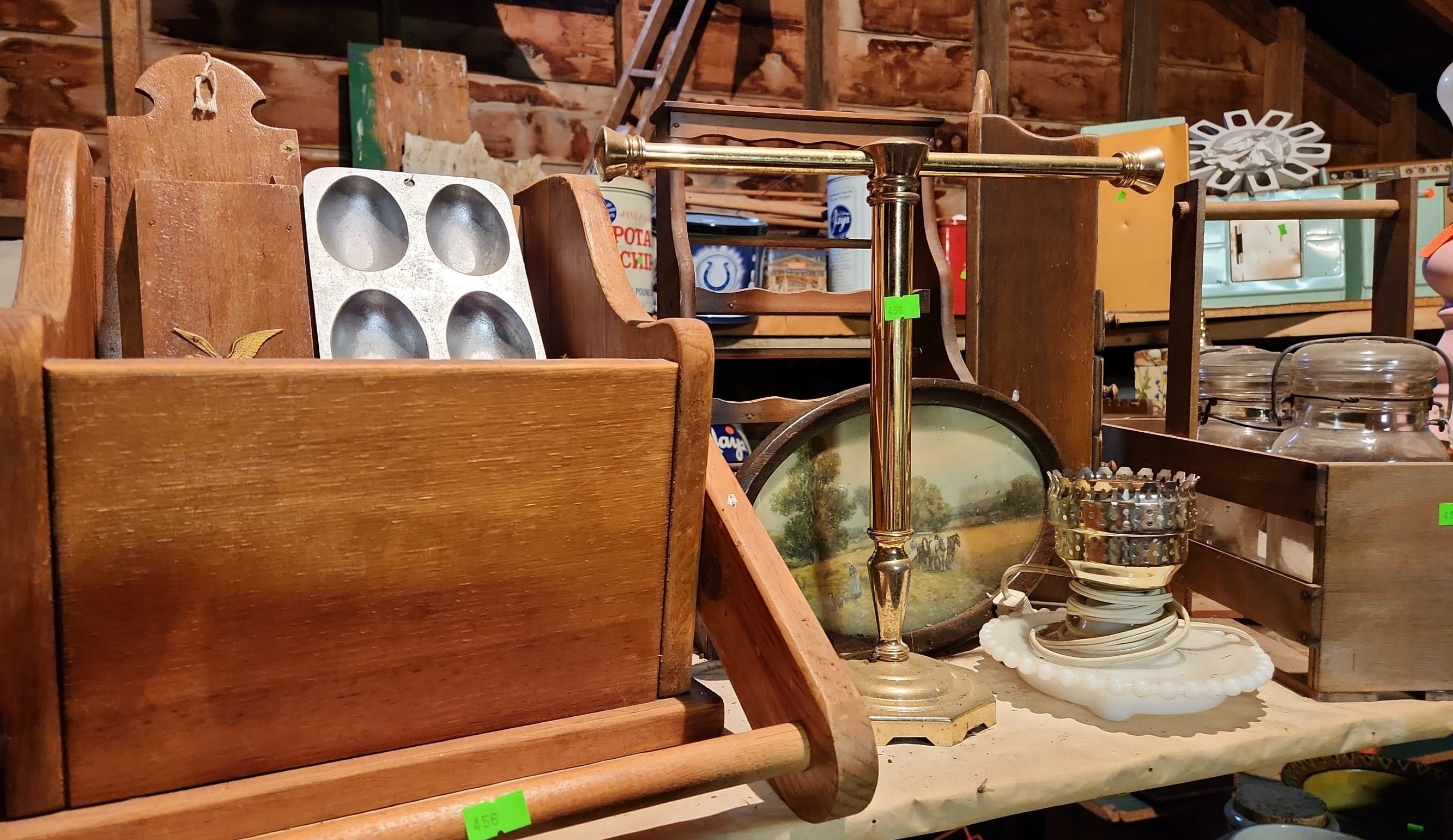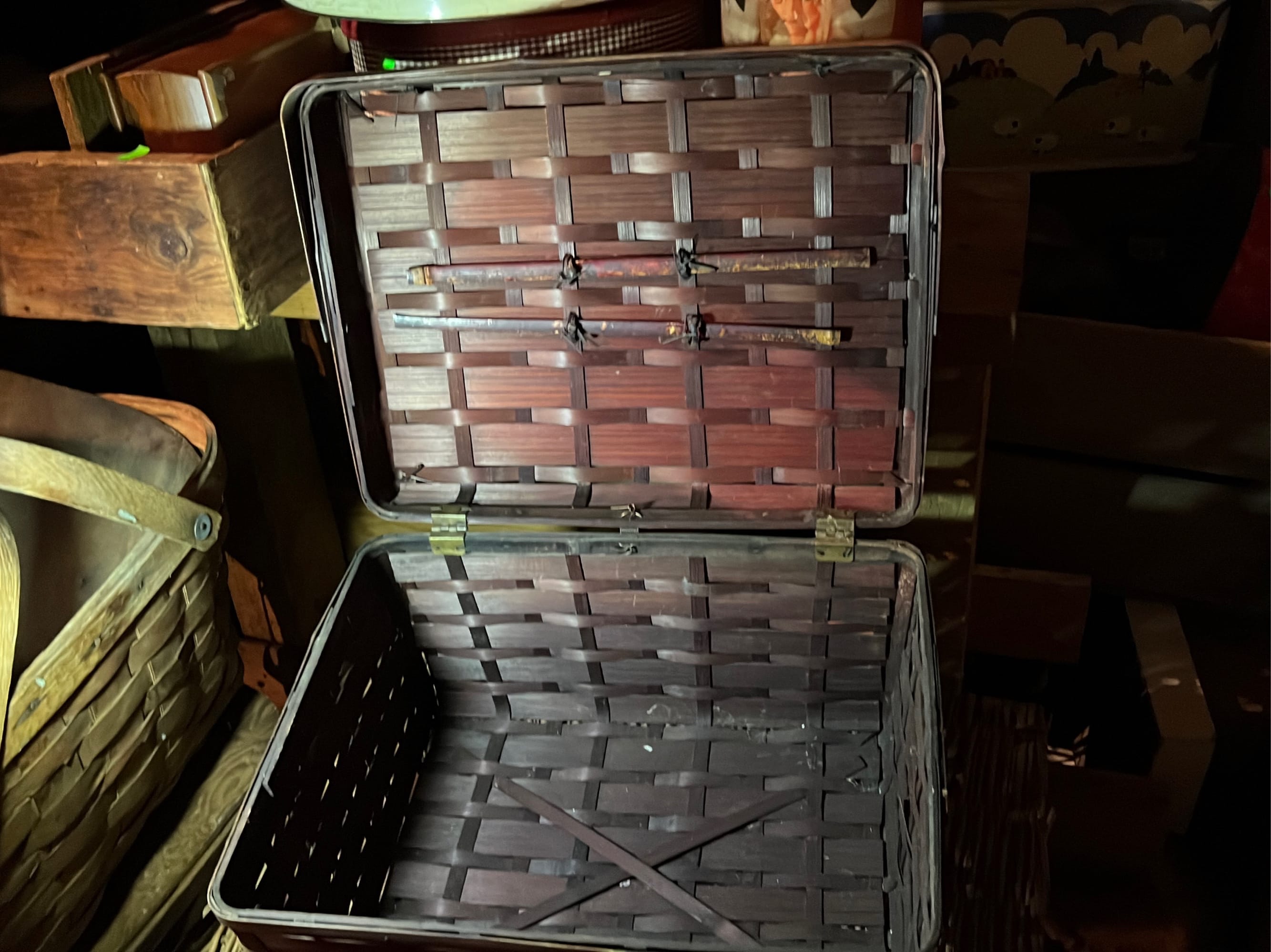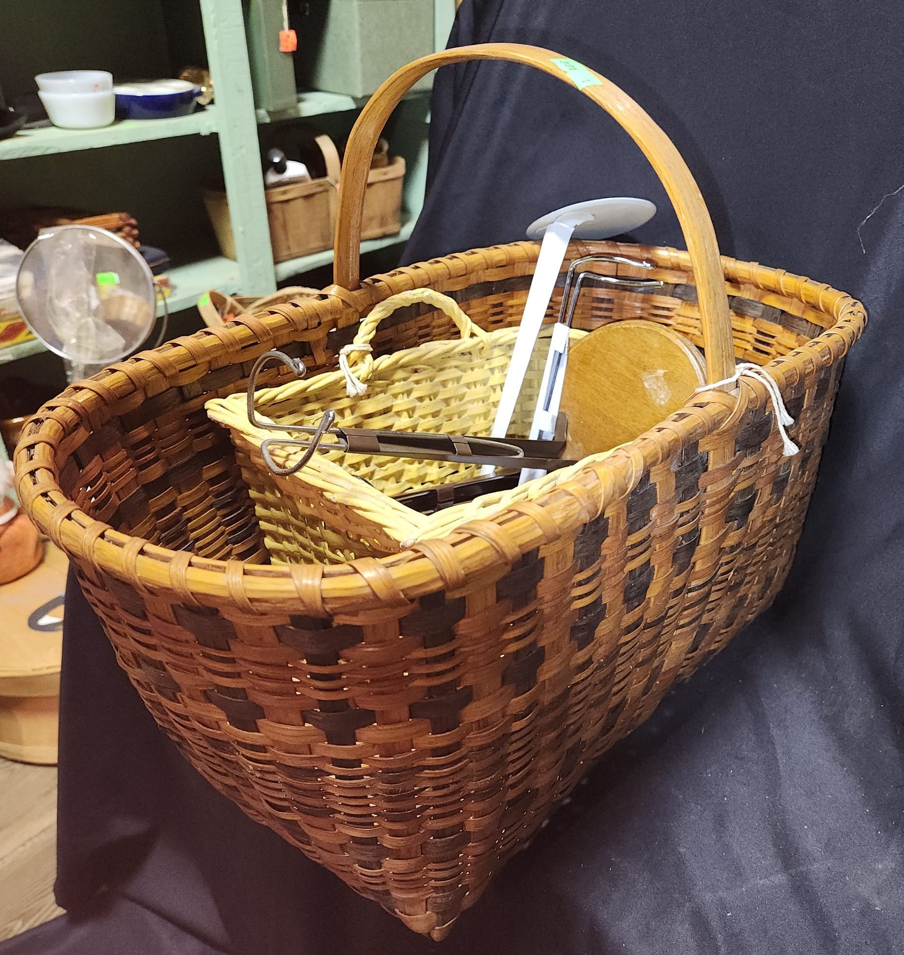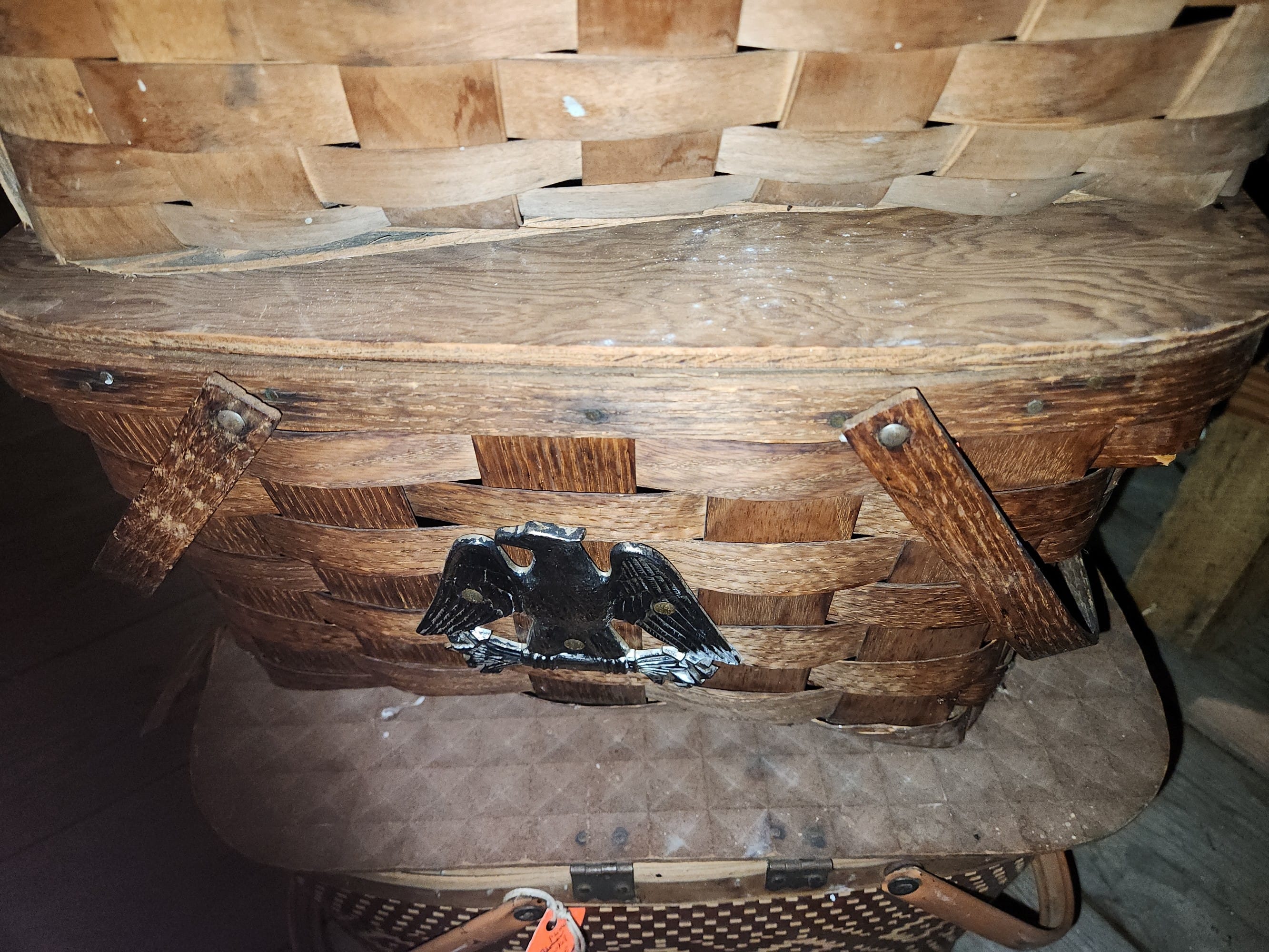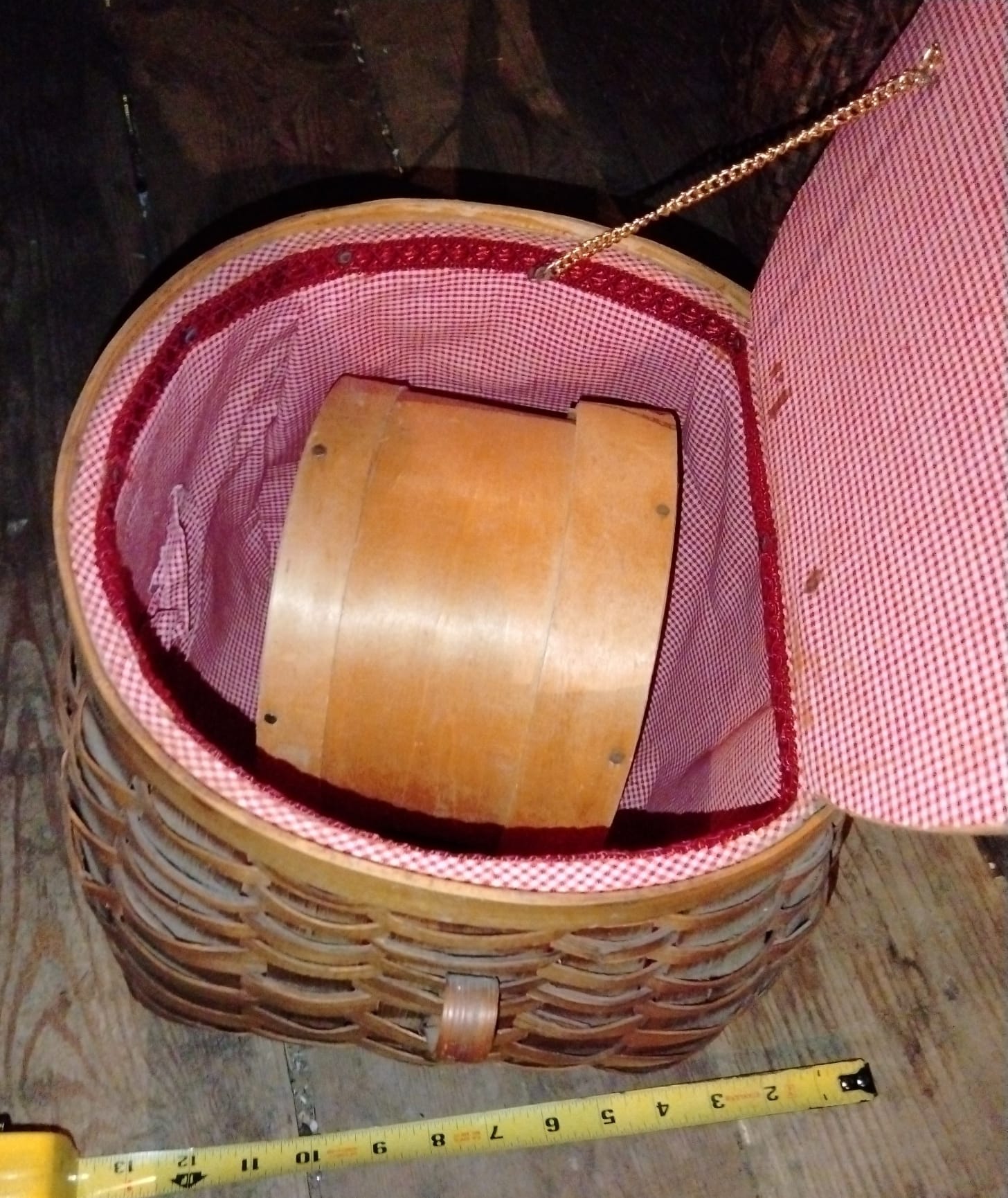 260 Wood tote, lunch box, basket, lamp, hat stand, miscellaneous