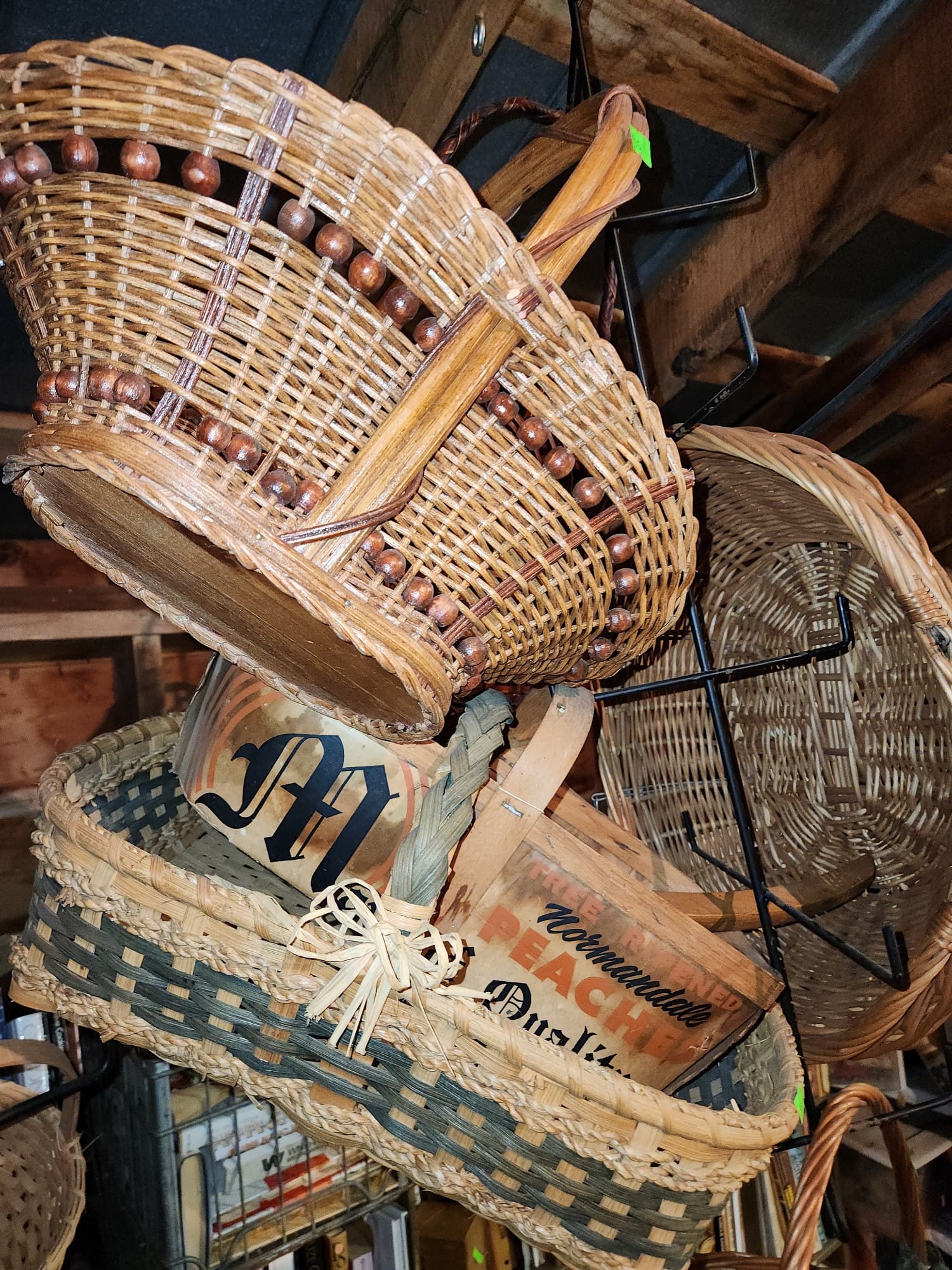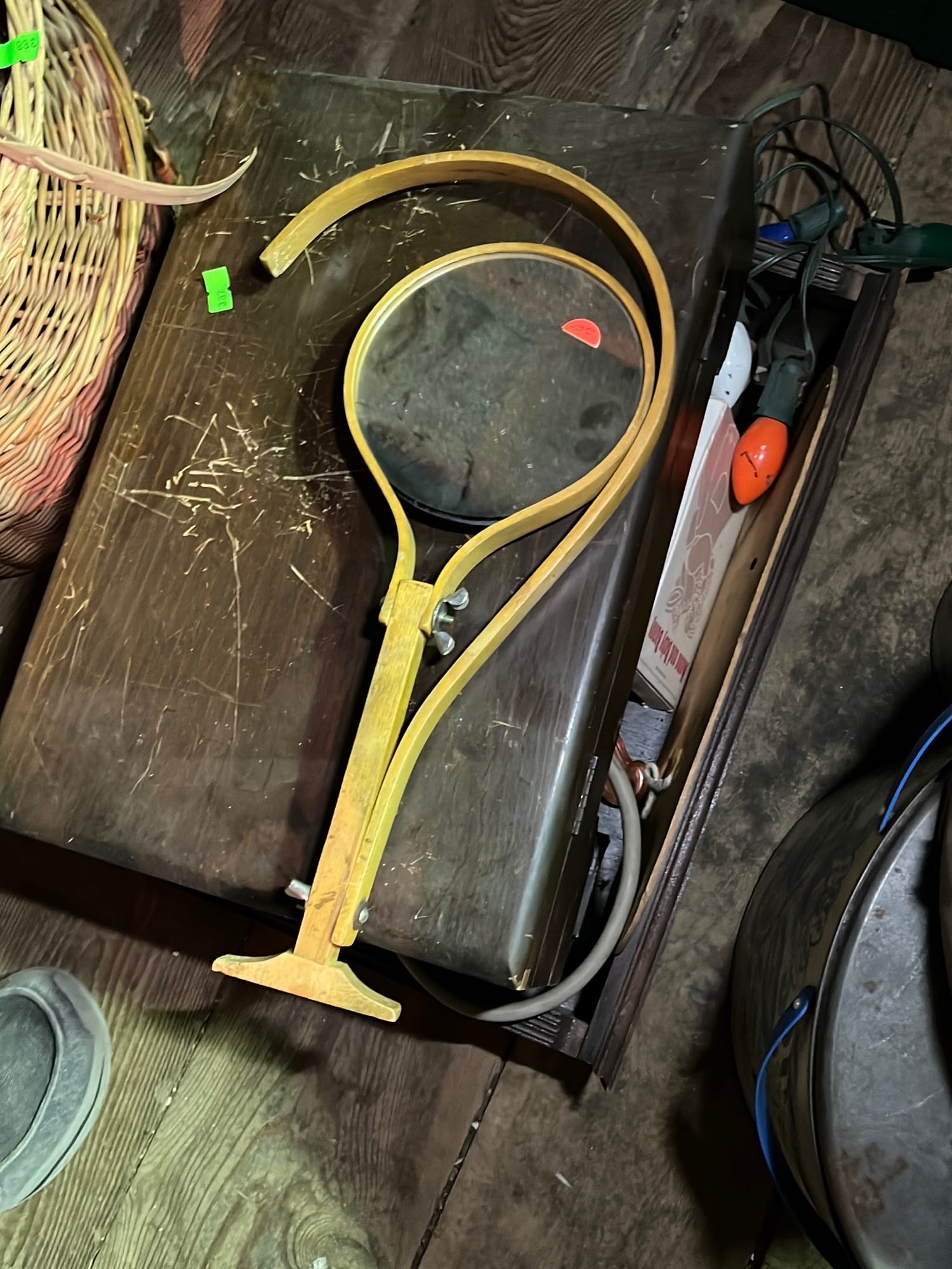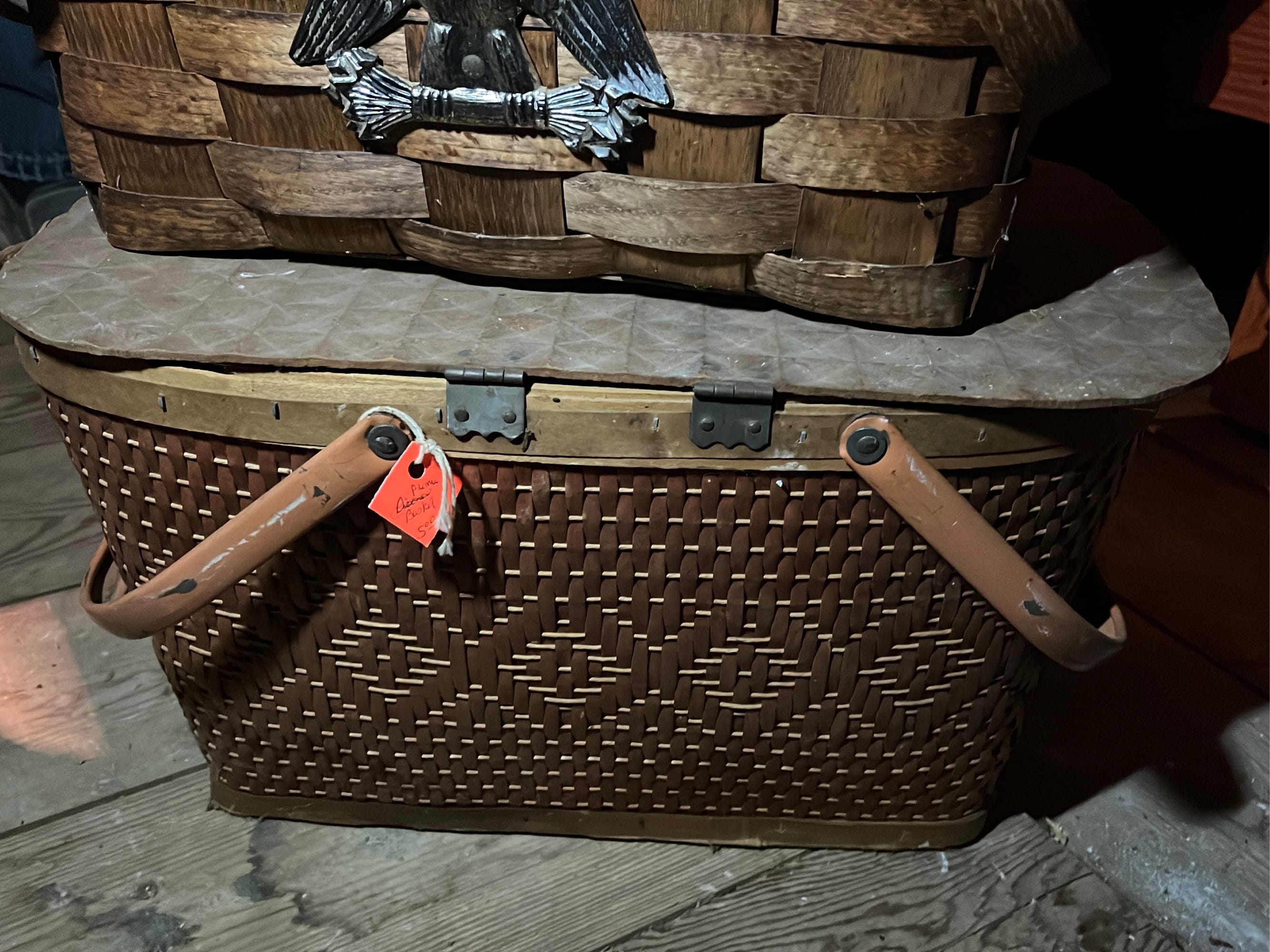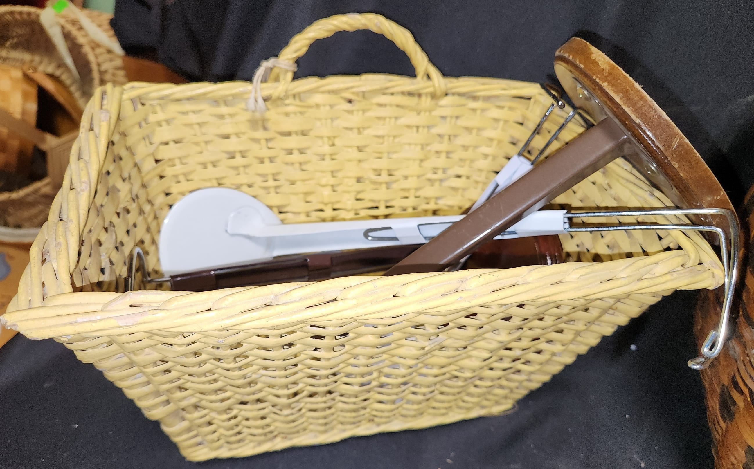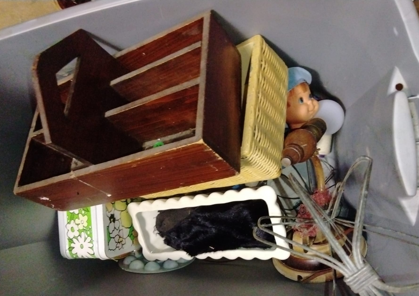 260 Wood tote, lunch box, basket, lamp, hat stand, miscellaneous