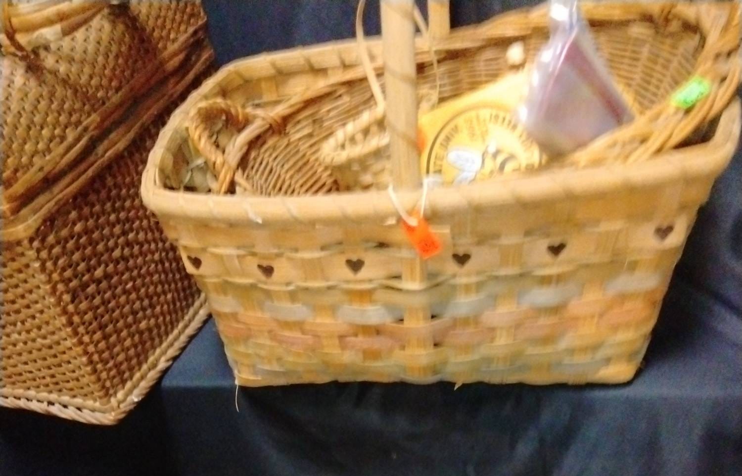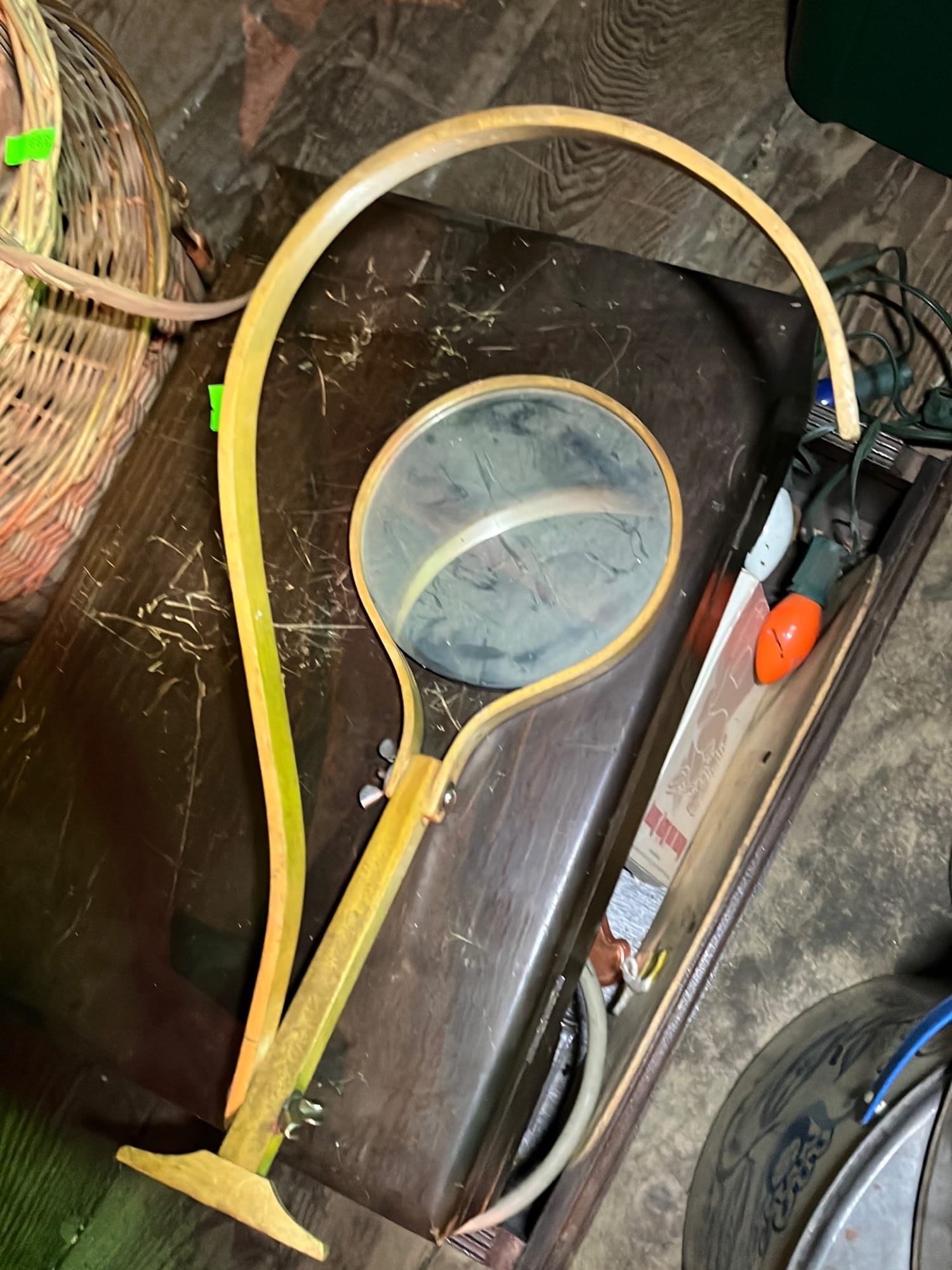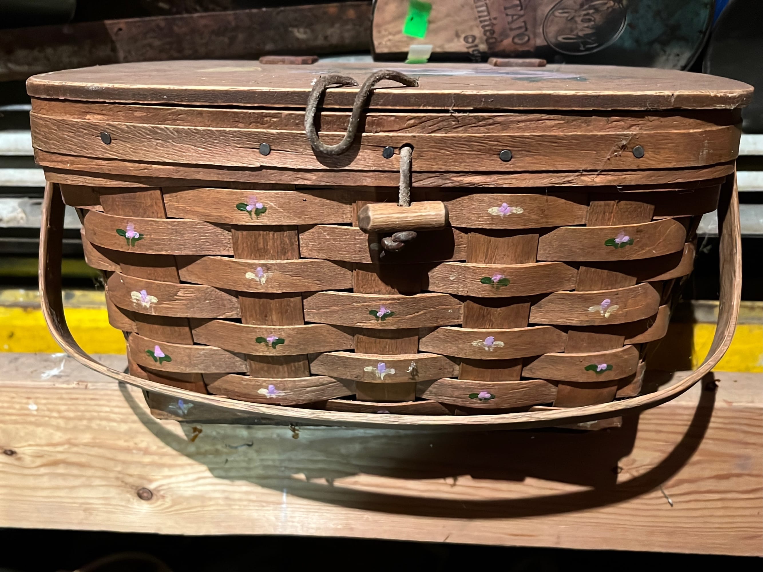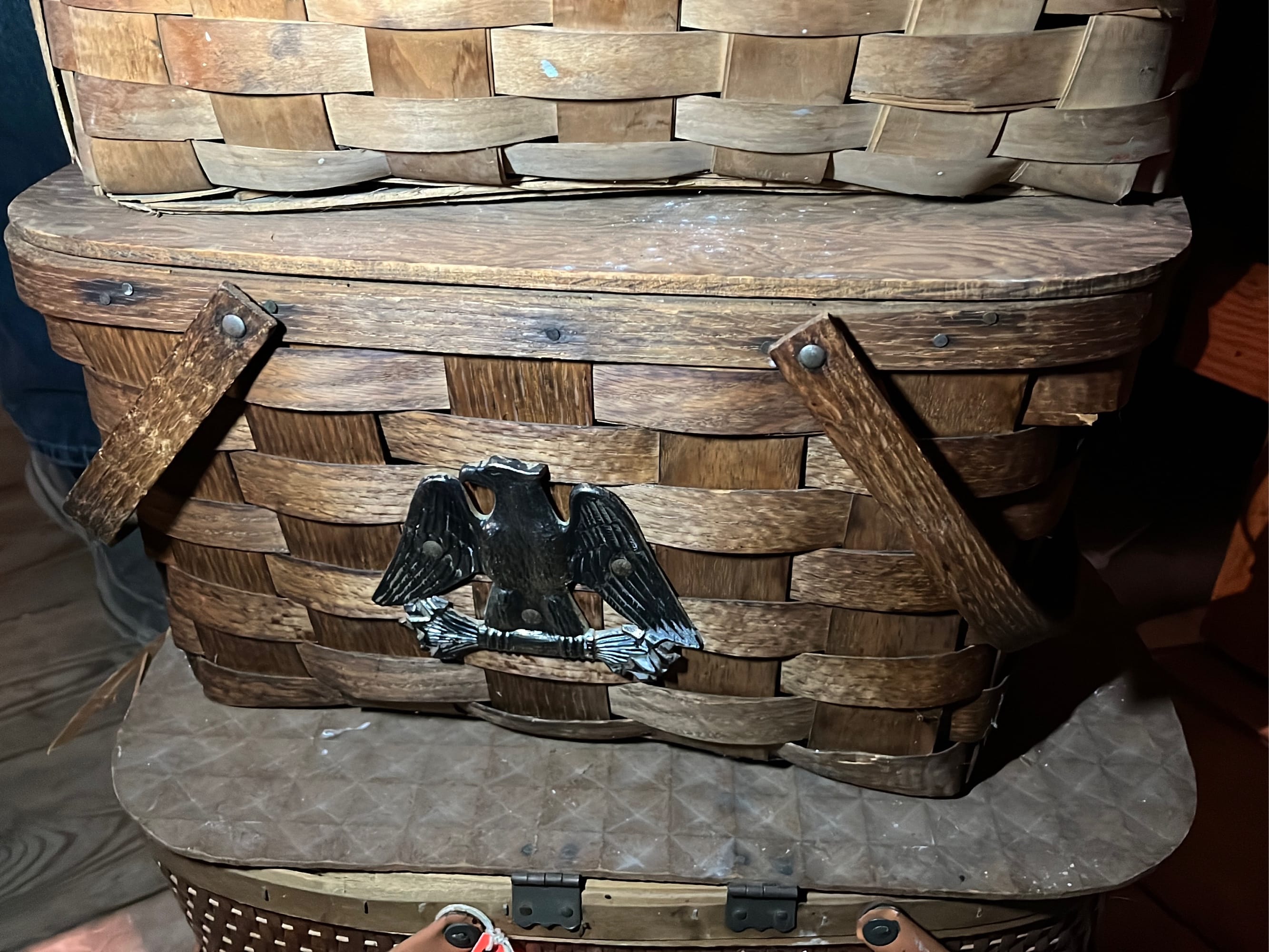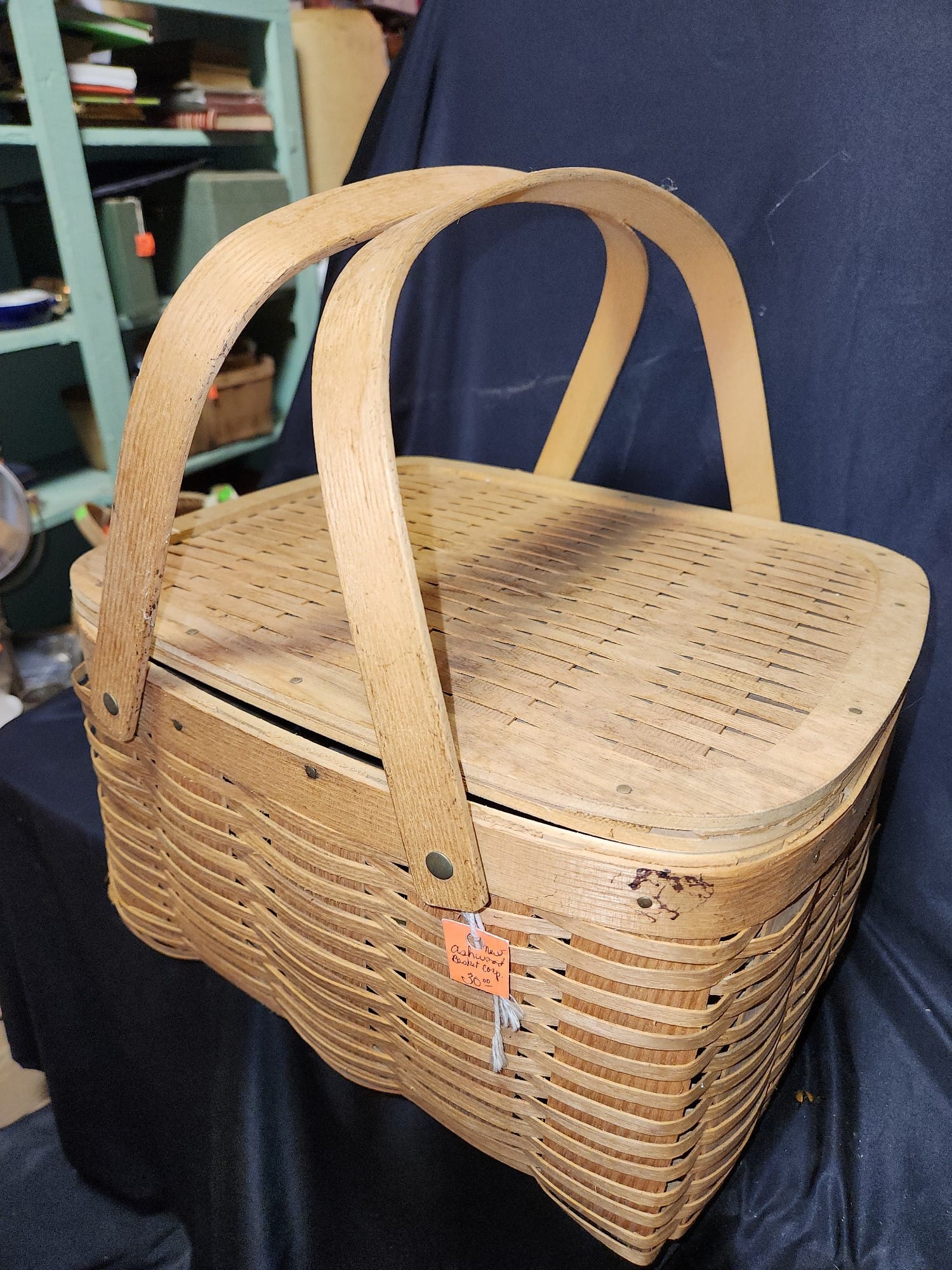 260 Wood tote, lunch box, basket, lamp, hat stand, miscellaneous