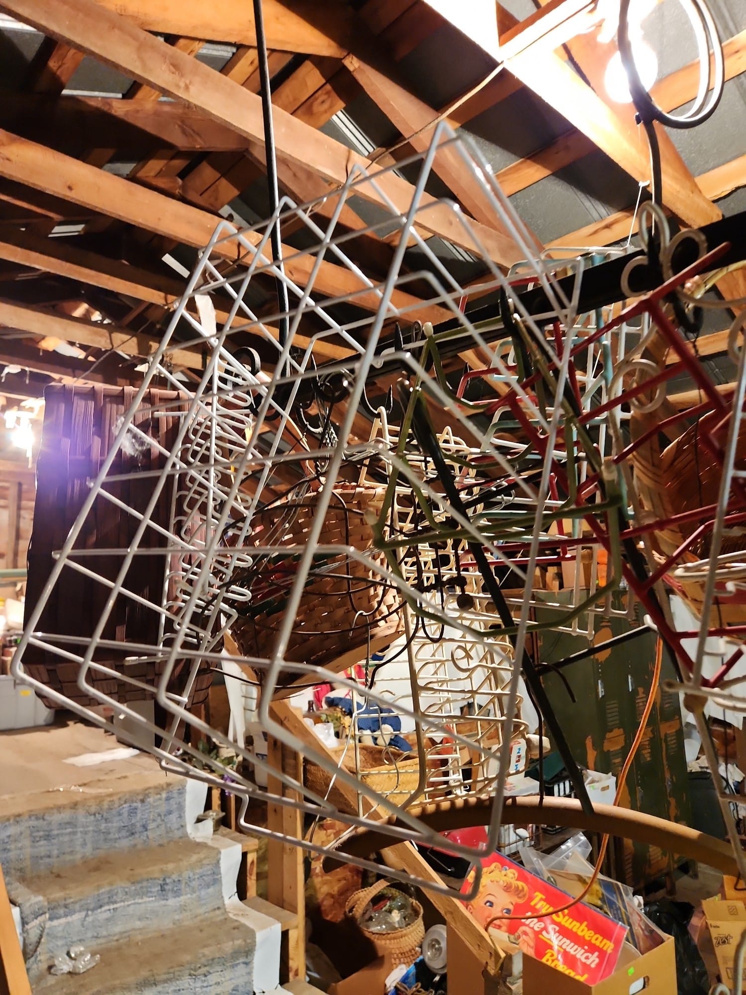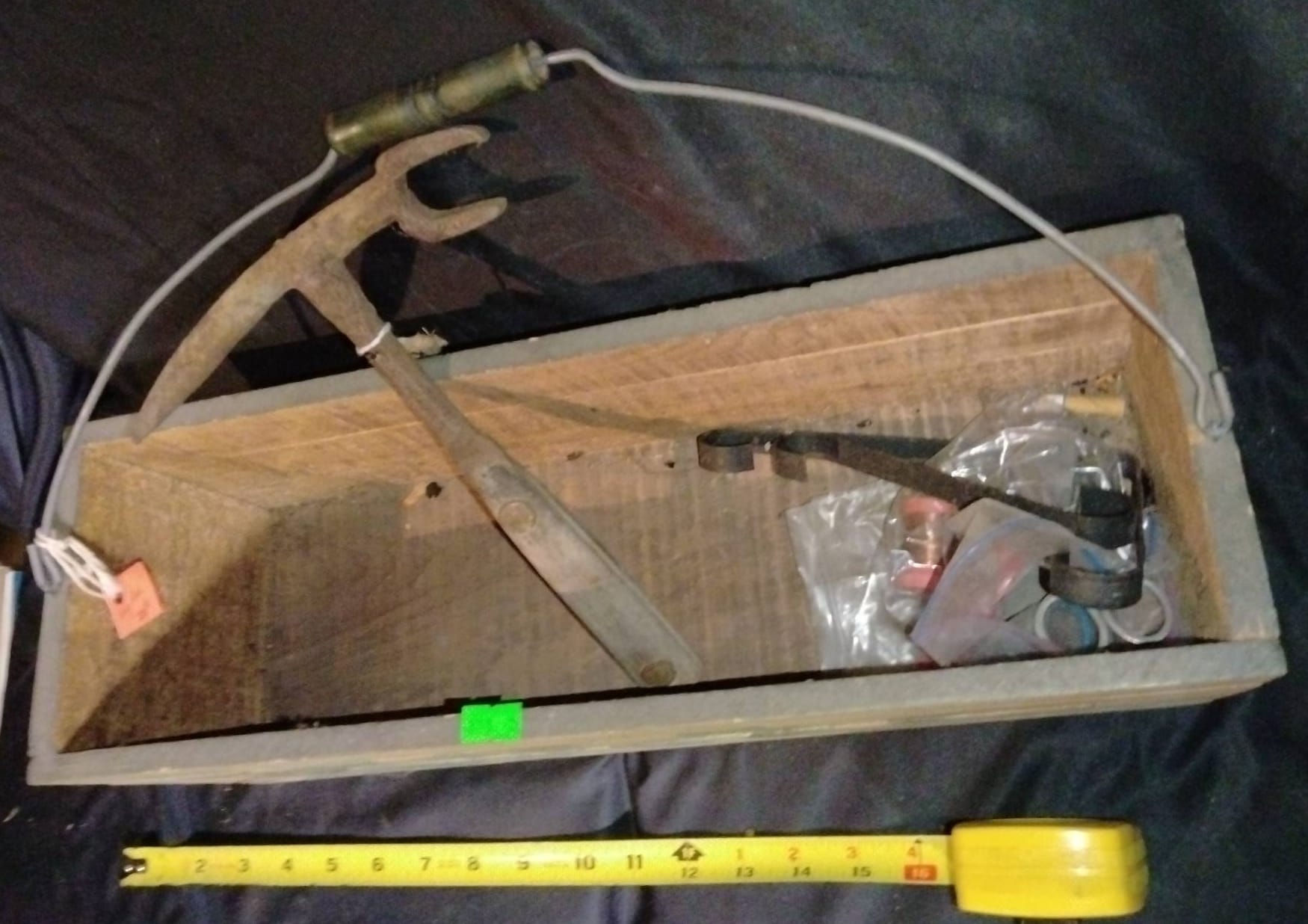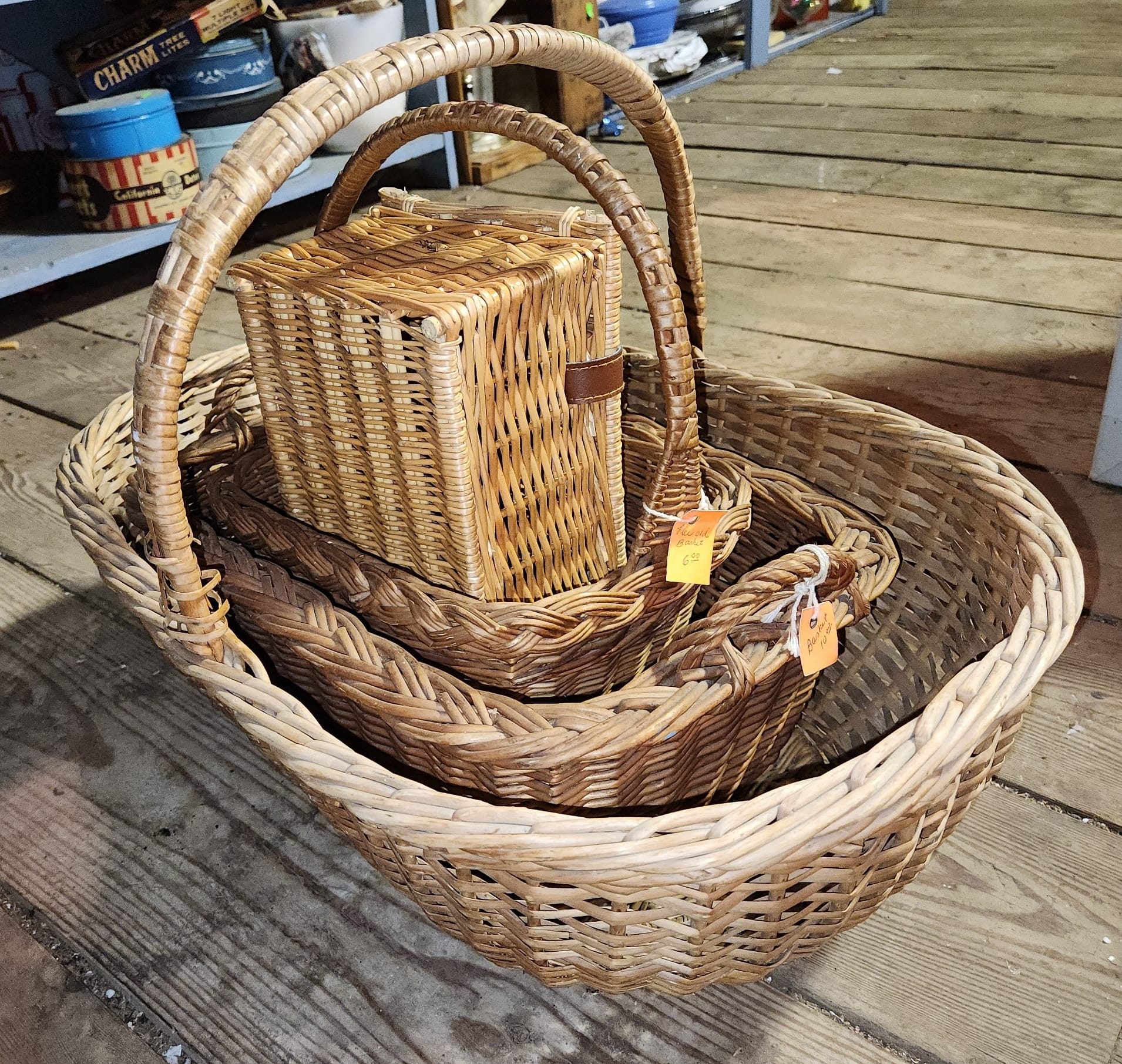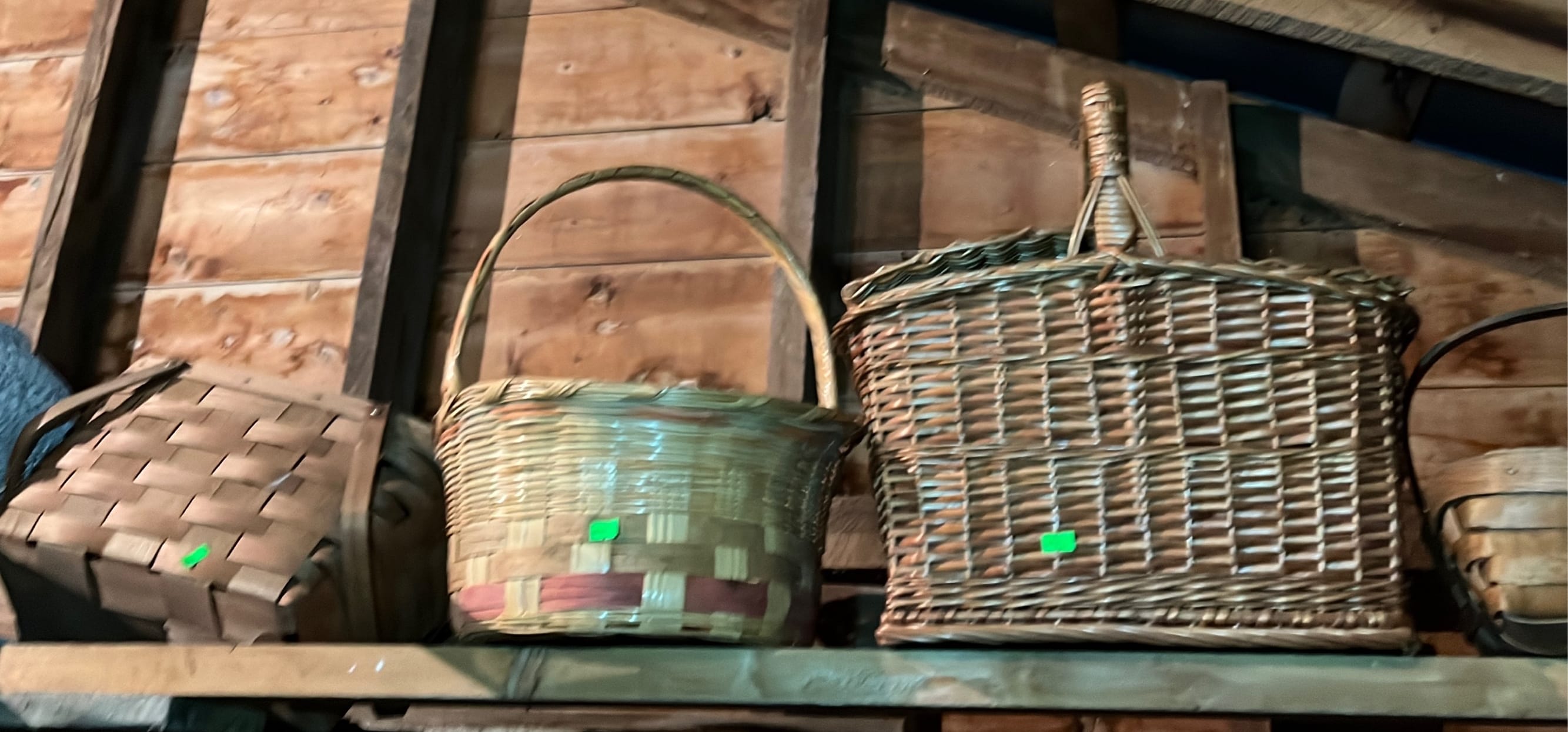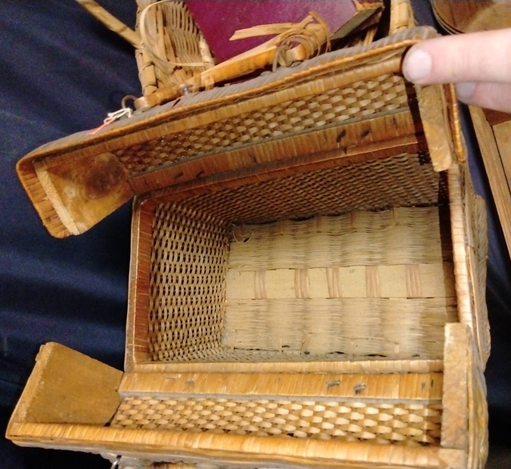 260 Wood tote, lunch box, basket, lamp, hat stand, miscellaneous