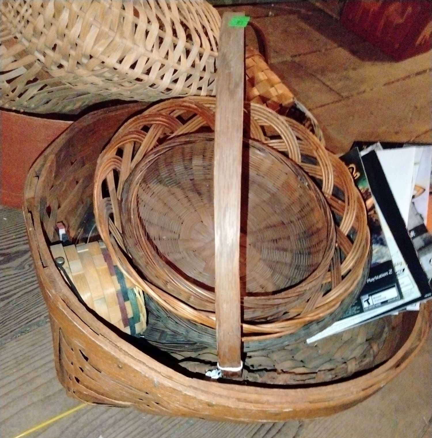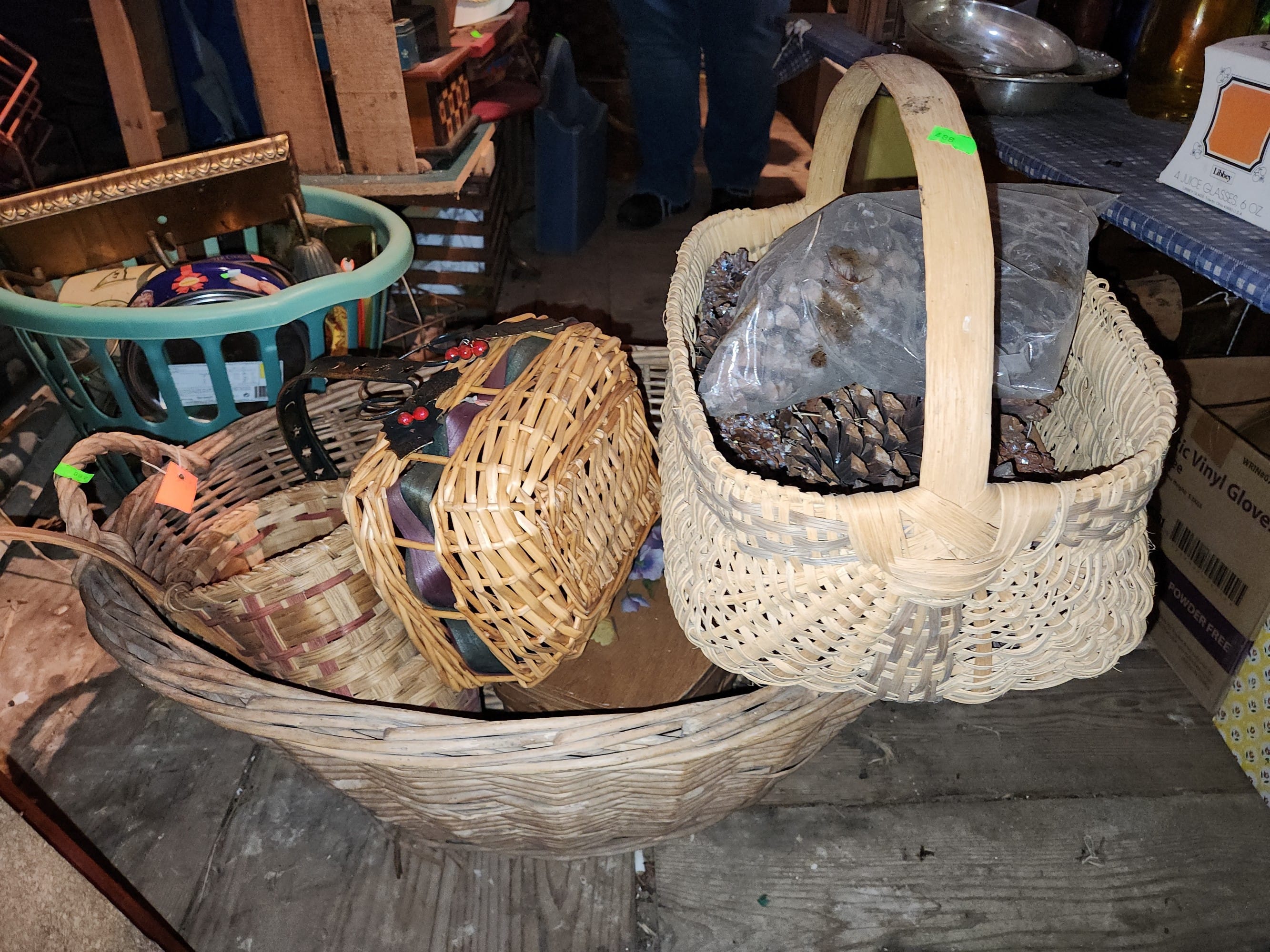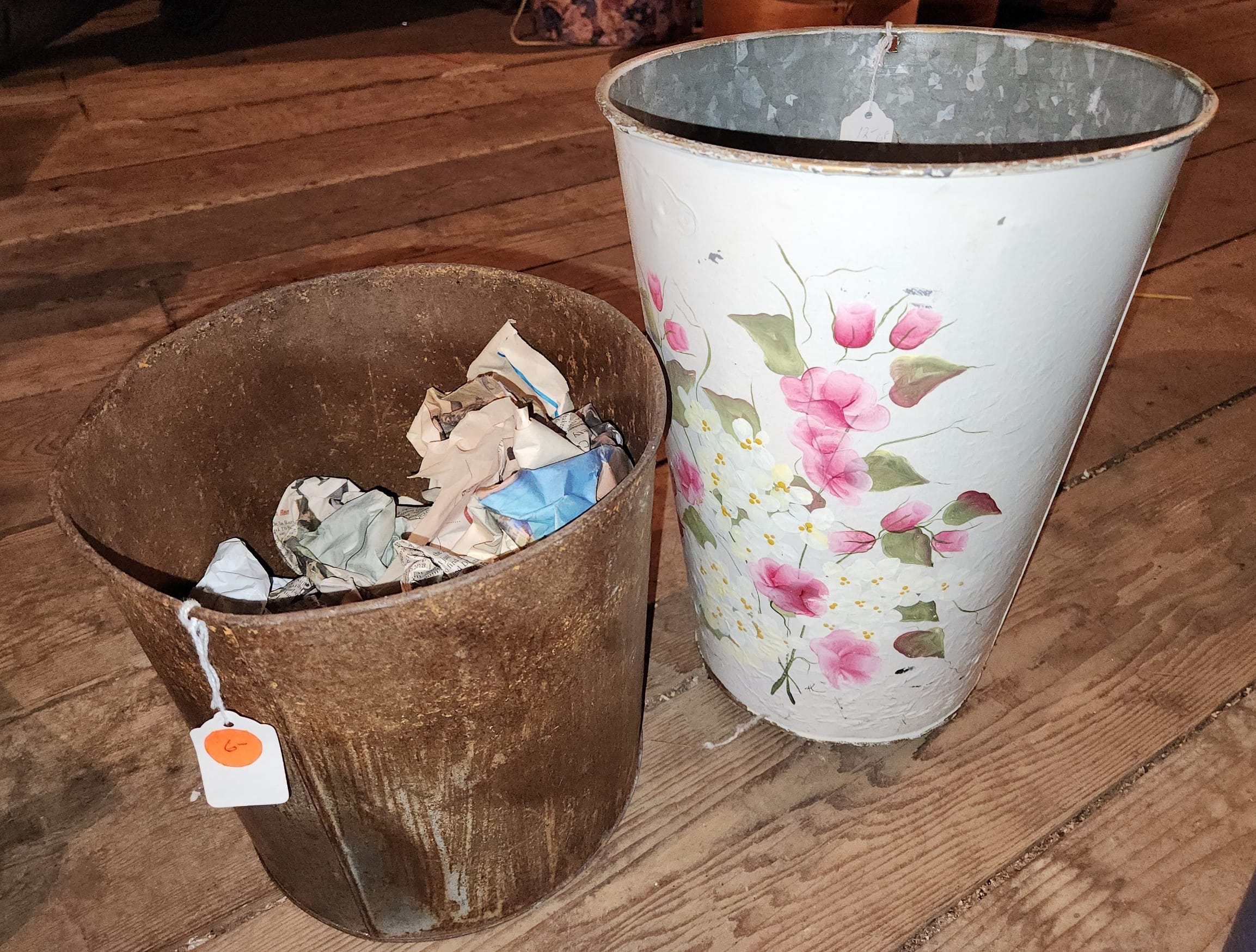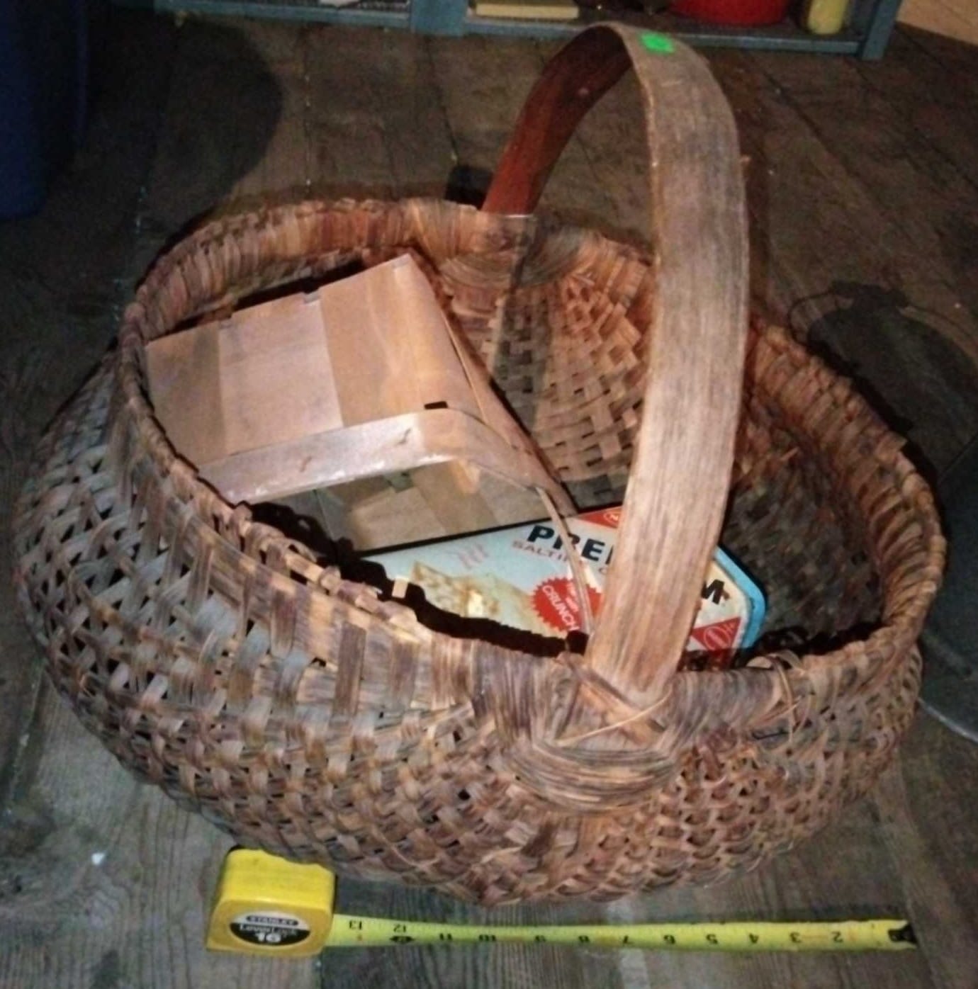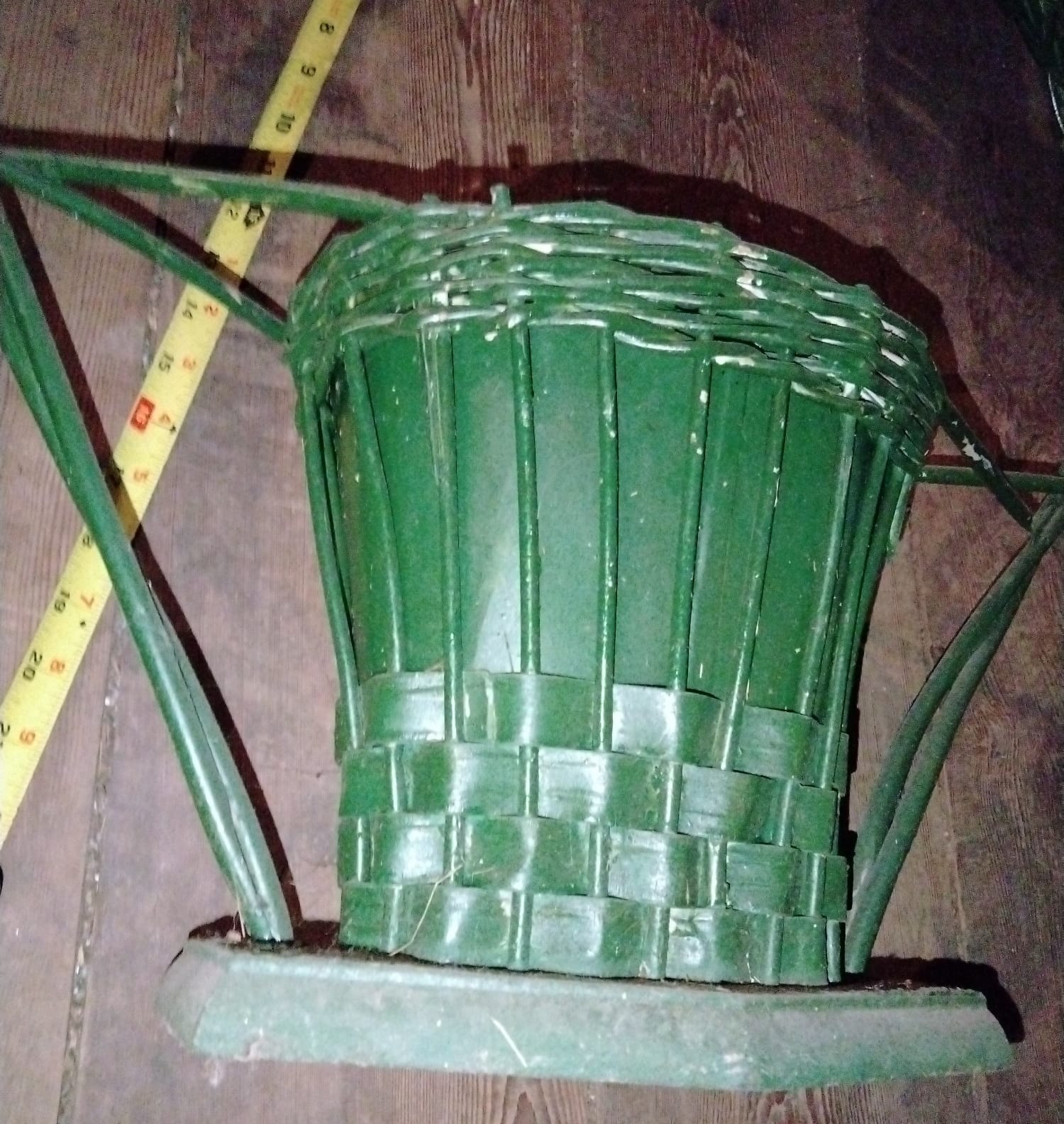 447 Enamel pan, IU Tin, cups, basket, wood basket, miscellaneous