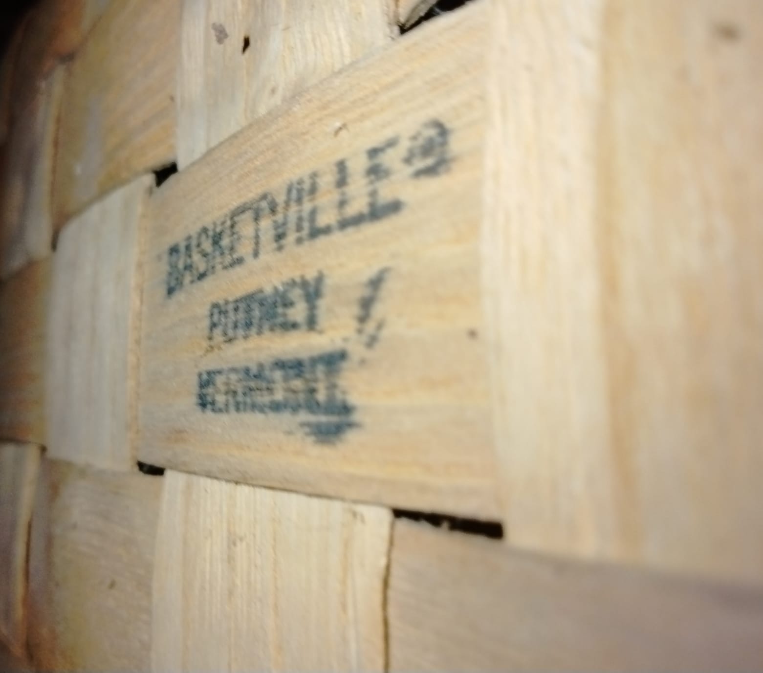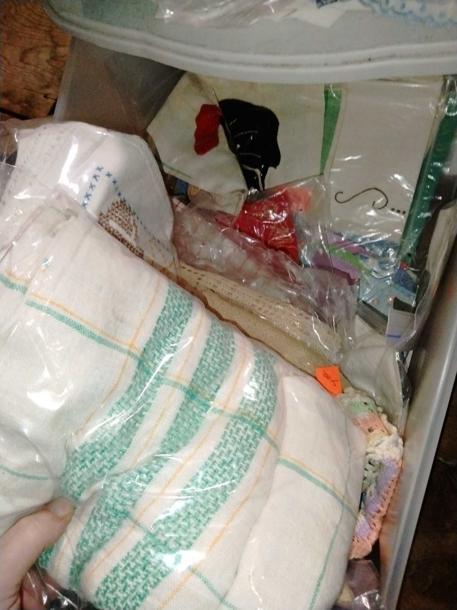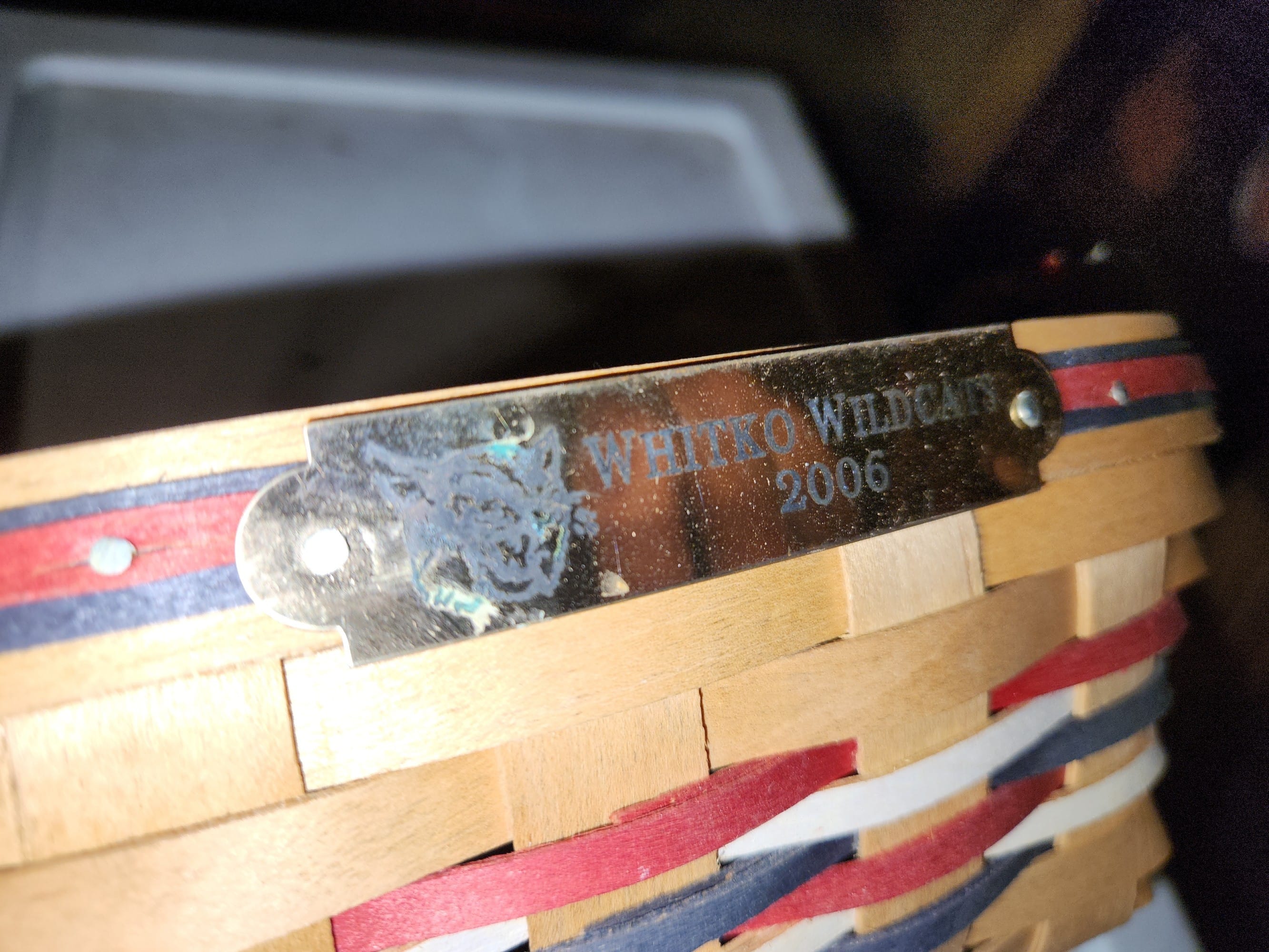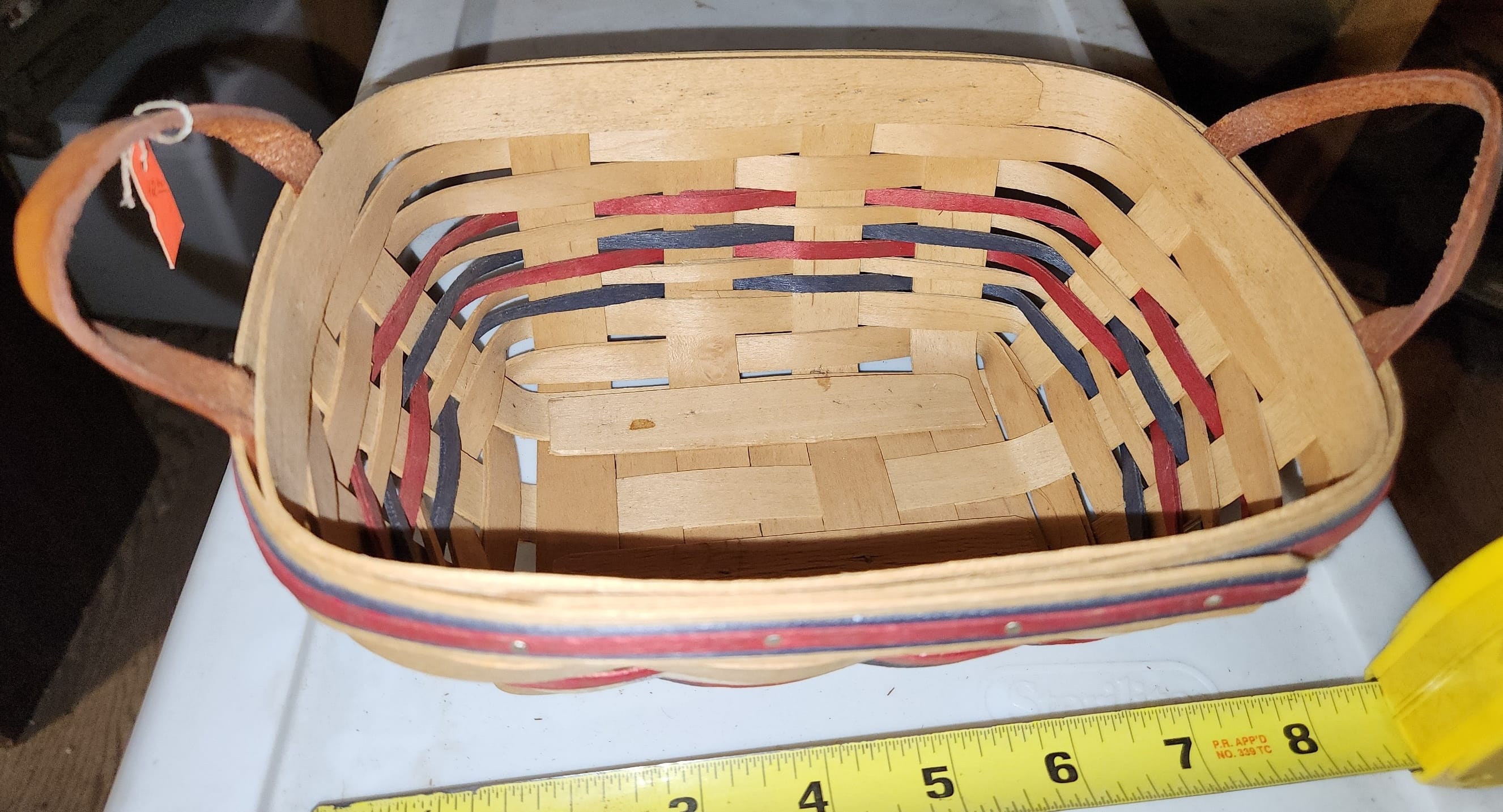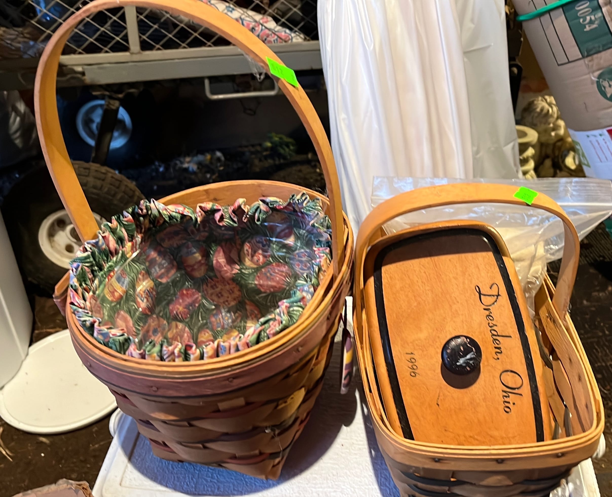 447 Enamel pan, IU Tin, cups, basket, wood basket, miscellaneous