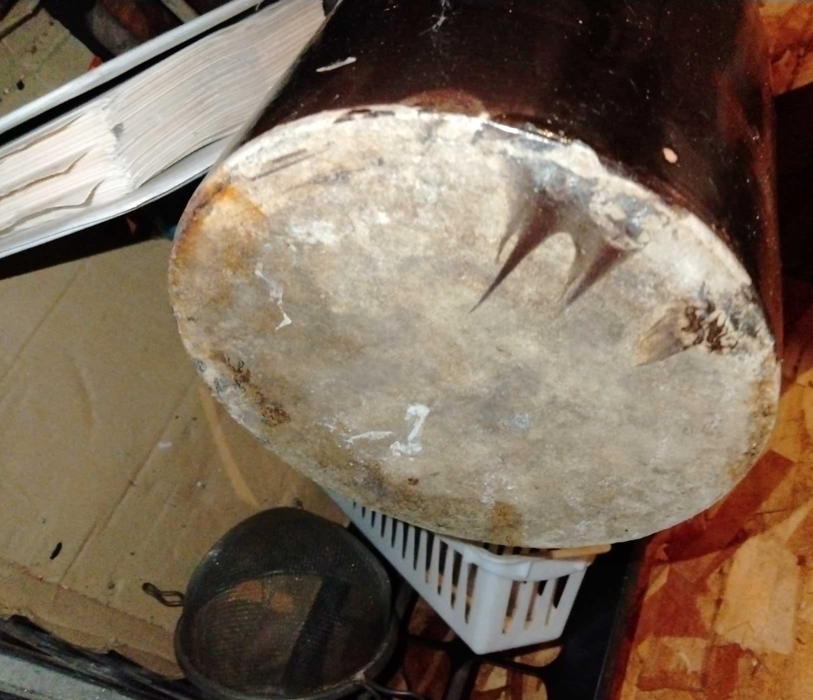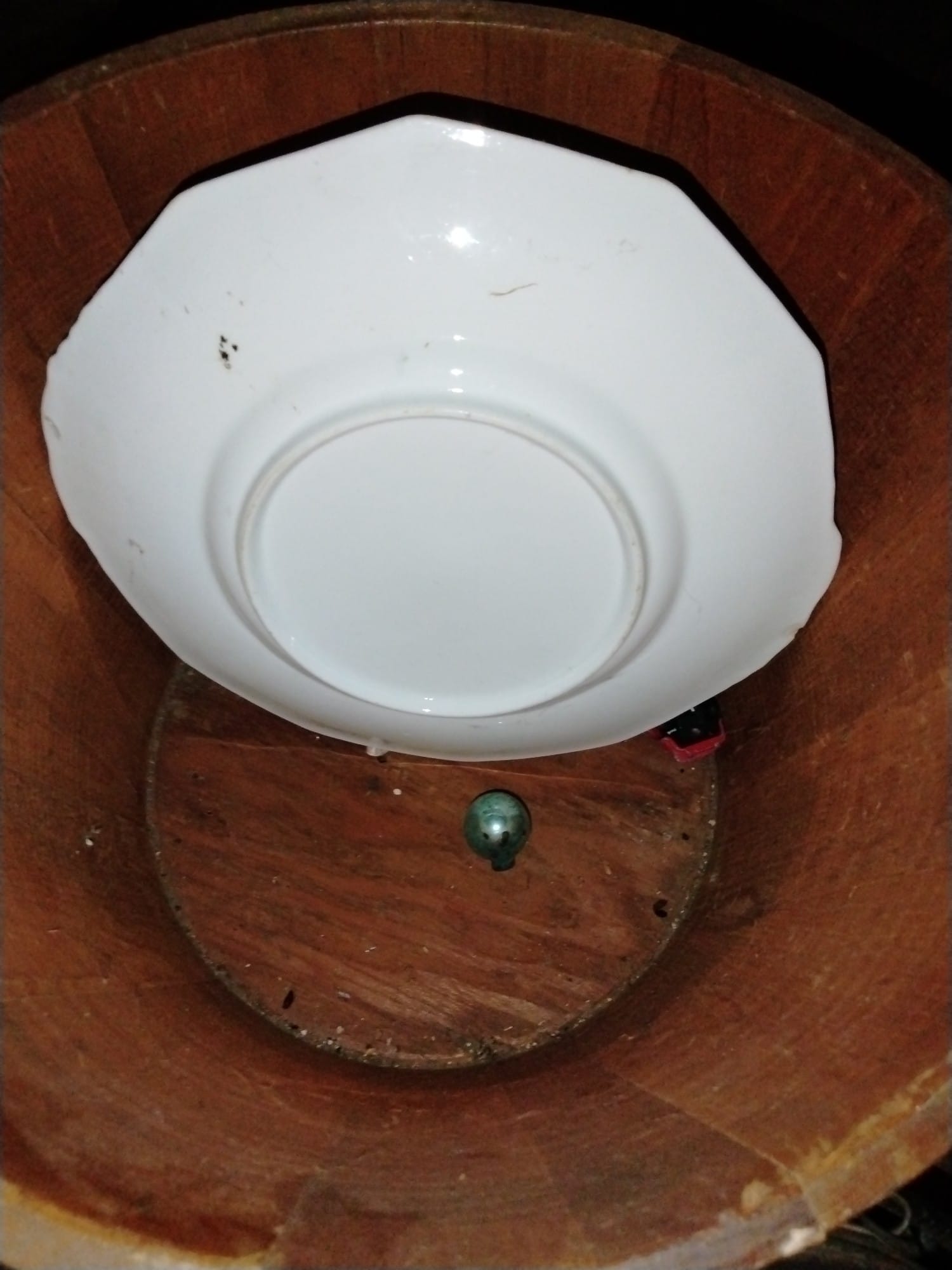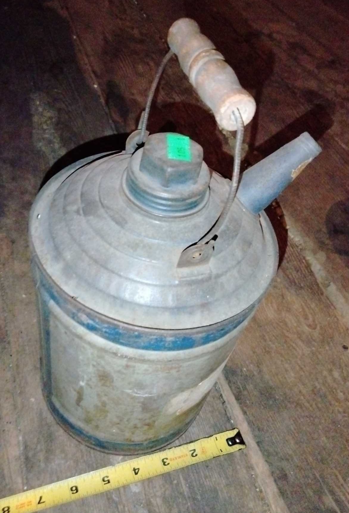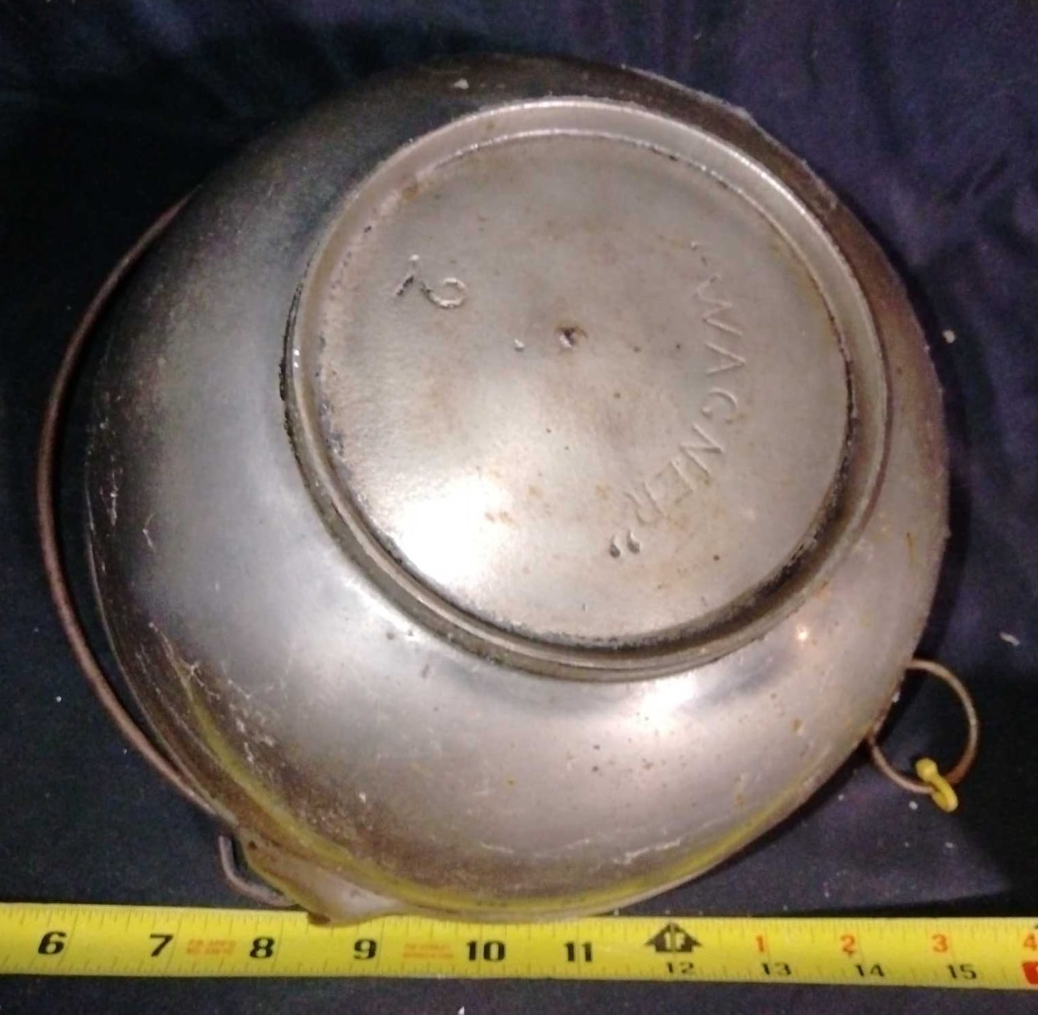 256 Wood bucket, metal lunch pail, trivet, granite pot, miscellaneous