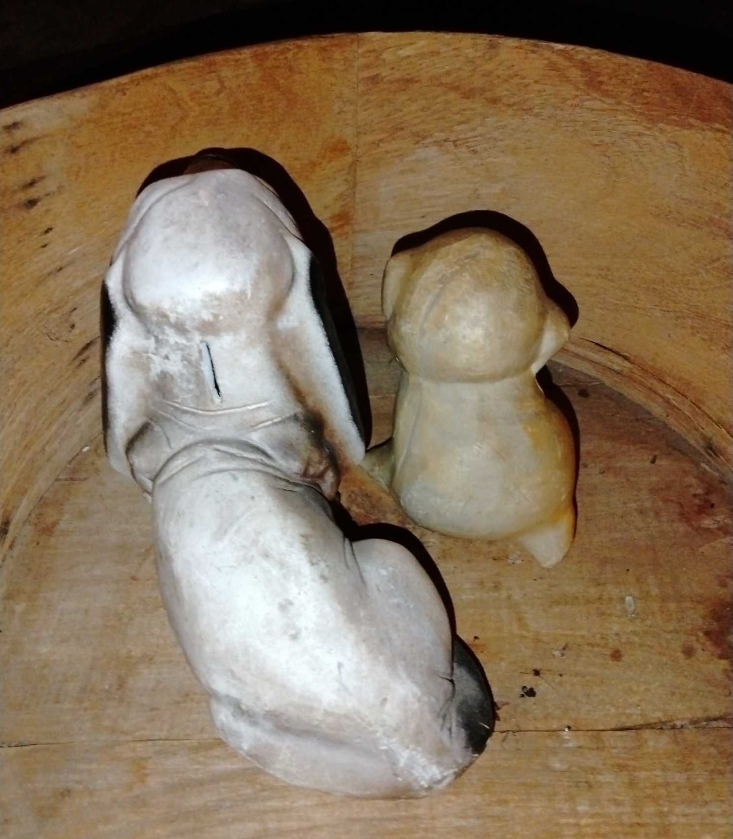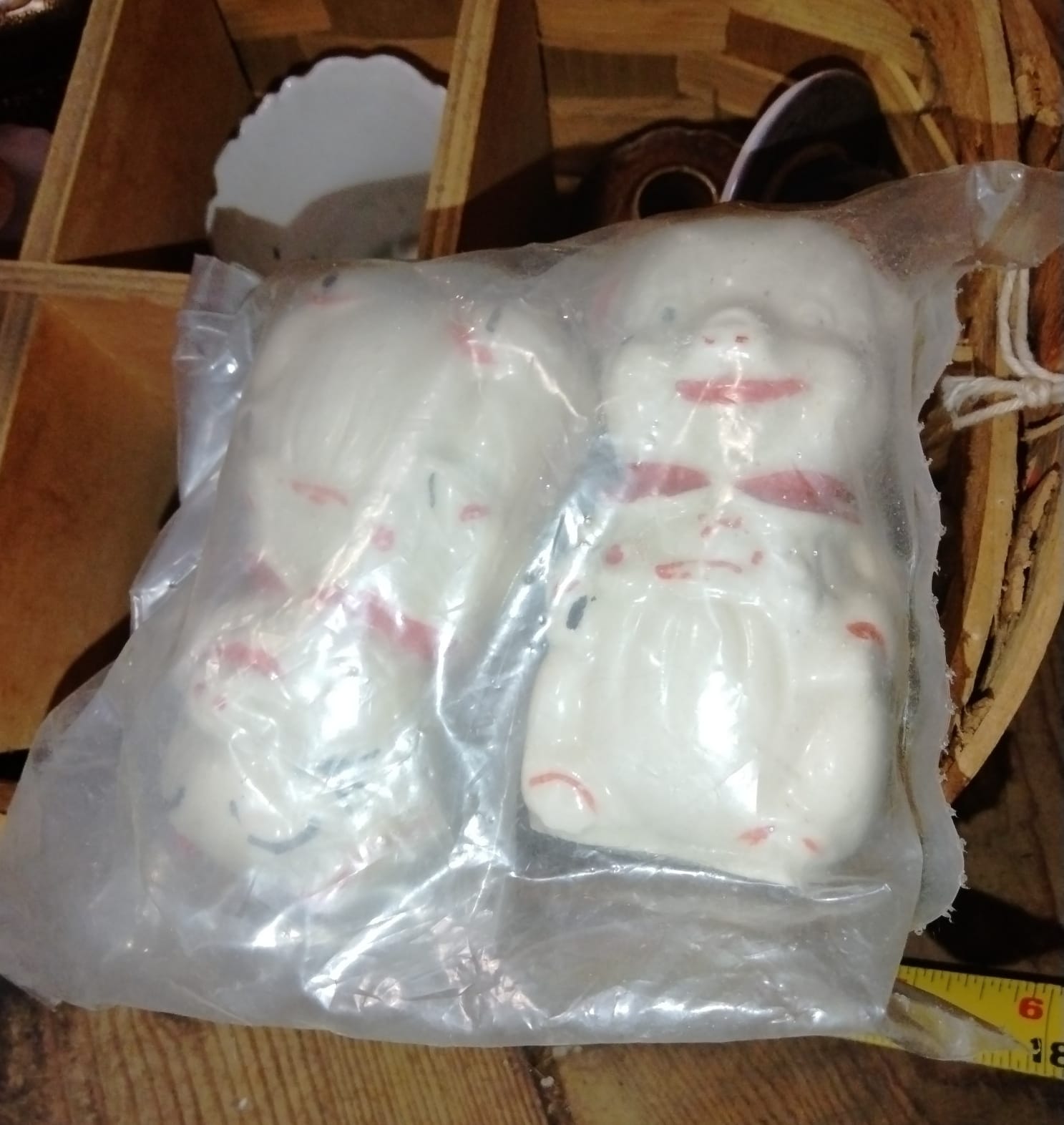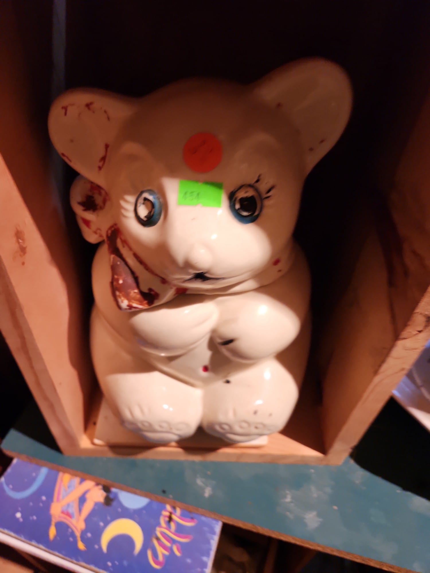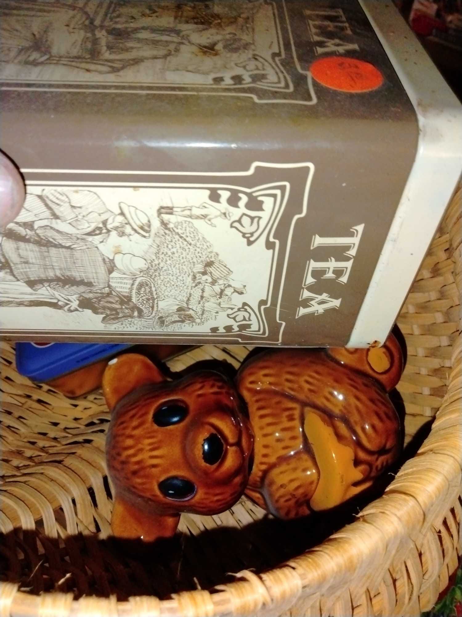 454 Pitcher and bowl, cookie jars, dominoes, bear cookie jar - repaired