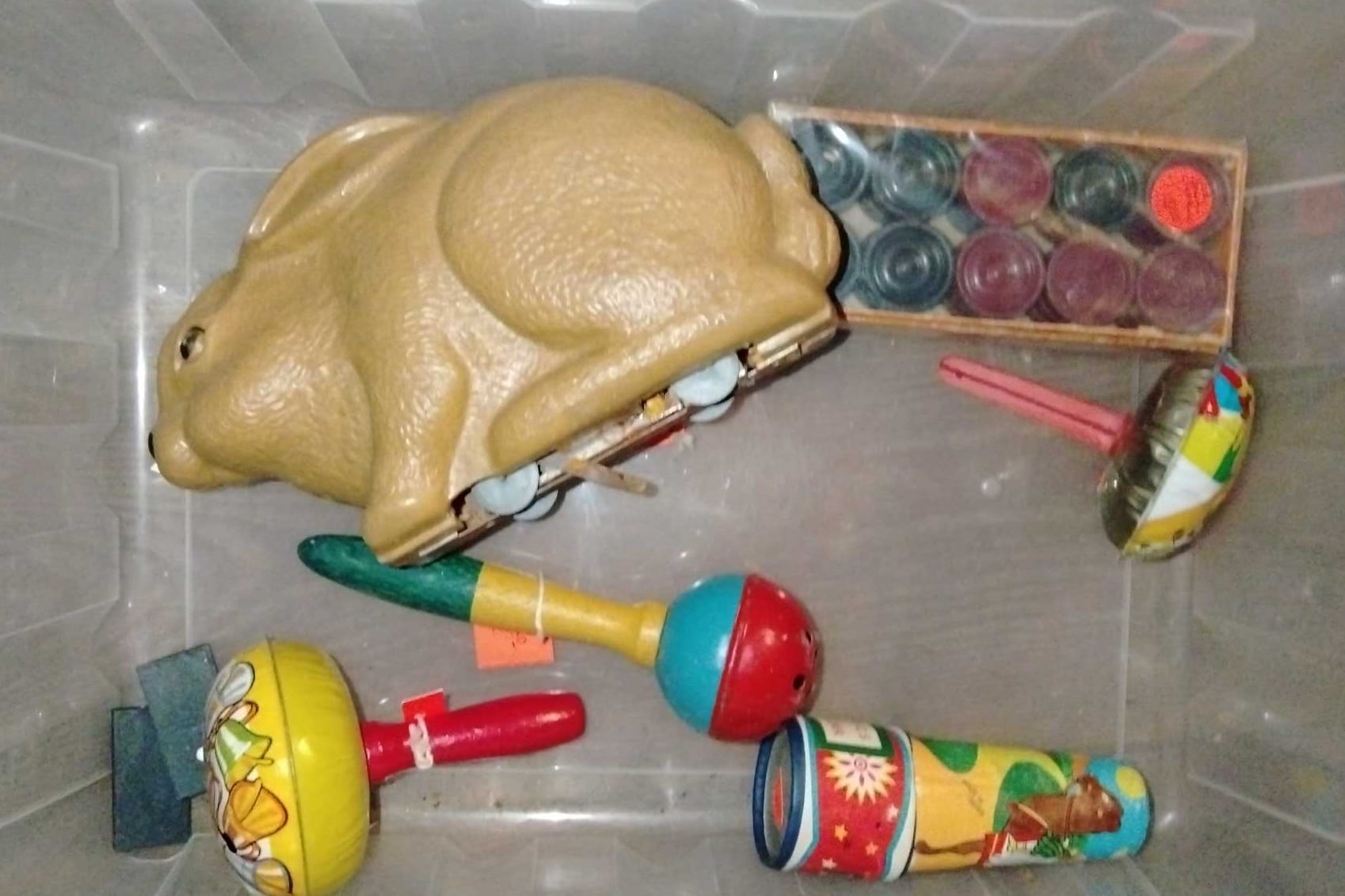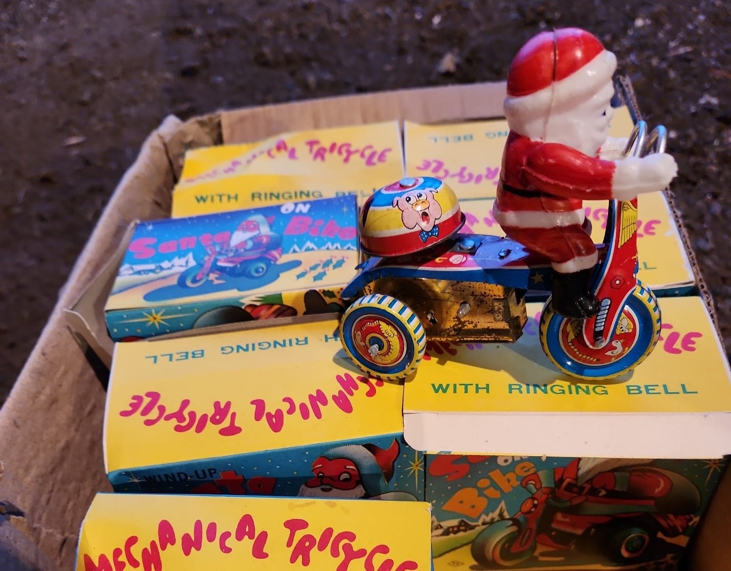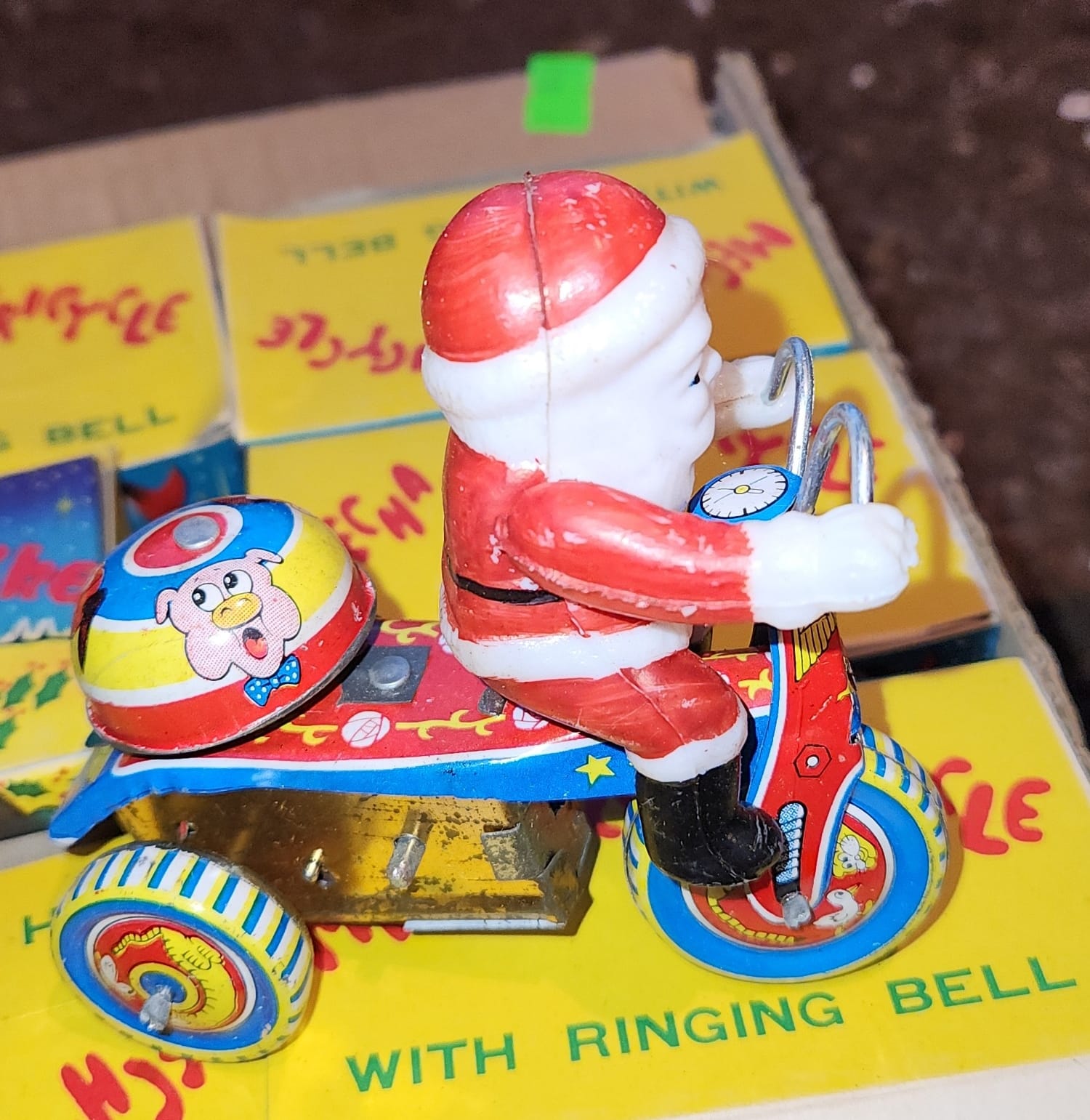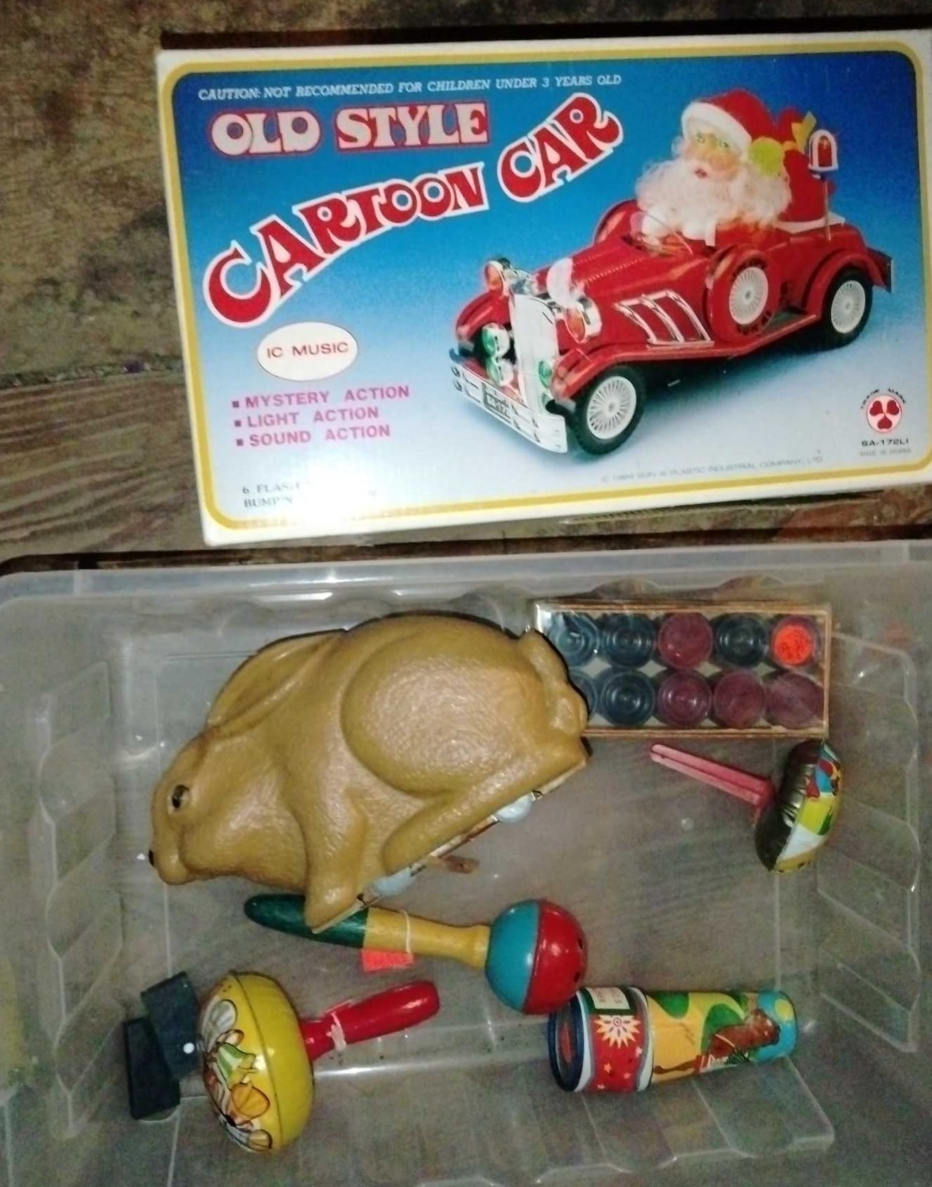108 Santa's Car, wind-up rabbit, checkers, noise makers, kaleidoscope