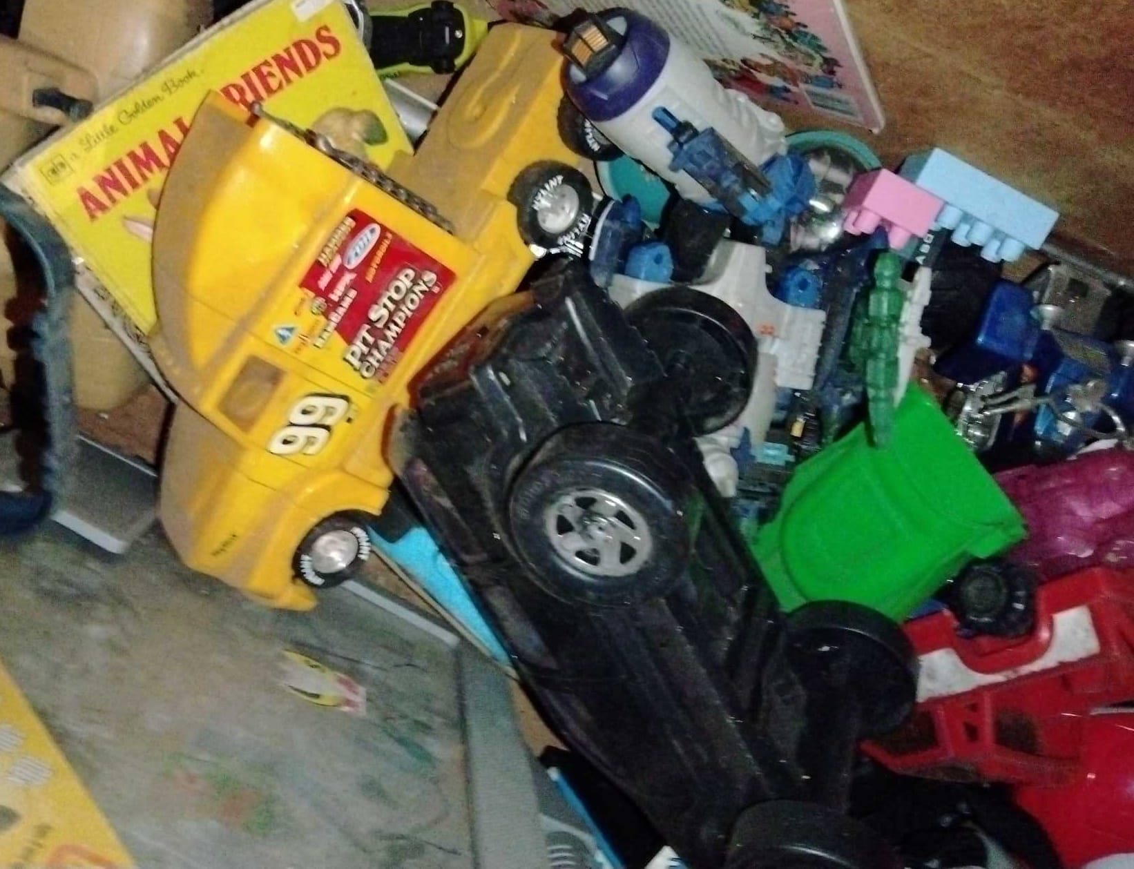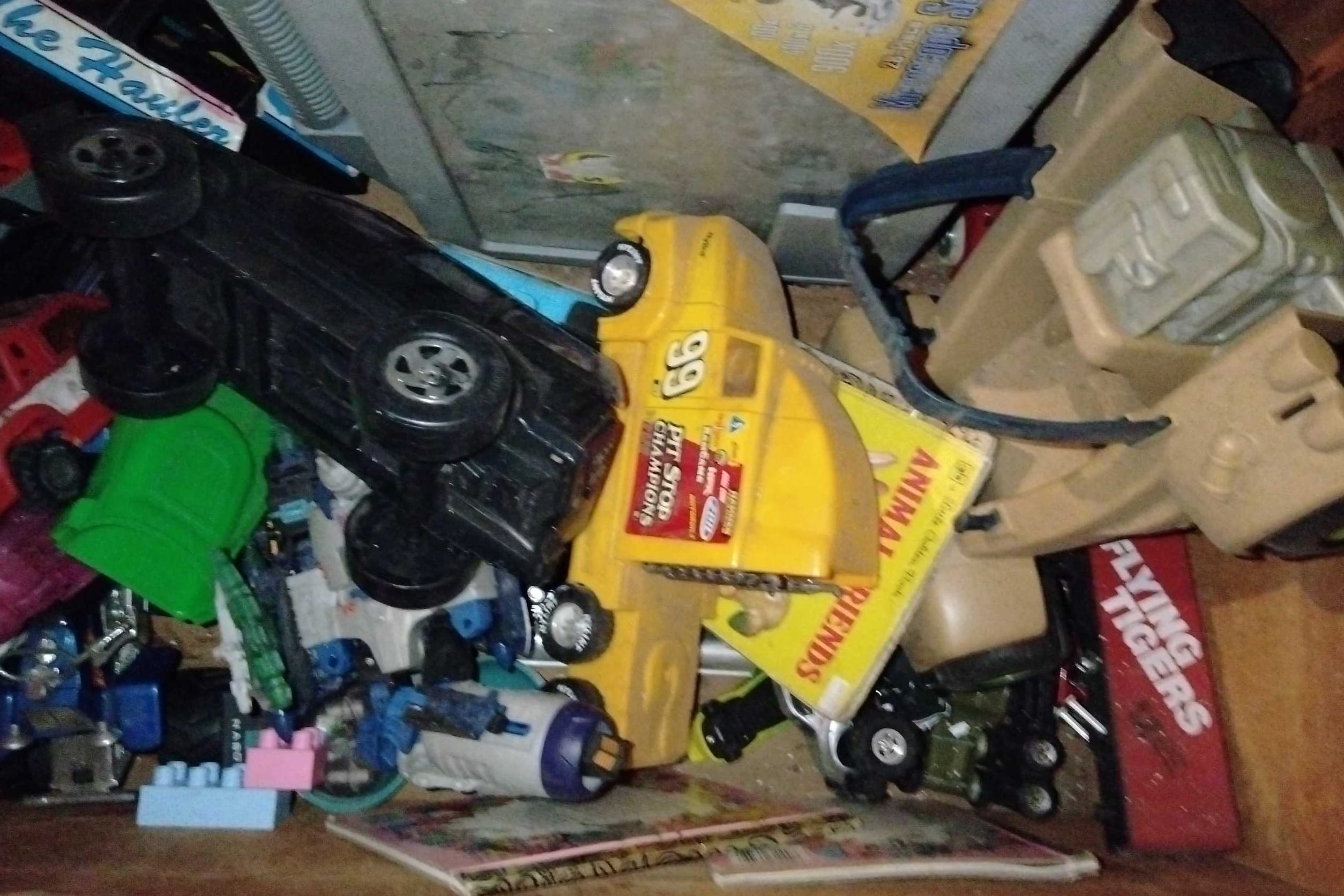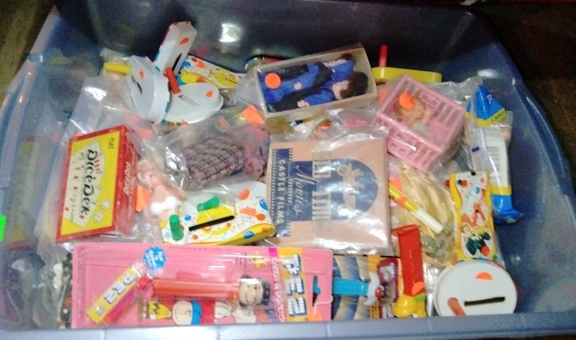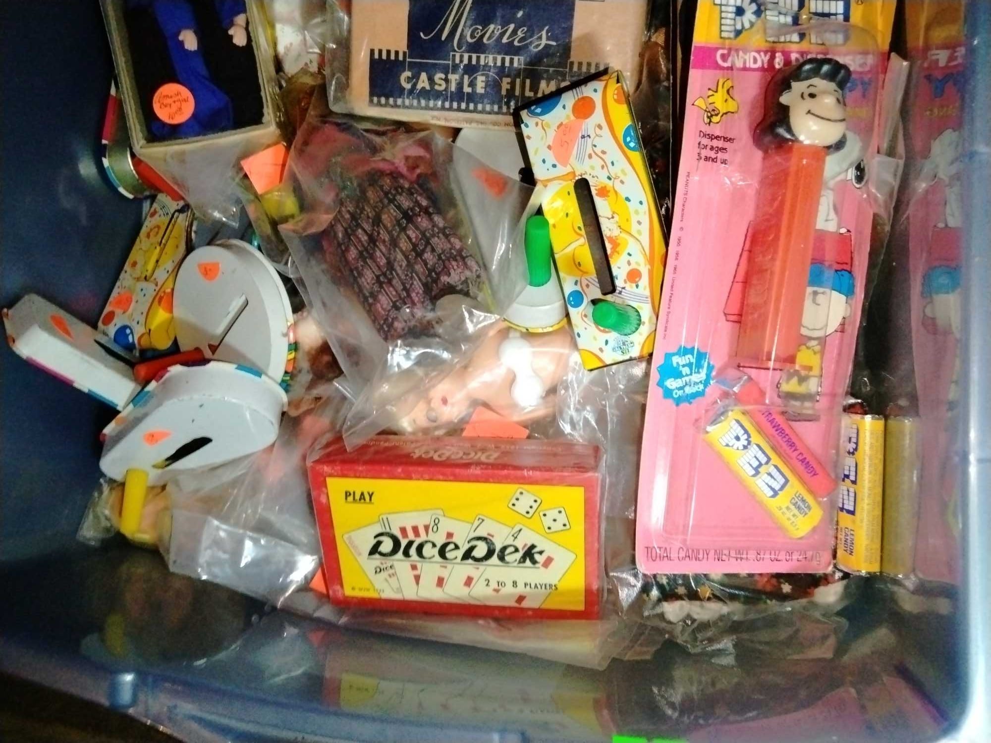 108 Santa's Car, wind-up rabbit, checkers, noise makers, kaleidoscope