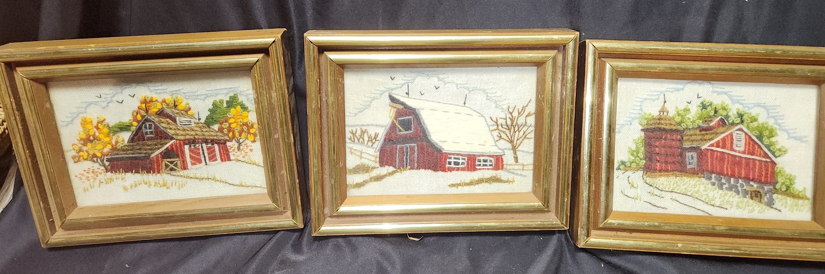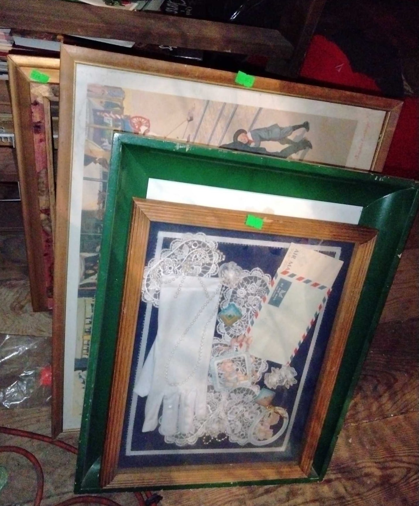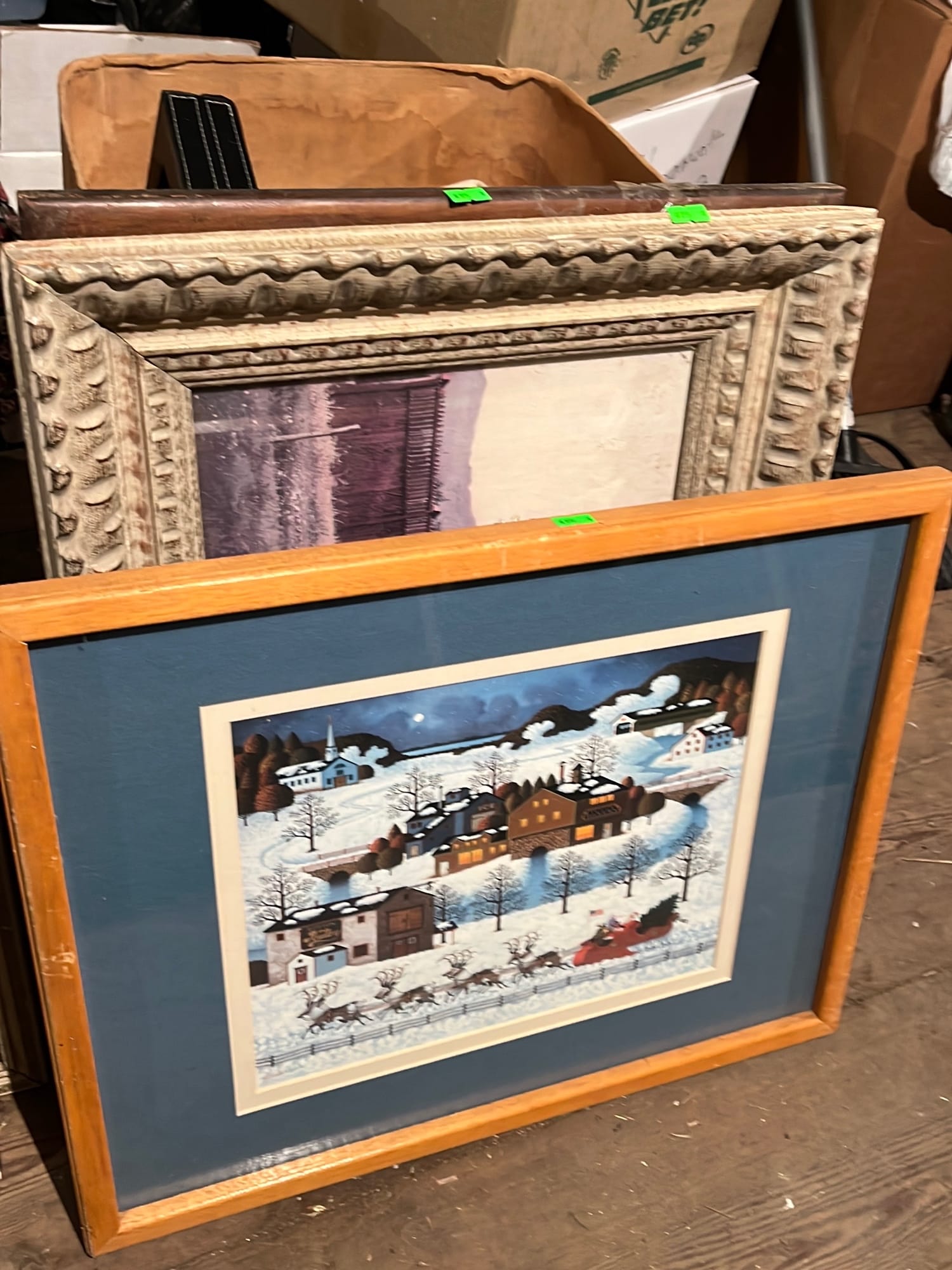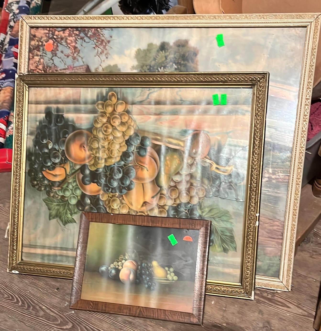 494 (3) Framed prints assorted sizes - one w/ broken glass