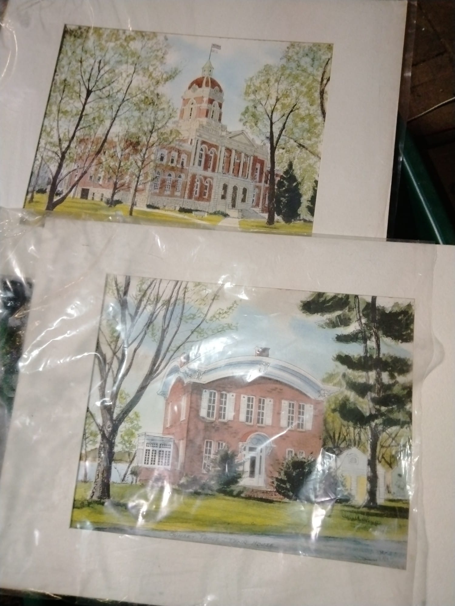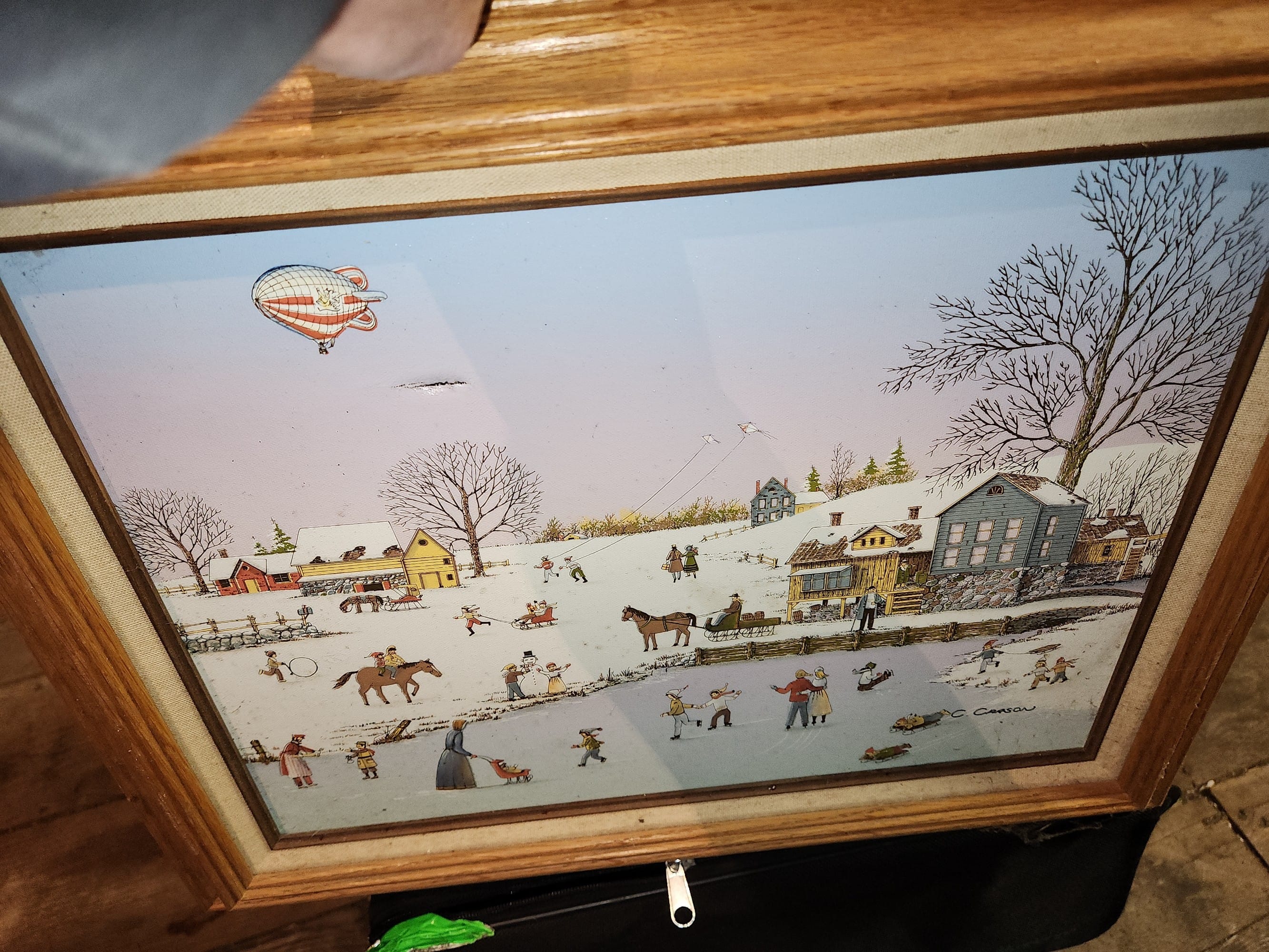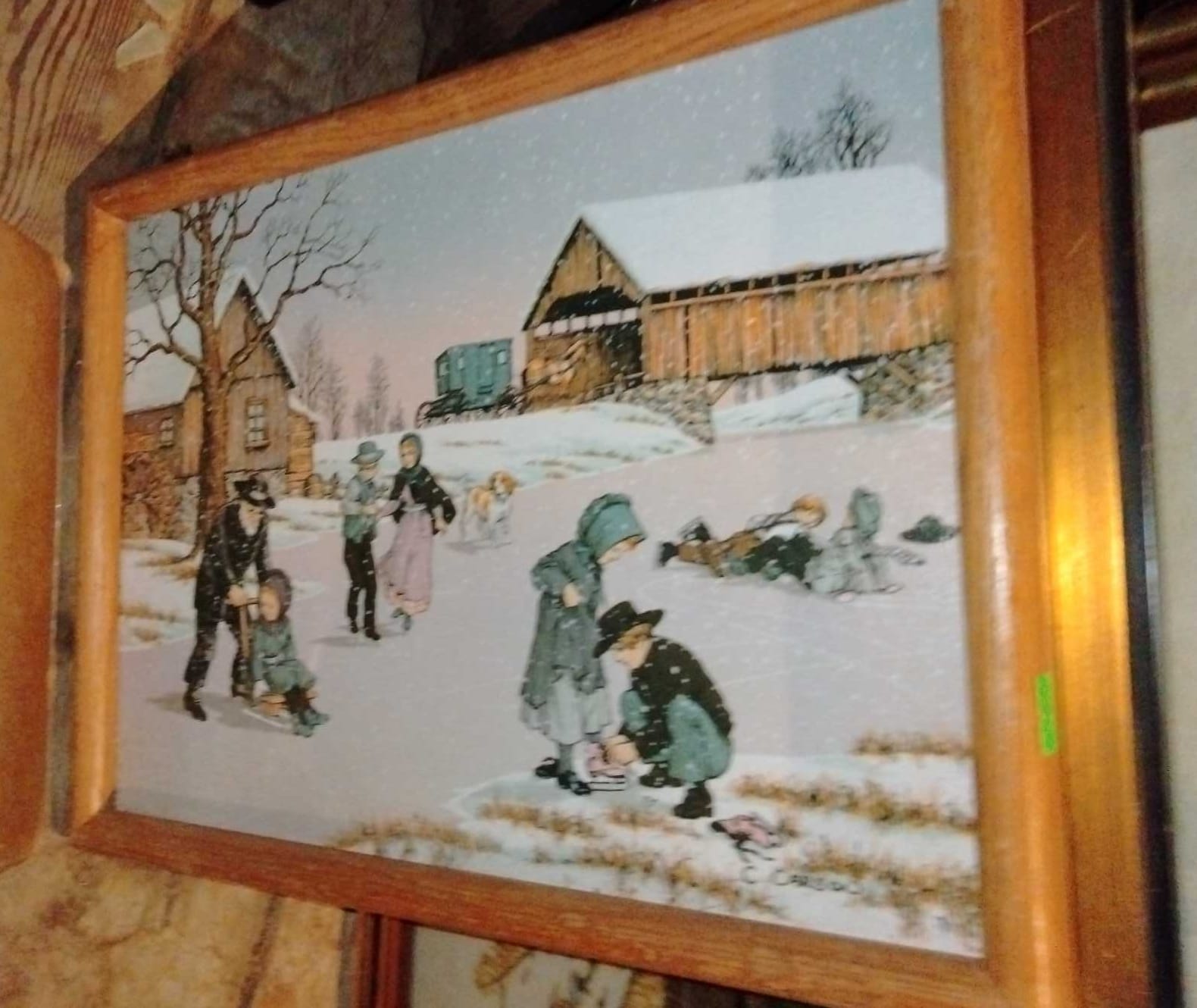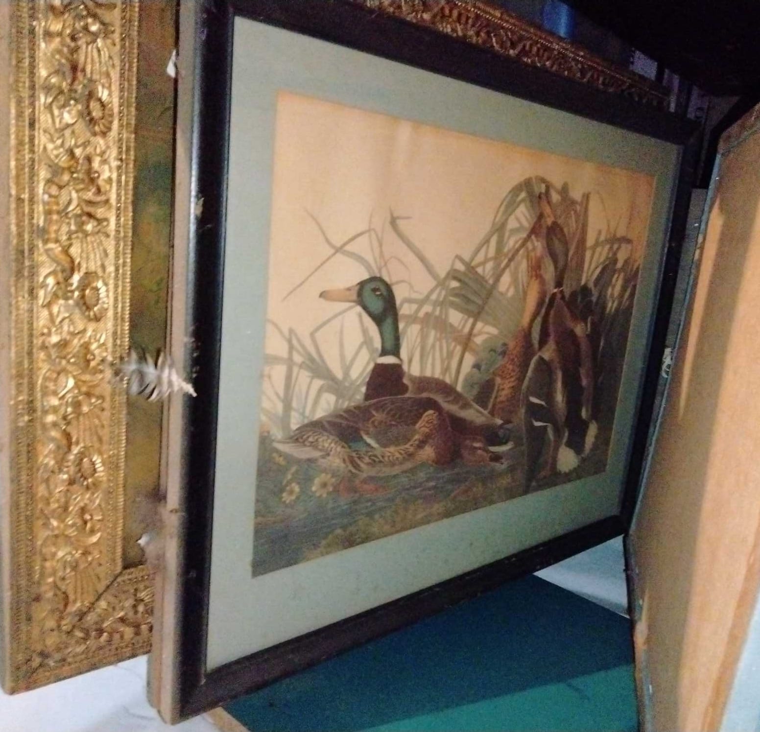 494 (3) Framed prints assorted sizes - one w/ broken glass