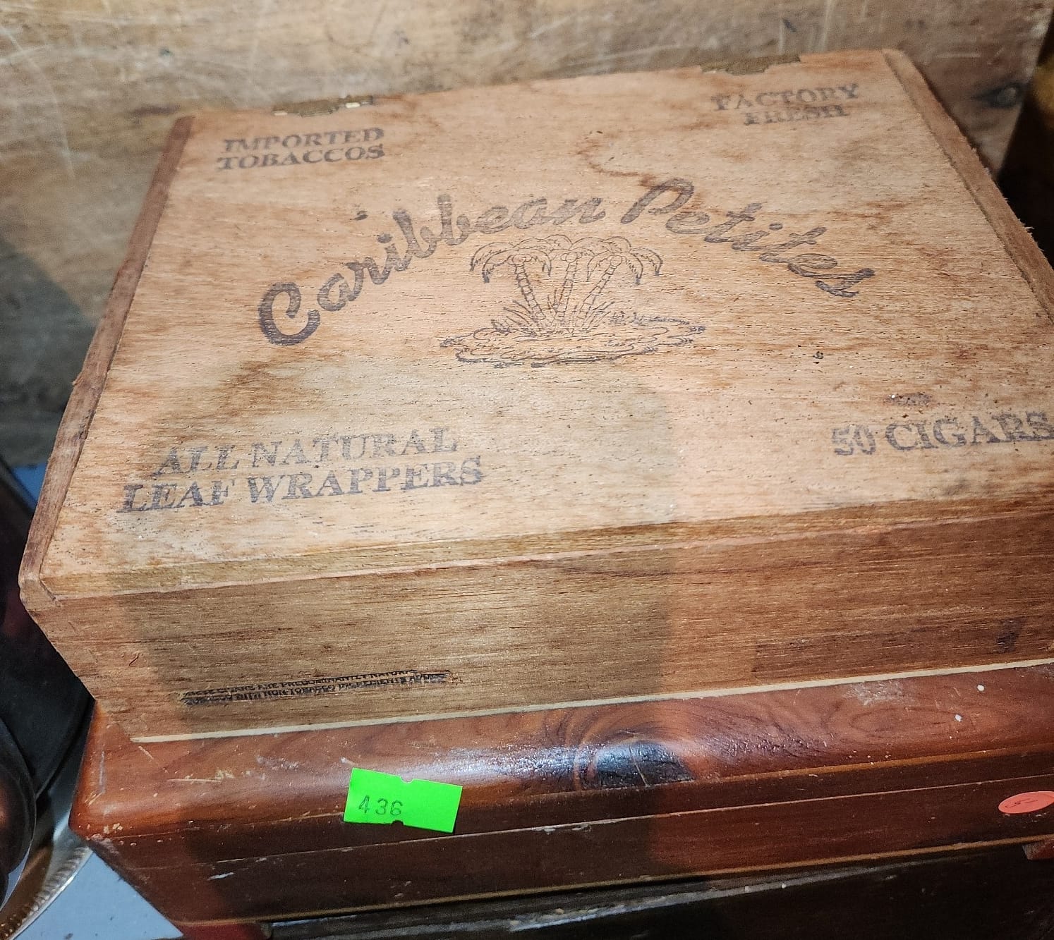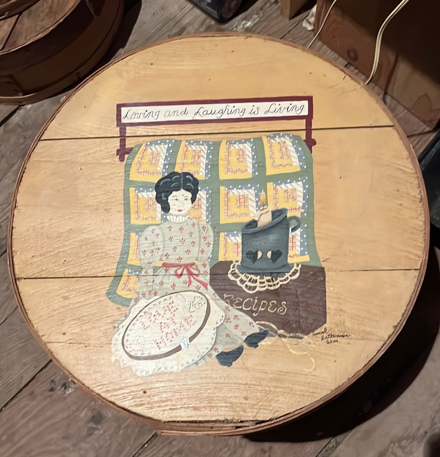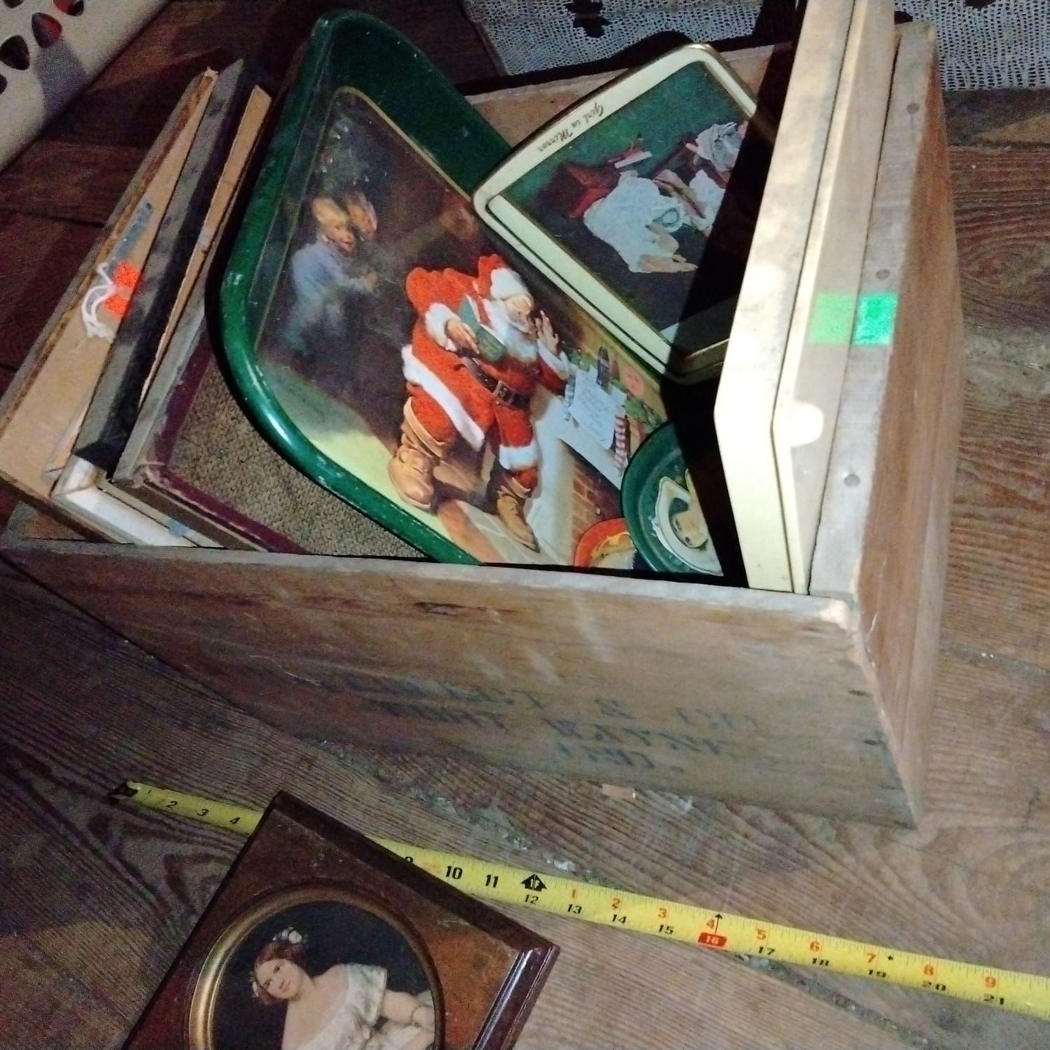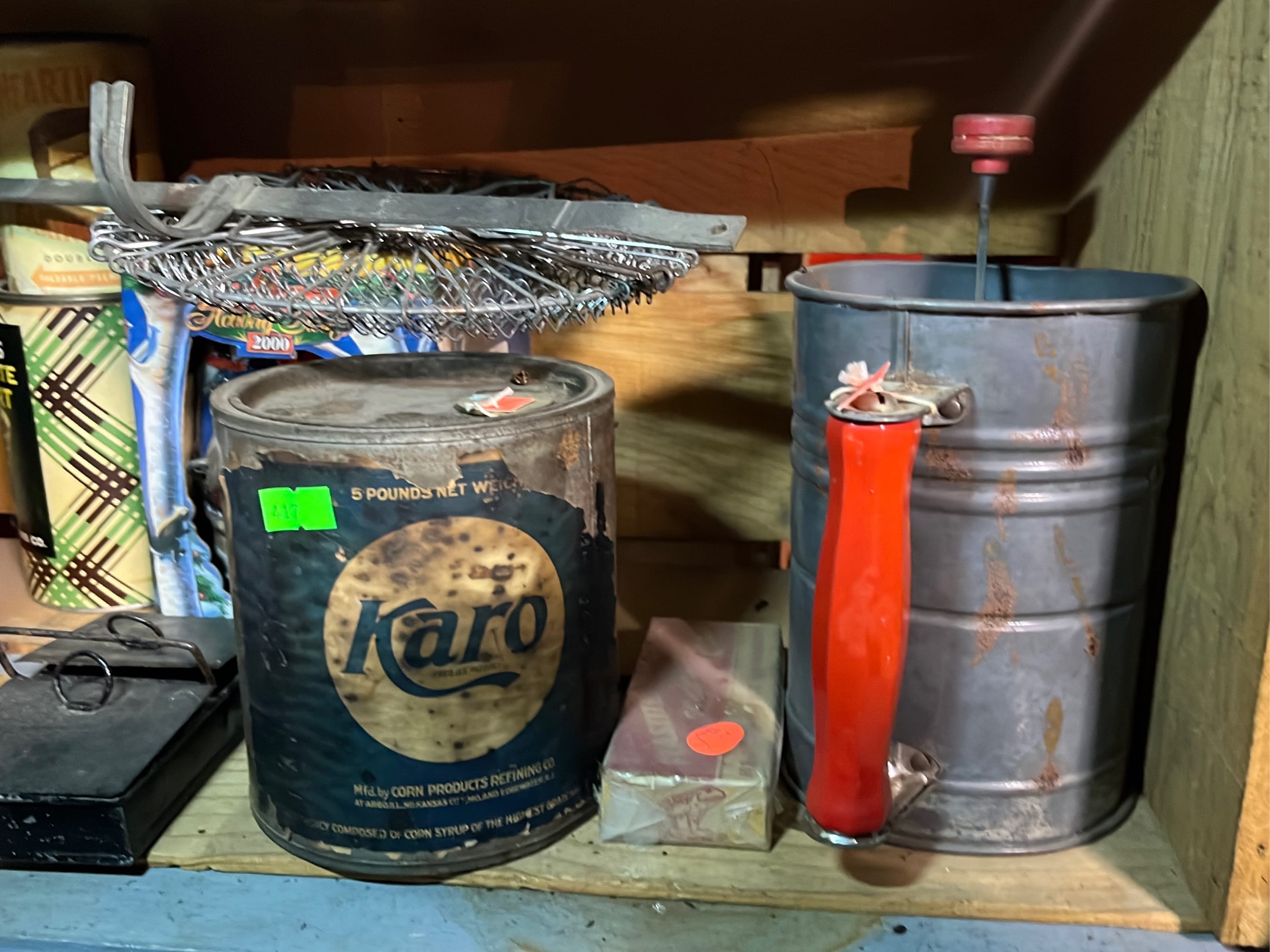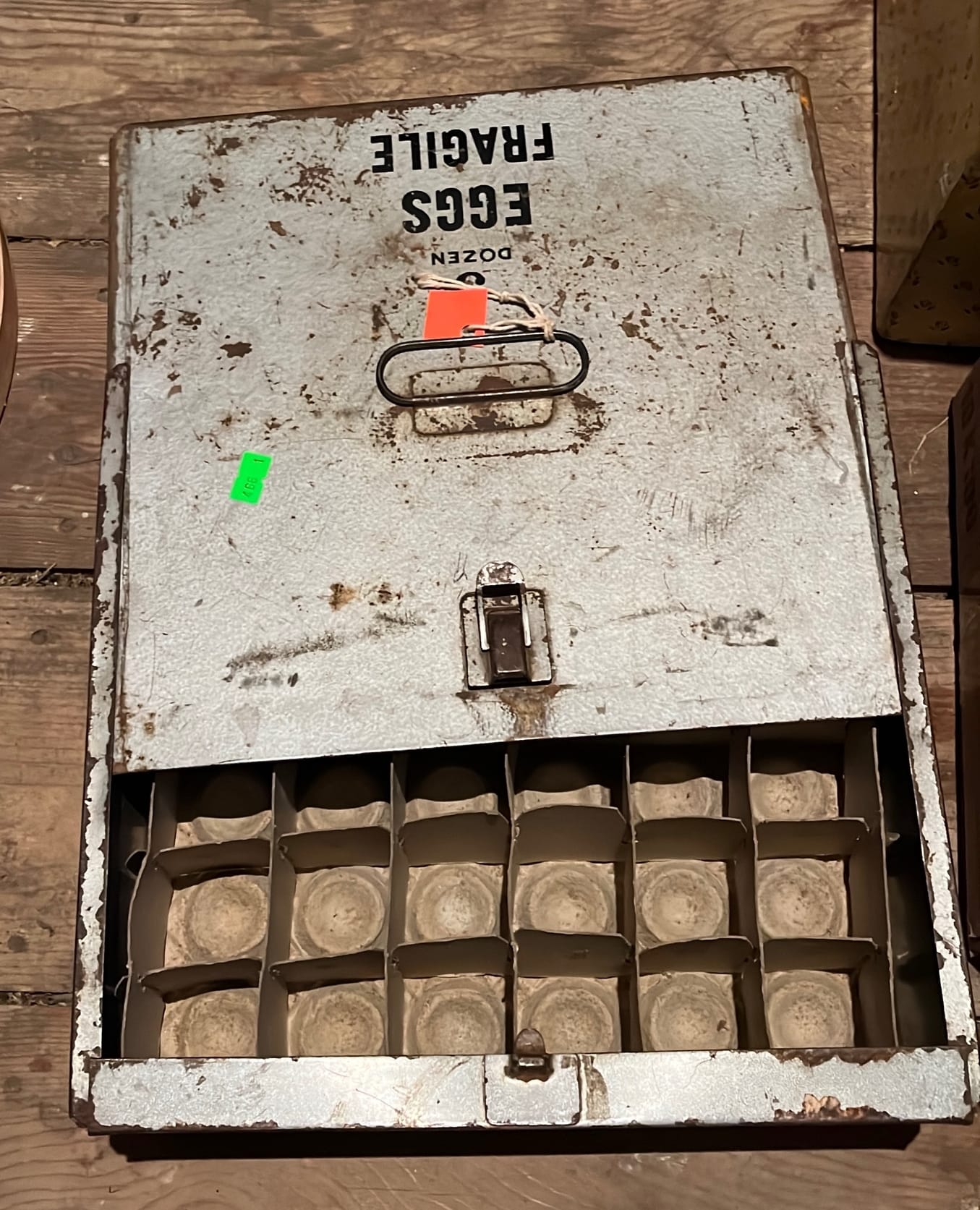 489 Checkerboard, shadow boxes, wood crate, popcorn popper, cheese box