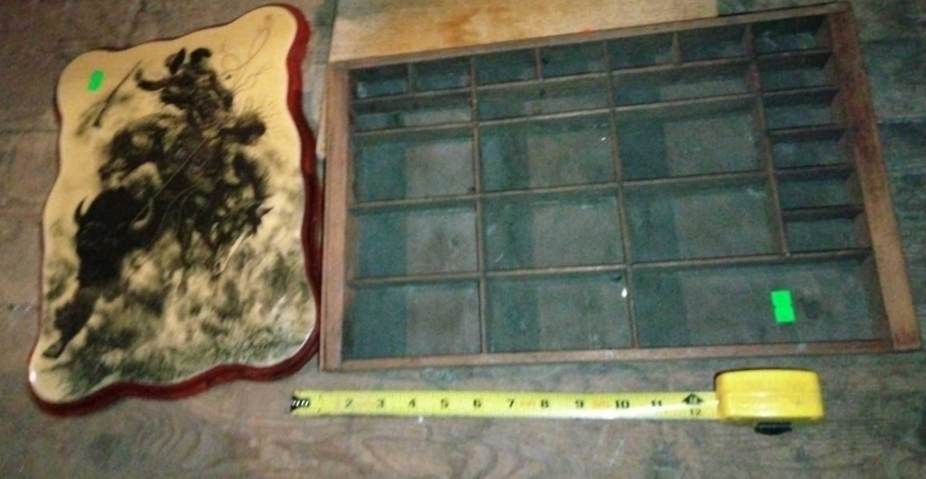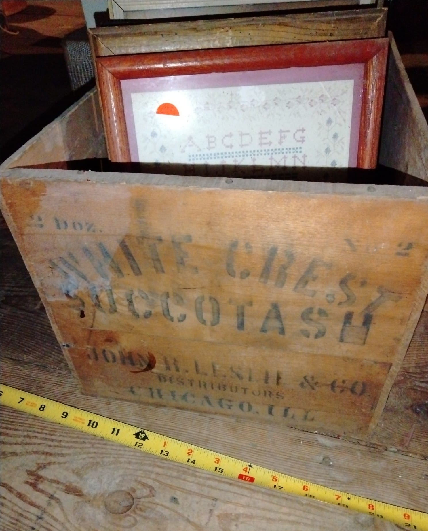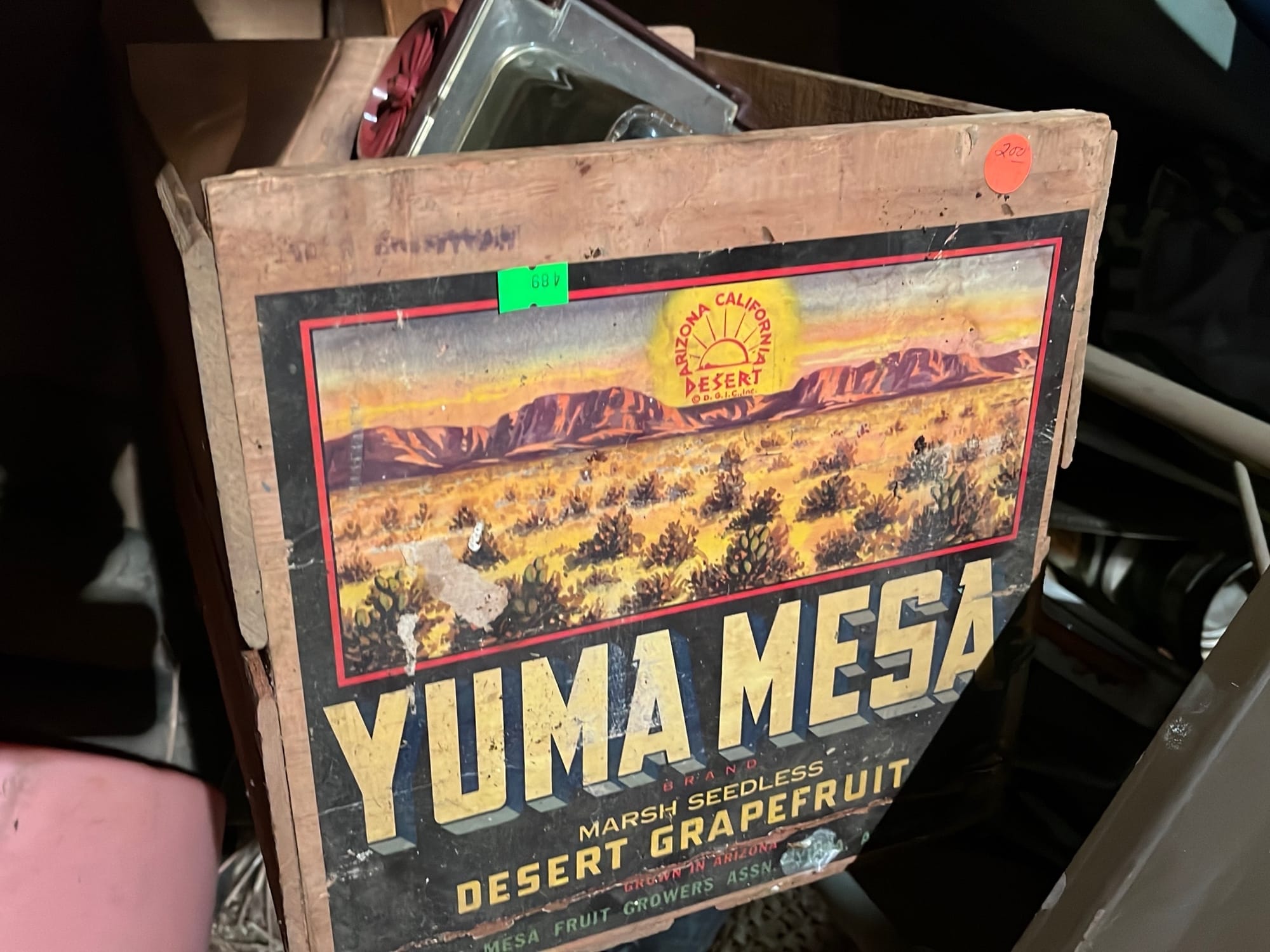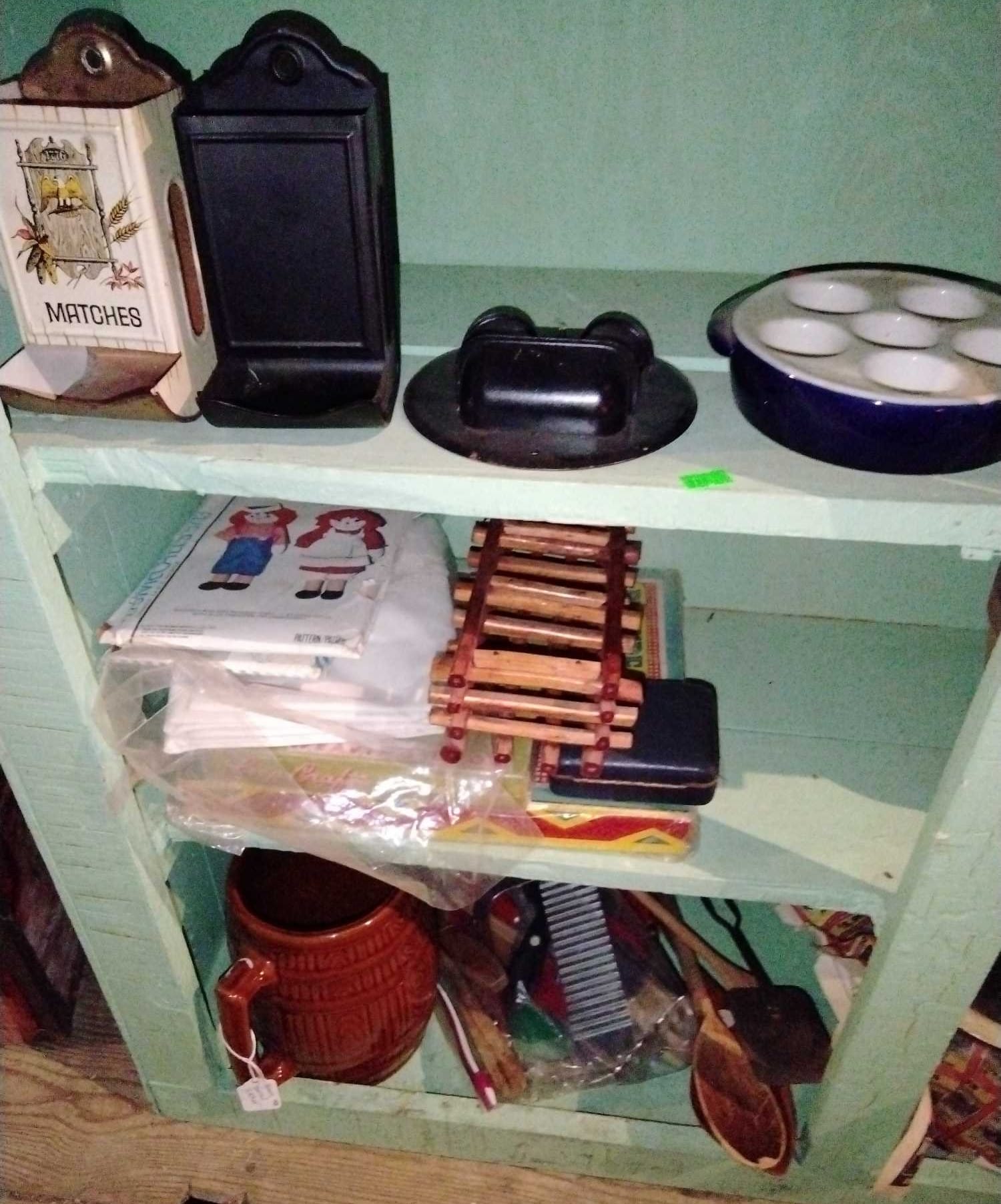 489 Checkerboard, shadow boxes, wood crate, popcorn popper, cheese box
